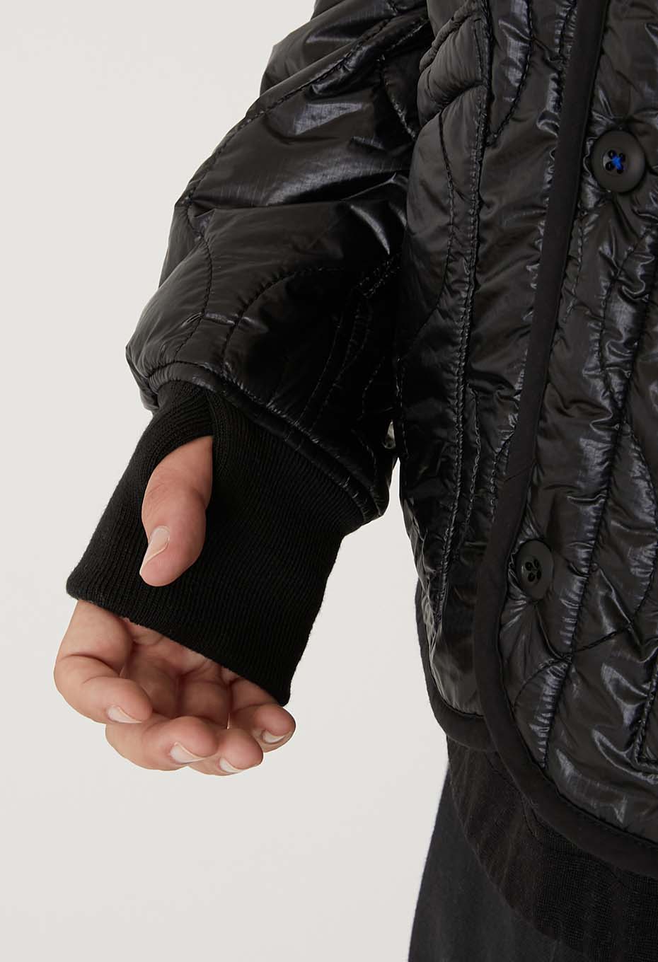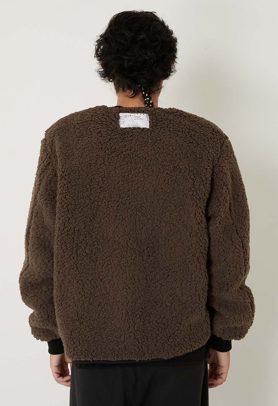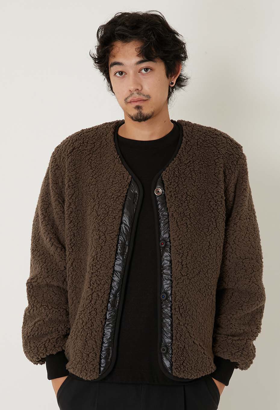 表面はミリタリーモチーフのリップストップキルティング、裏面は肌触りの心地良い温もりあるシープボアを使用しています。