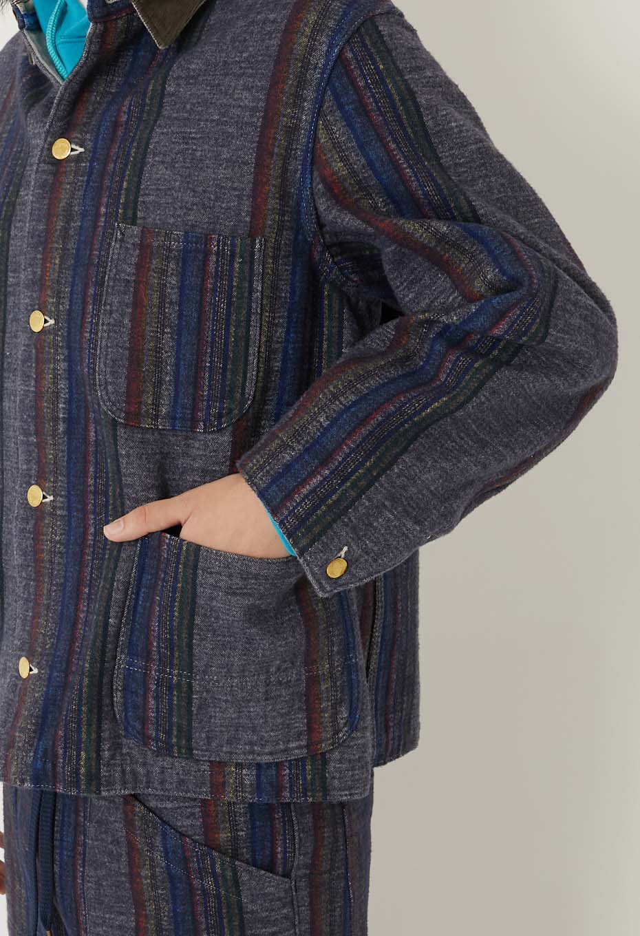オリジナルのブランケット生地で仕立てた、ショートレングスのカバーオールジャケットです。