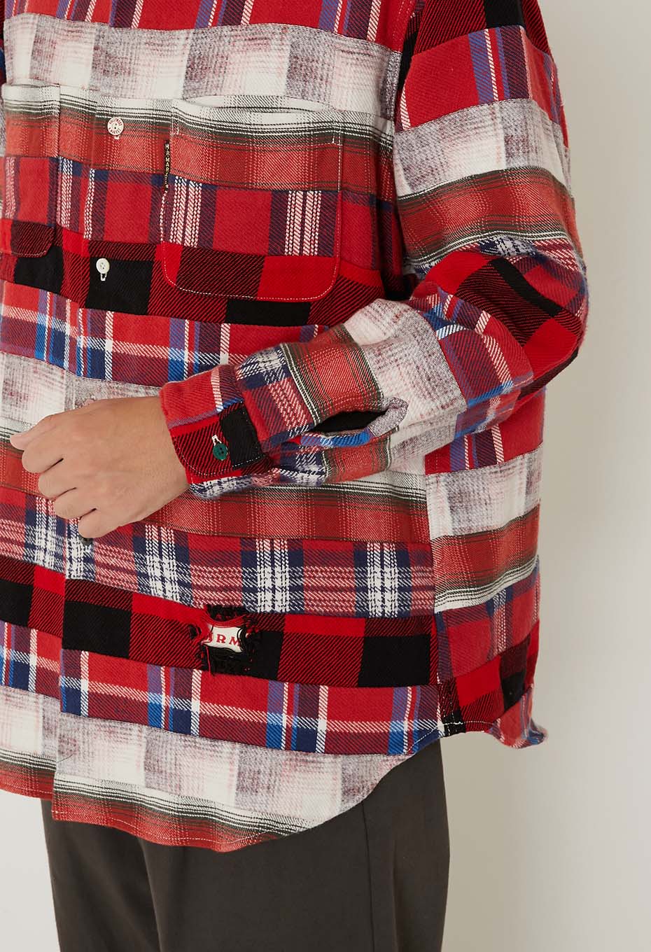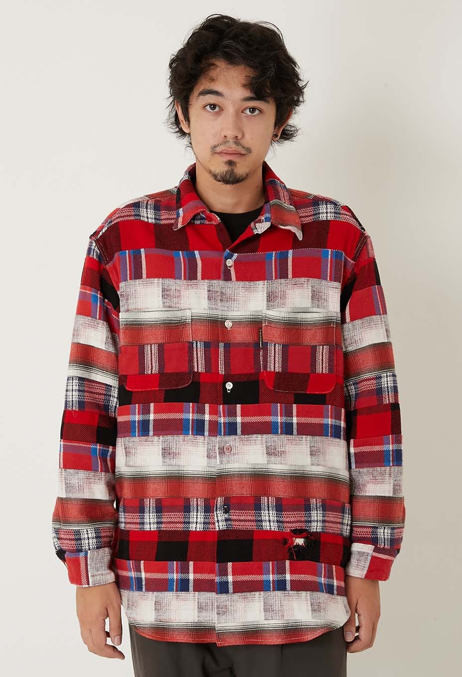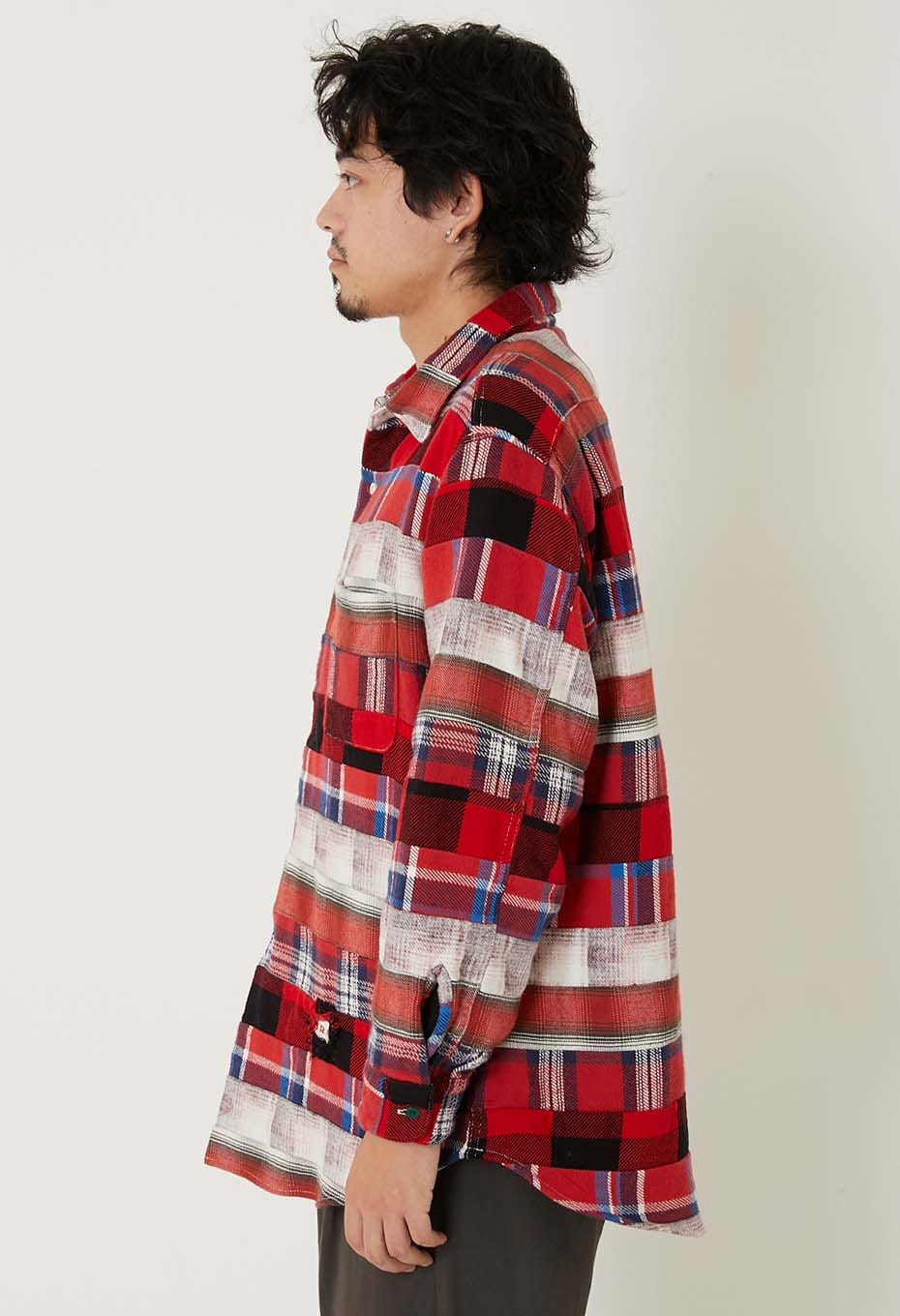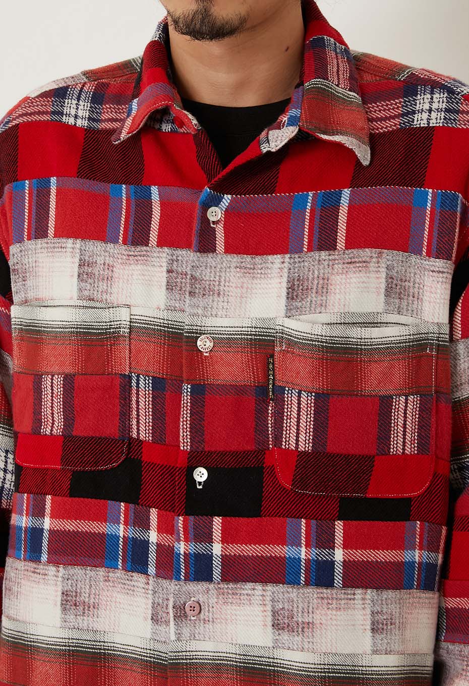 数種類のネルチェック生地をパッチワークしたオリジナルワークシャツです。