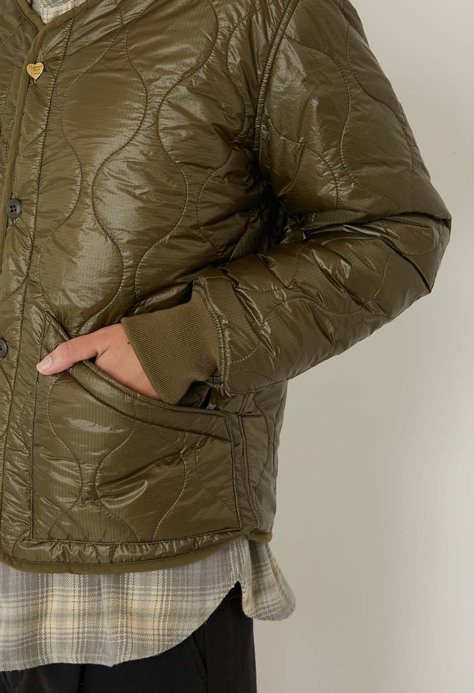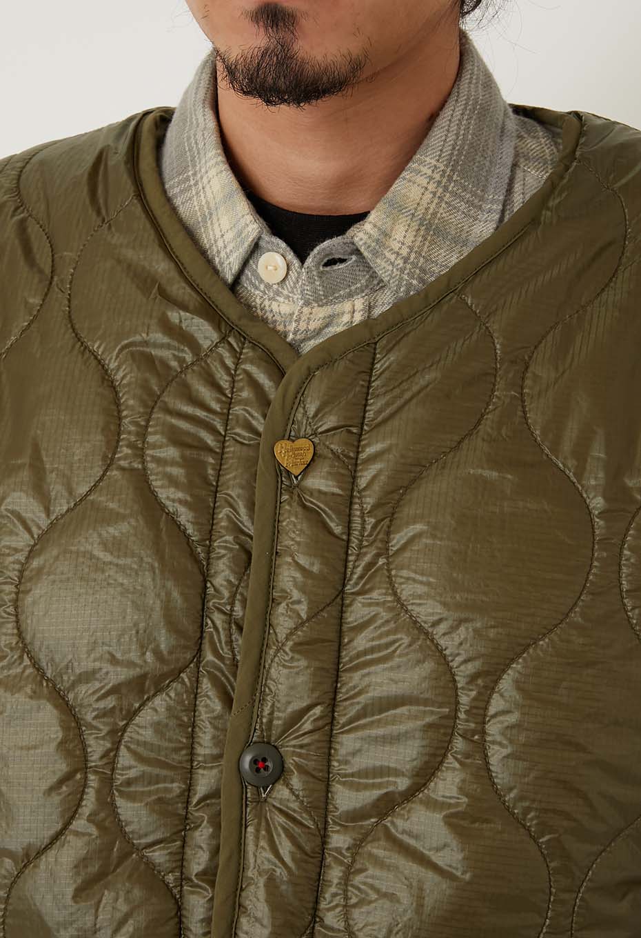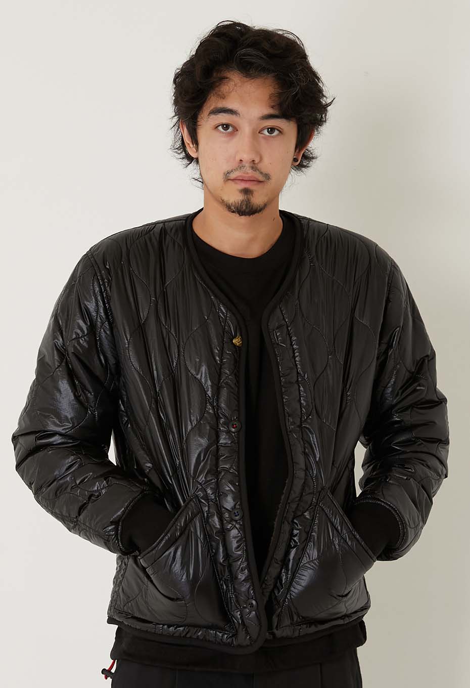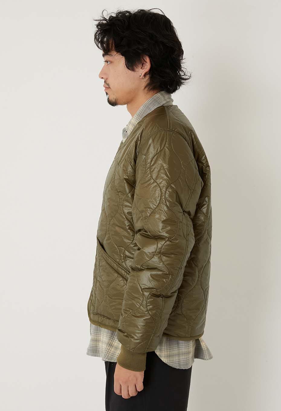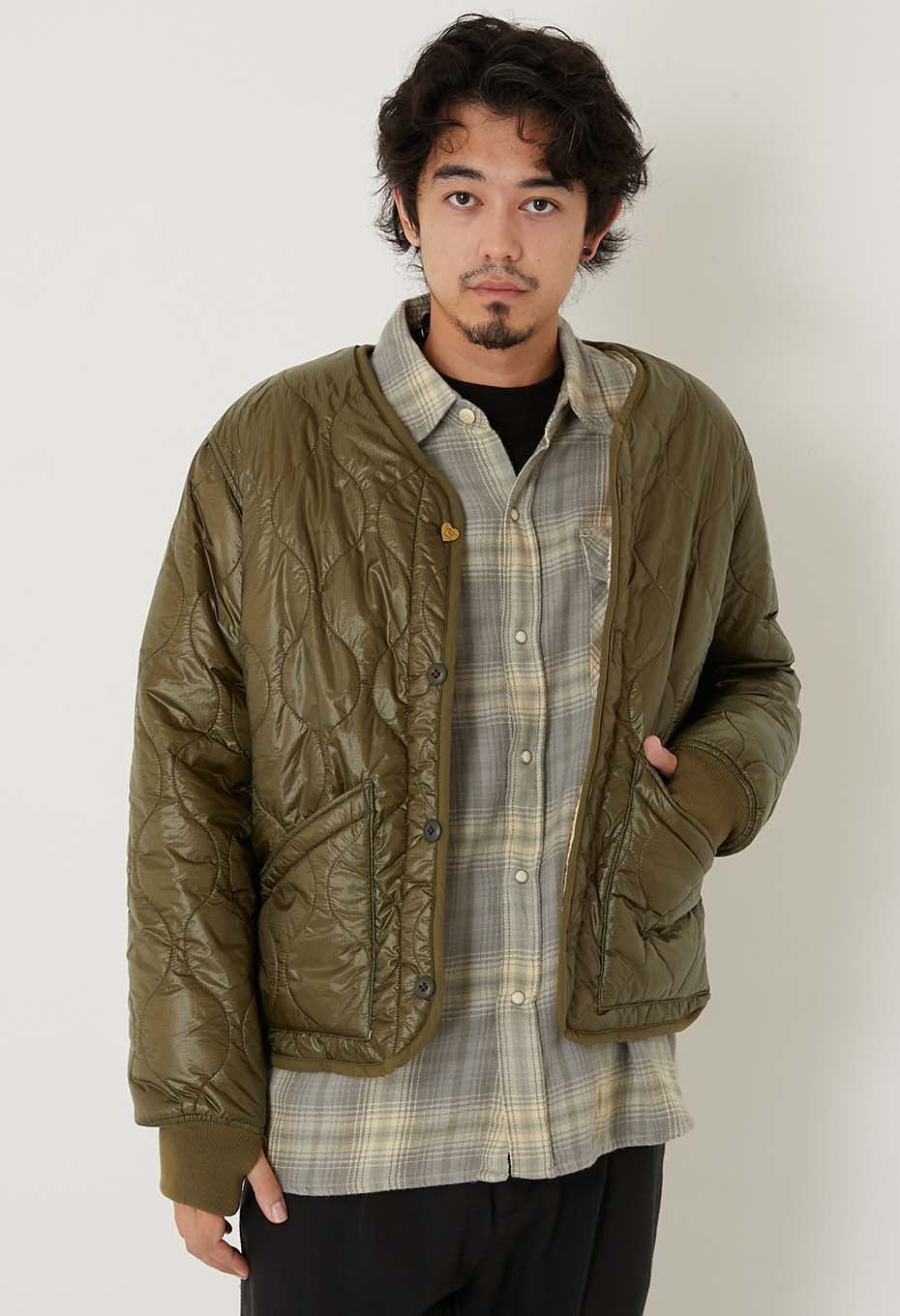 ミリタリーのライナージャケットがモチーフの、レイヤードに適したジャストフィットデザインです。オリジナルのコンチョボタンを使用しています。