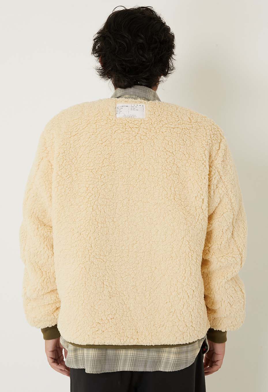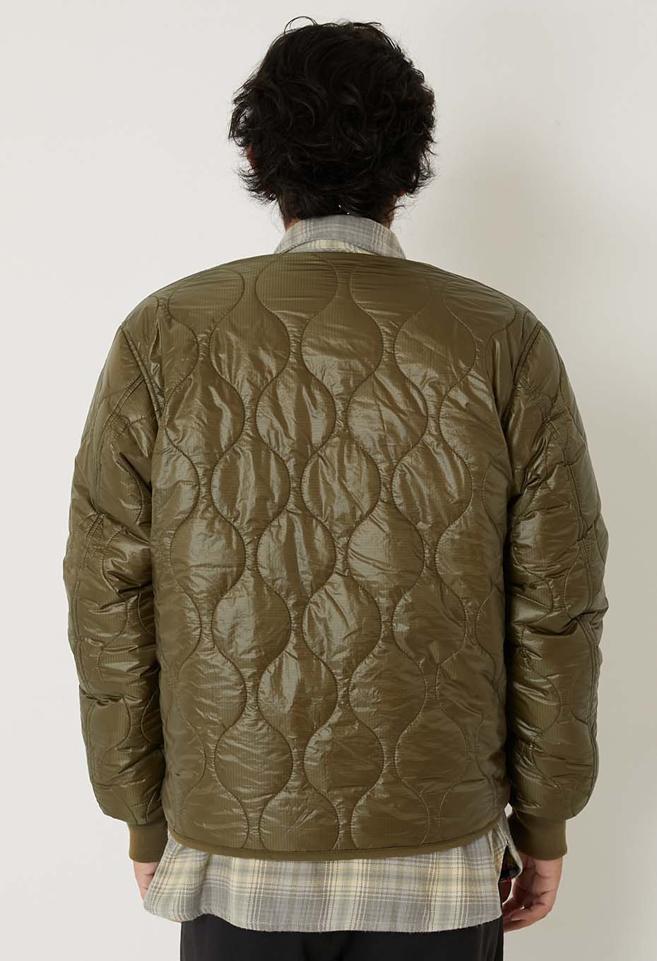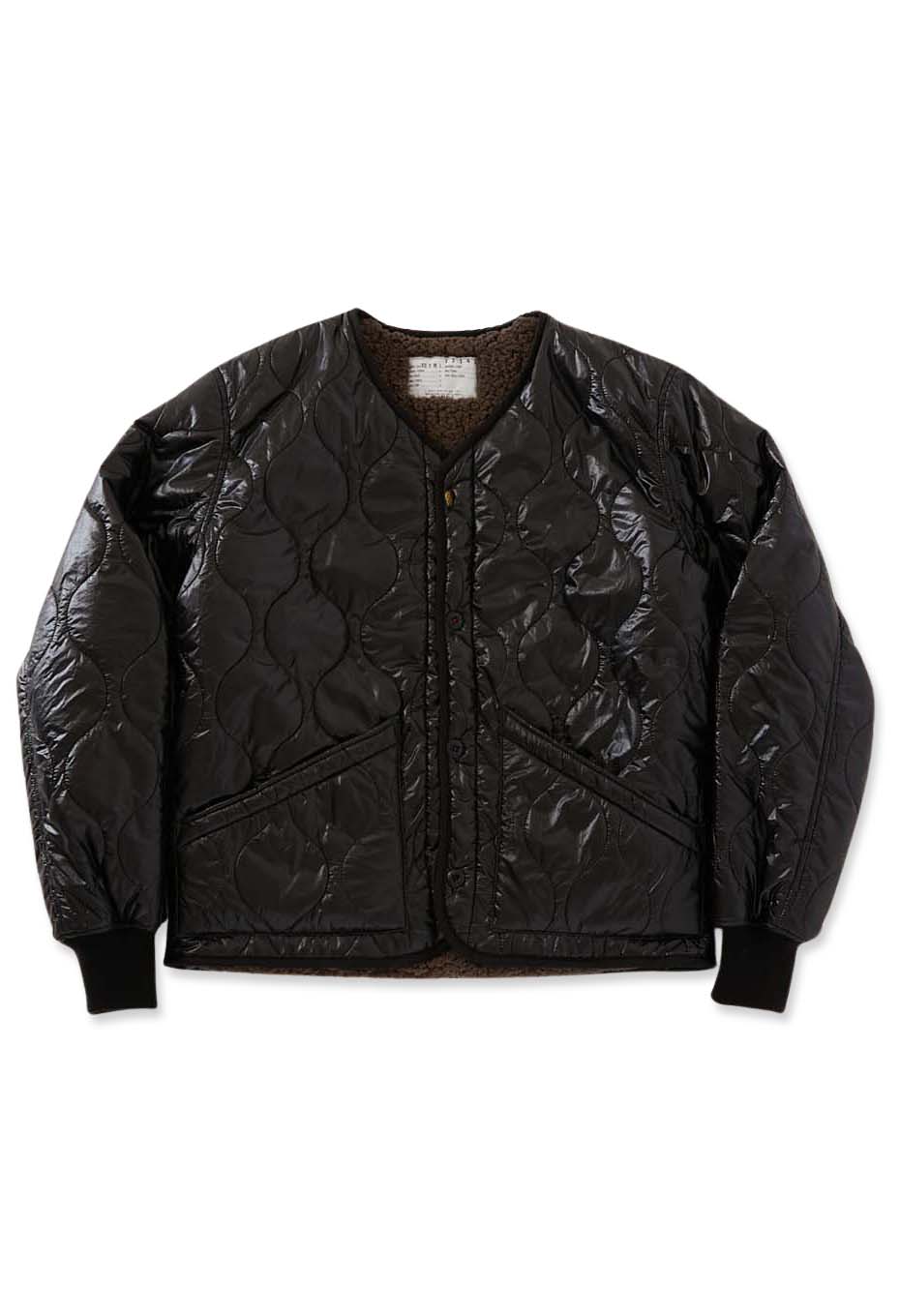 表地はミリタリーモチーフのリップストップキルティング、裏地は肌触りの心地よい温もりあるシープボアを使用しています。