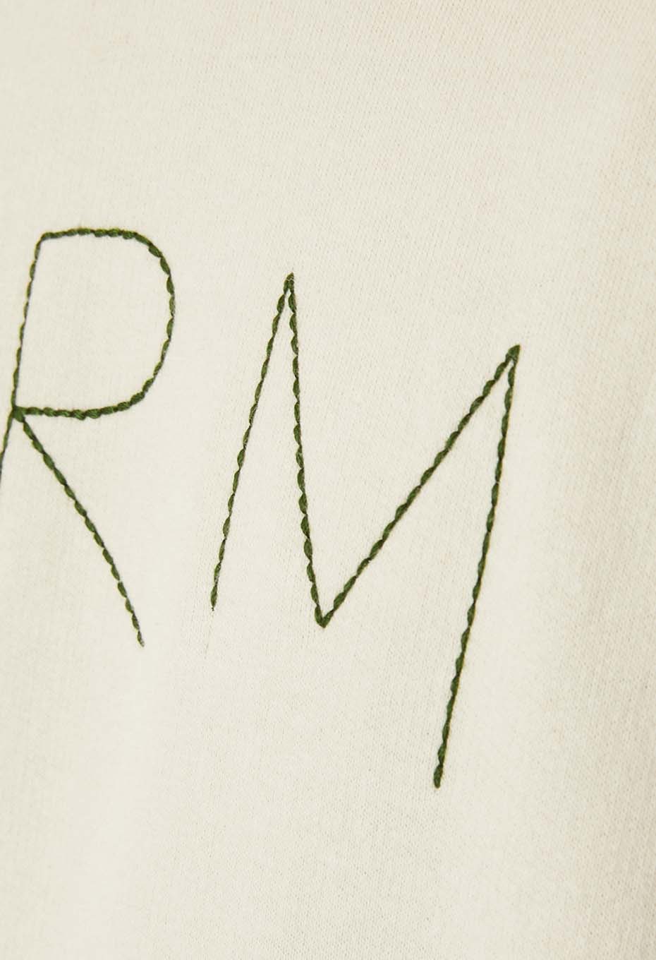 手刺しゅうのロゴステッチをイメージした、愛らしいクルーネックスウェットです。