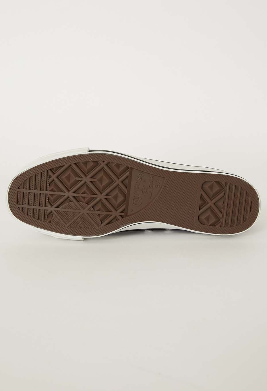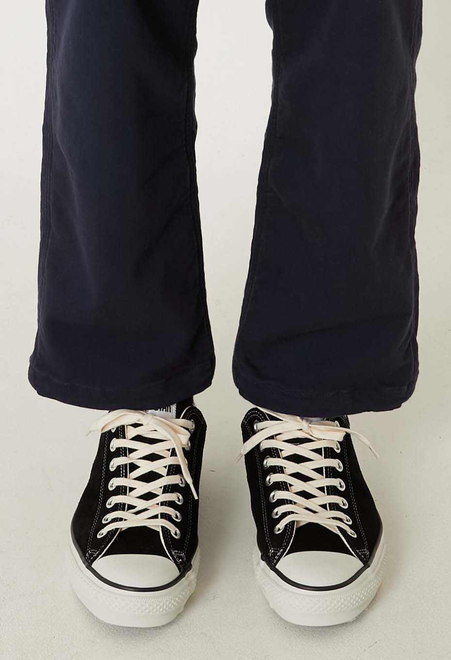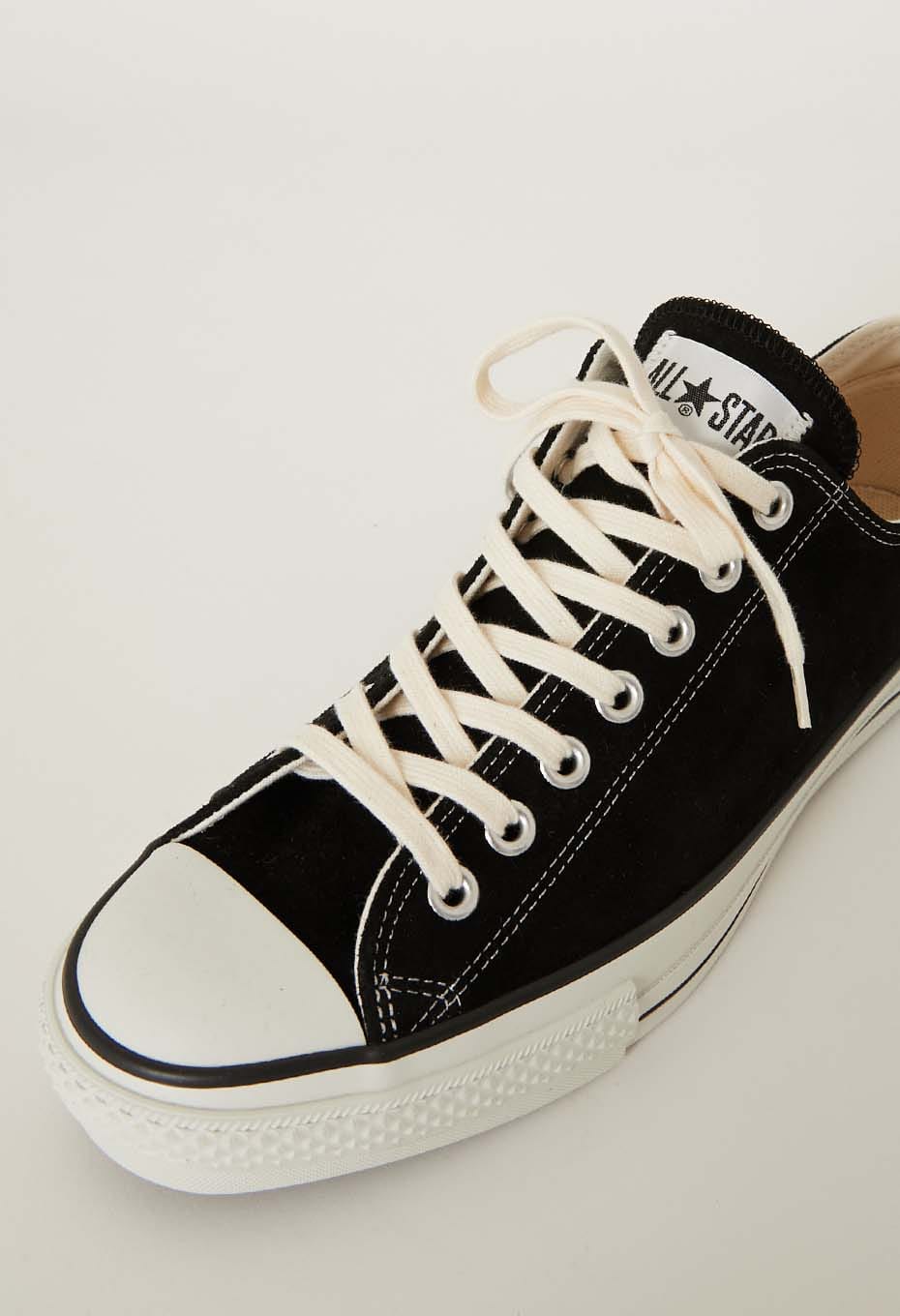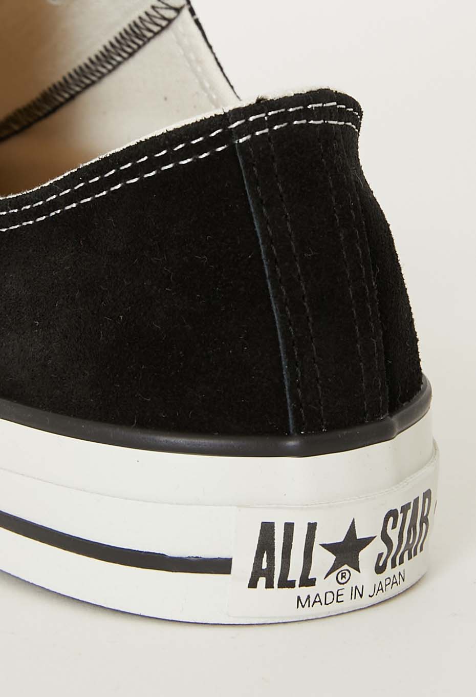 生成りのテープやコットンシューレースが、クラシックな雰囲気を演出。ヒールラベル下部に印字された「MADE IN JAPAN」の文字や、日本国旗をイメージして赤字であしらわれたインソールのコンバースロゴが象徴的です。国産のオリジナルカートン仕様。