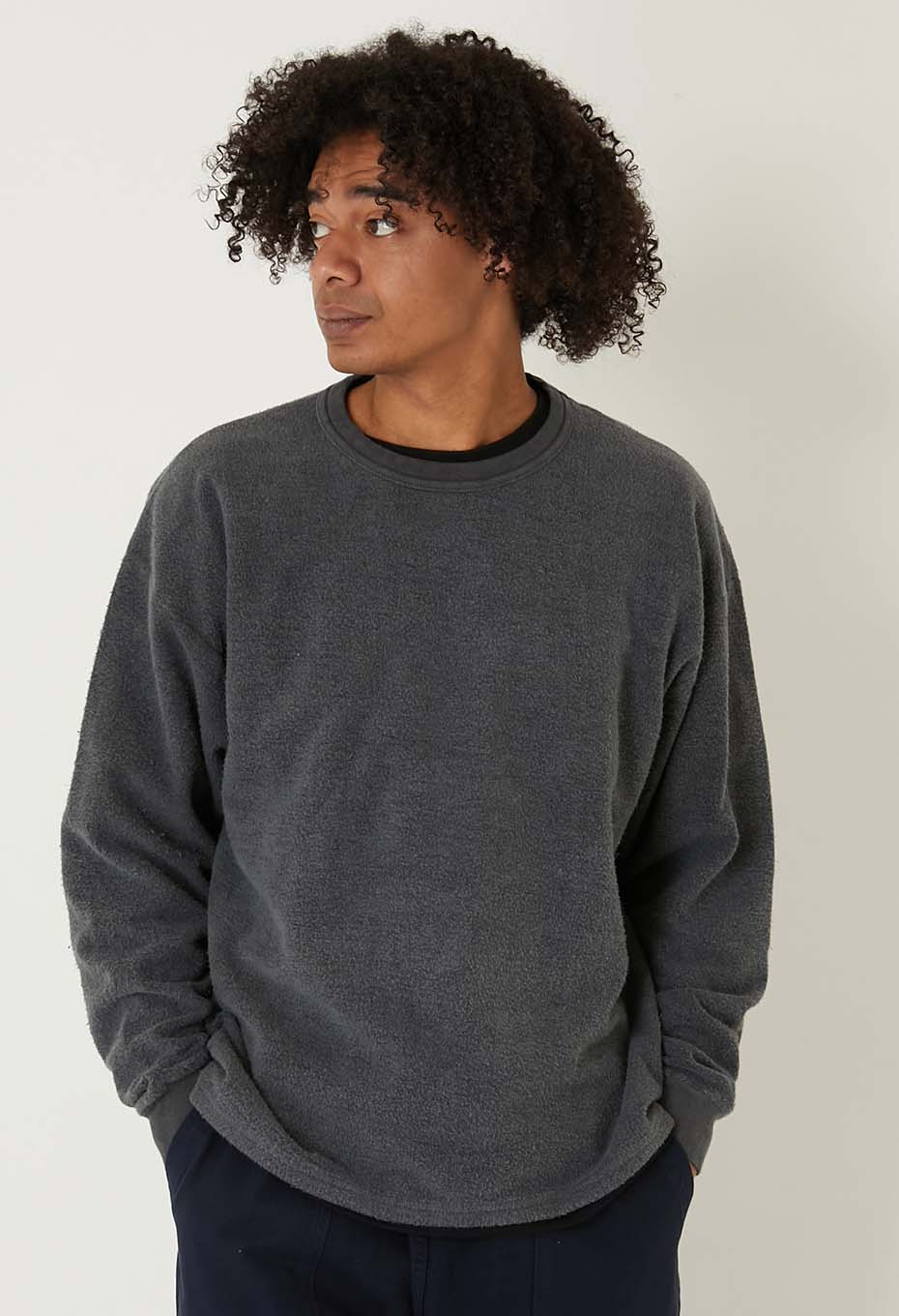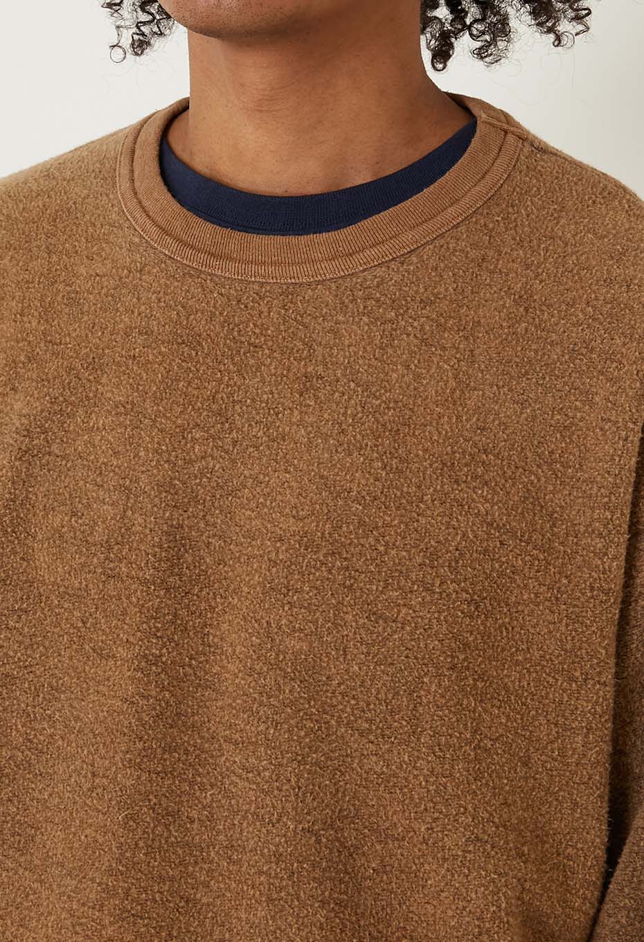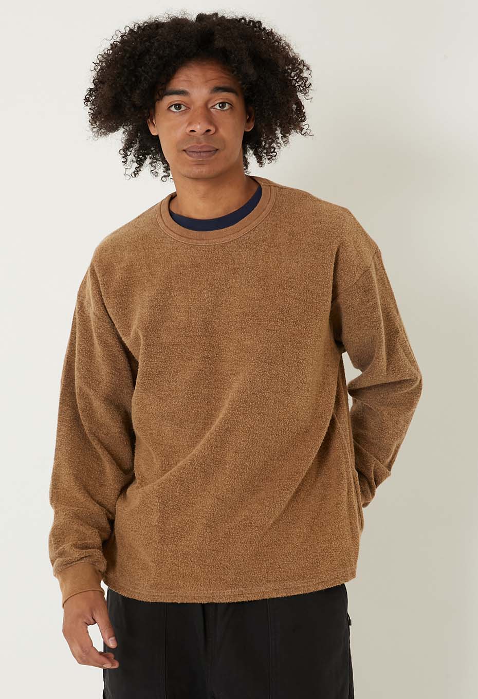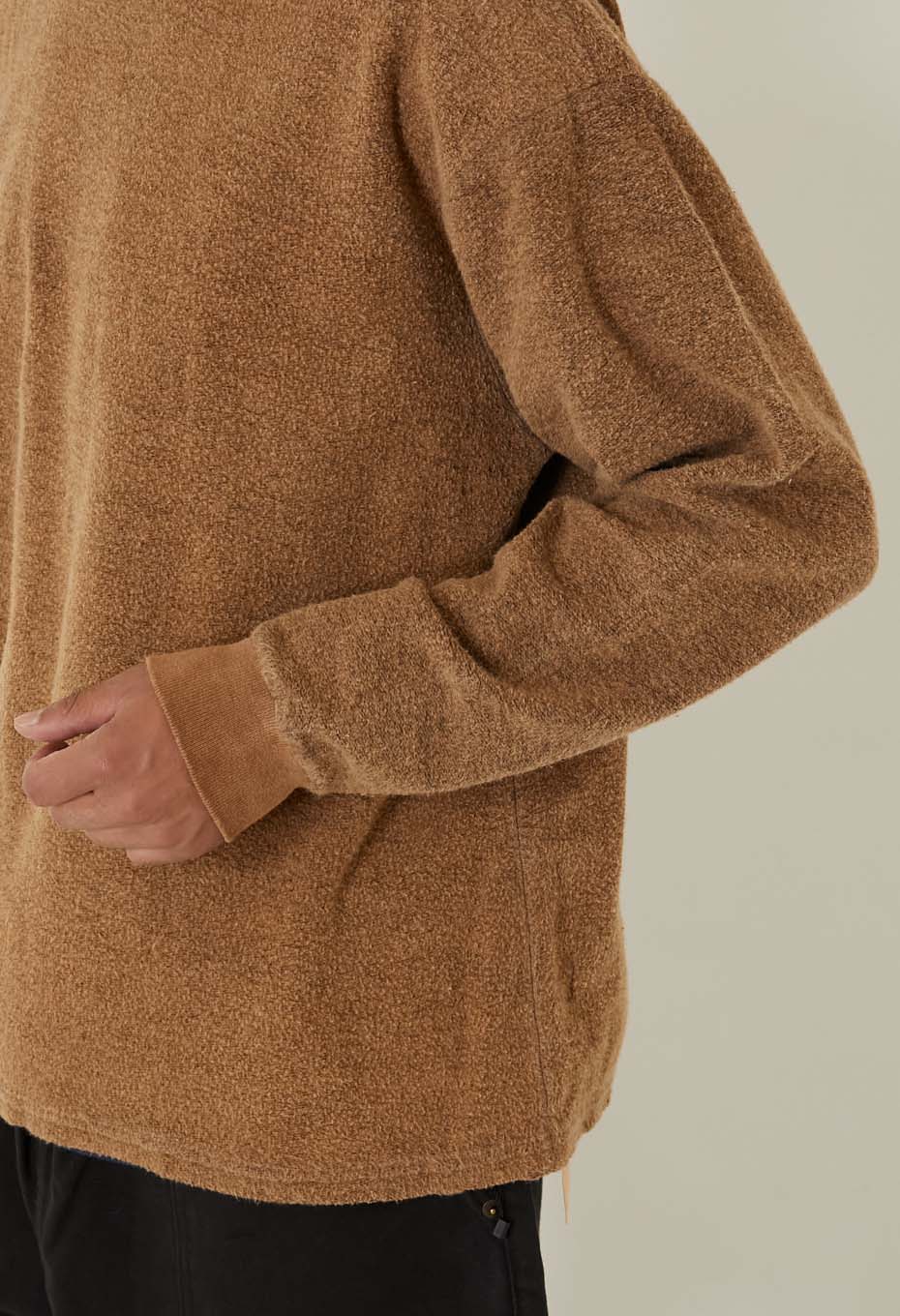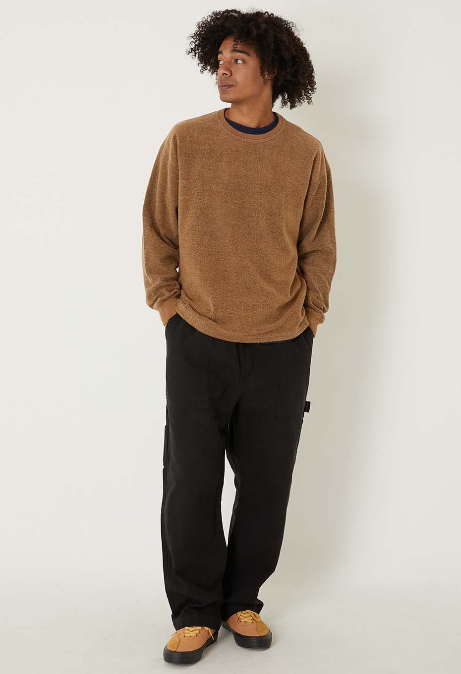 独特のボリューム感と生地表面に現れた凹凸がアメリカ製らしさを感じさせ、ブランド名の通り「タフ」な一着に仕上がっています。少し肩が落ちる、トレンド感のあるサイズ感です。ウォーム感があり、スウェットのような感覚でご着用いただけます。