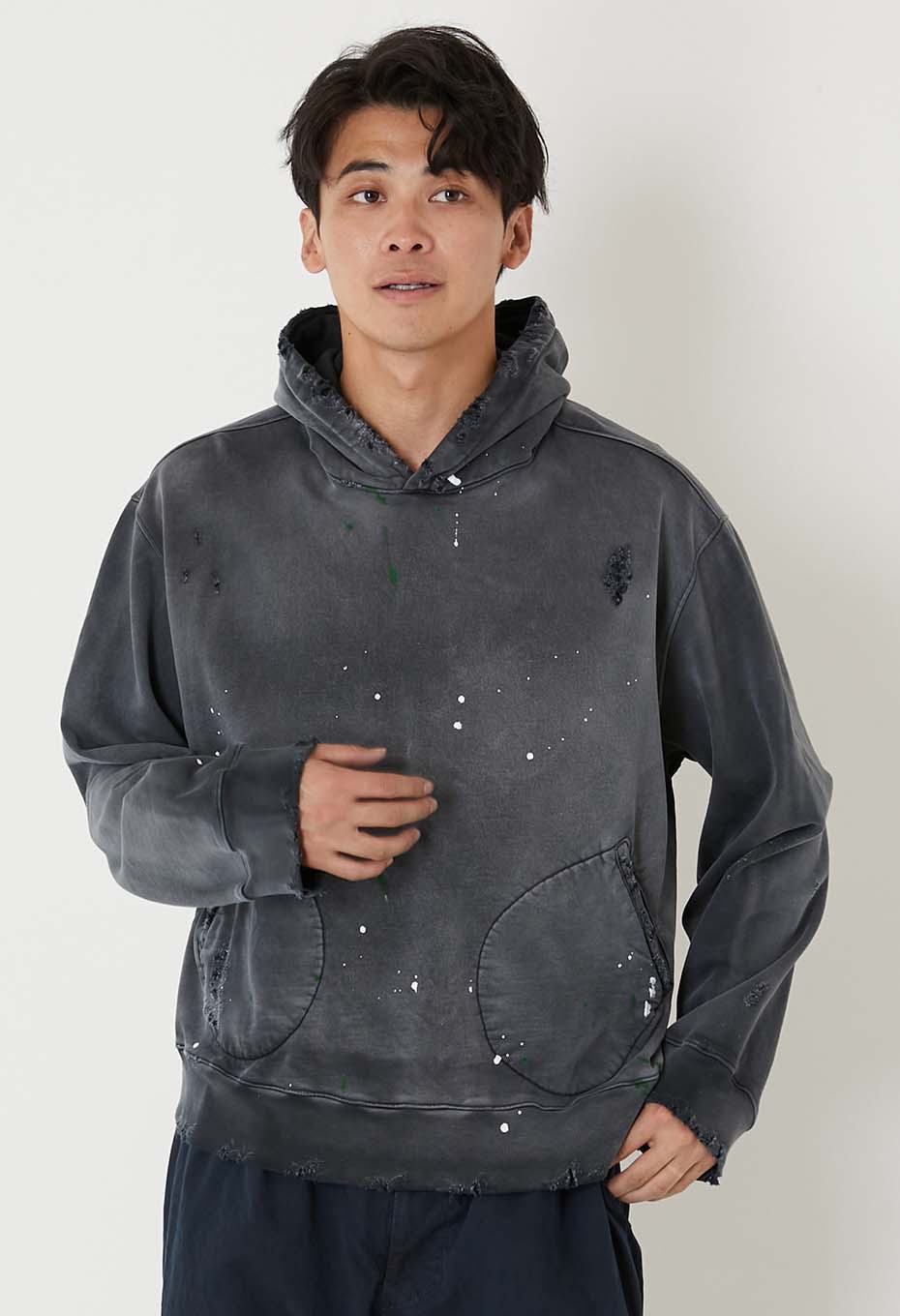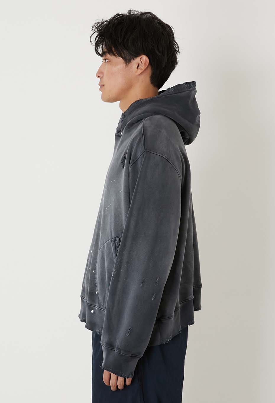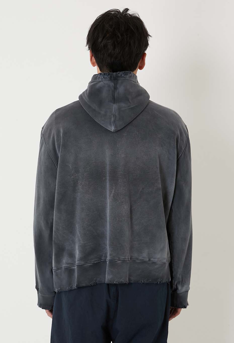 - 経年変化を、ブランドが得意とする加工技術で表現したスウェットフーディです。