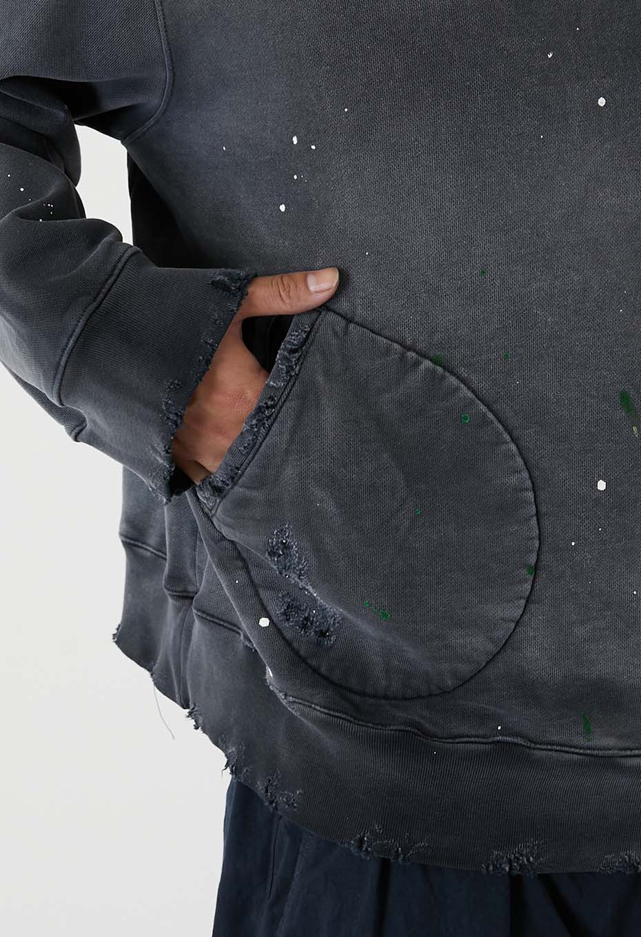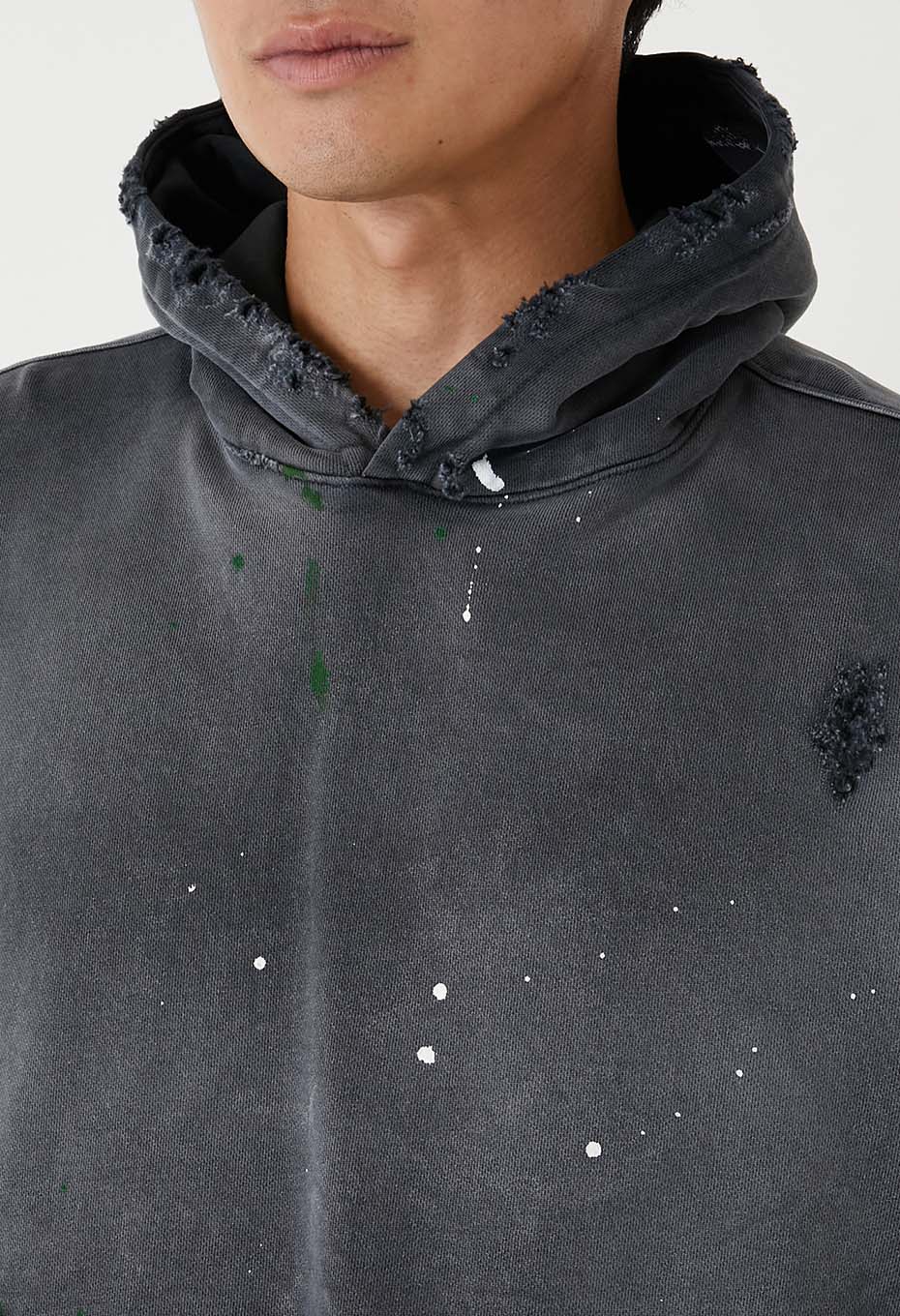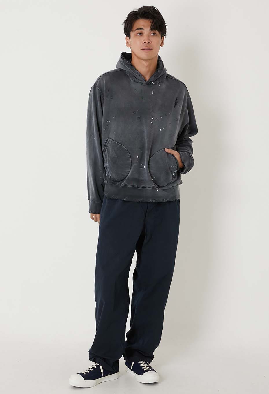 - 経年変化を、ブランドが得意とする加工技術で表現したスウェットフーディです。