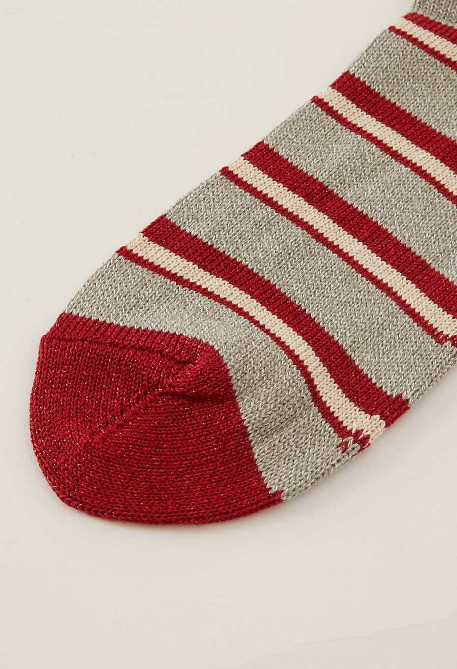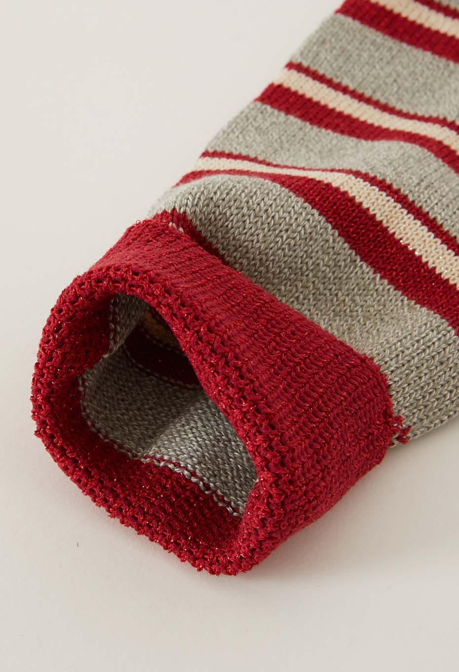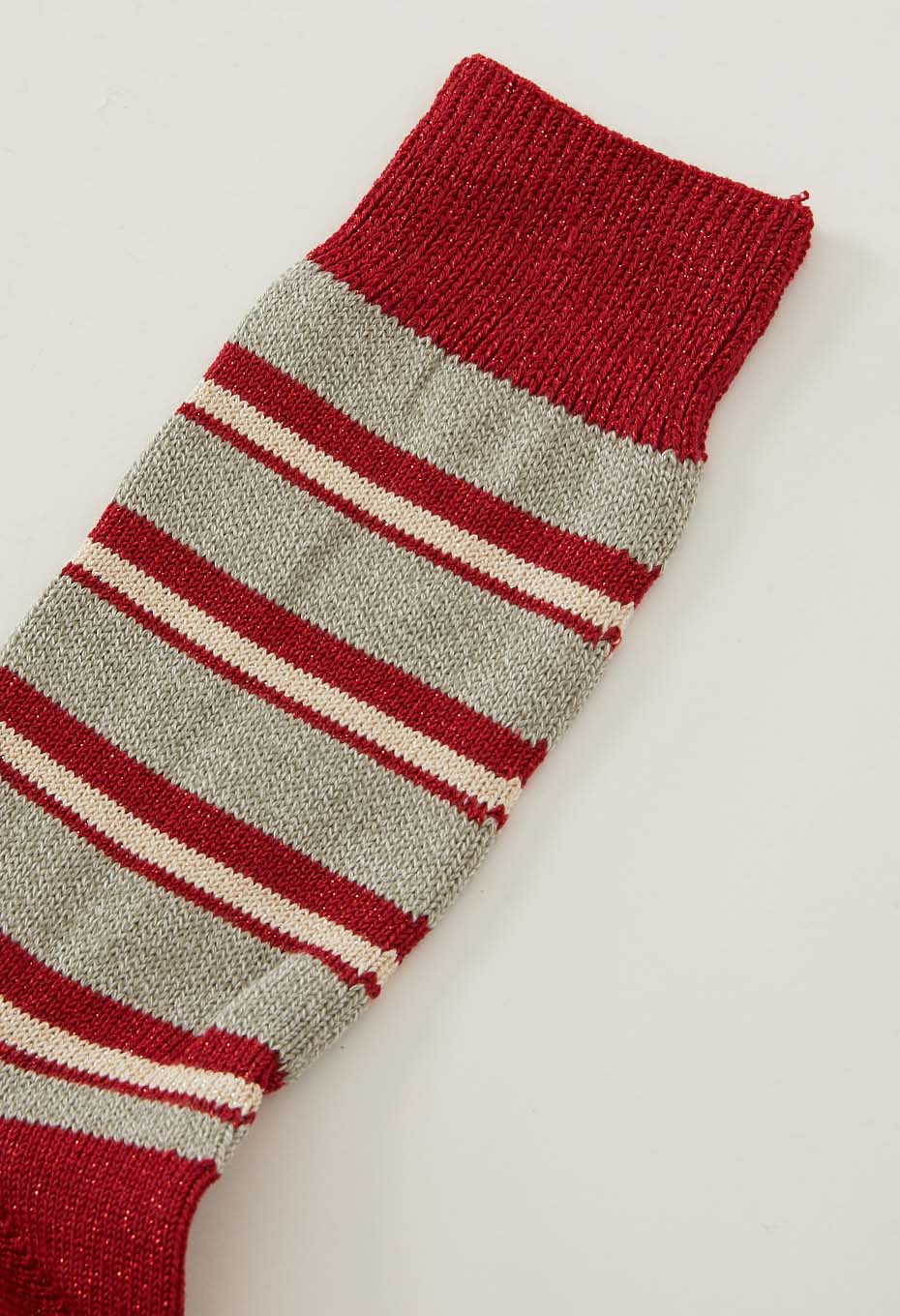 網目の表情が際立つのが特徴。履き口のゴムは少し緩めで締め付け感が少なく、ストレスフリーな仕様となっています。綿糸を通常より1本多い5本入れて編み上げた、頑丈なソックスです。