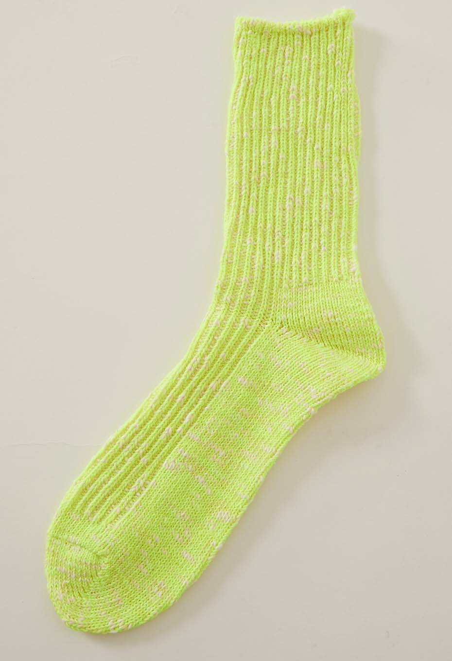 - 旧式のB式機というオールドマシンのパイル機で編み上げたローゲージソックスです。