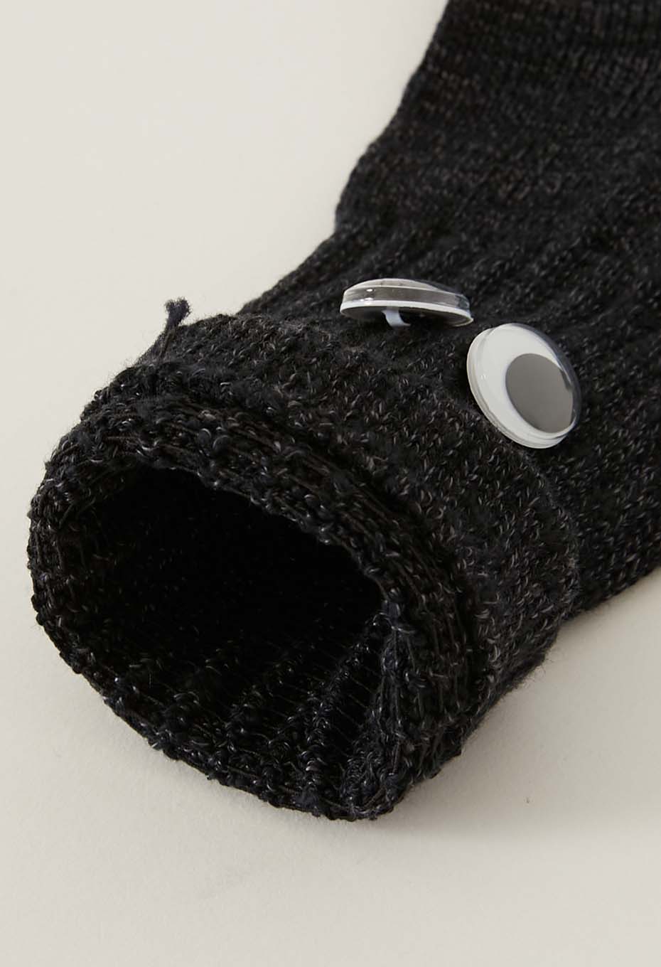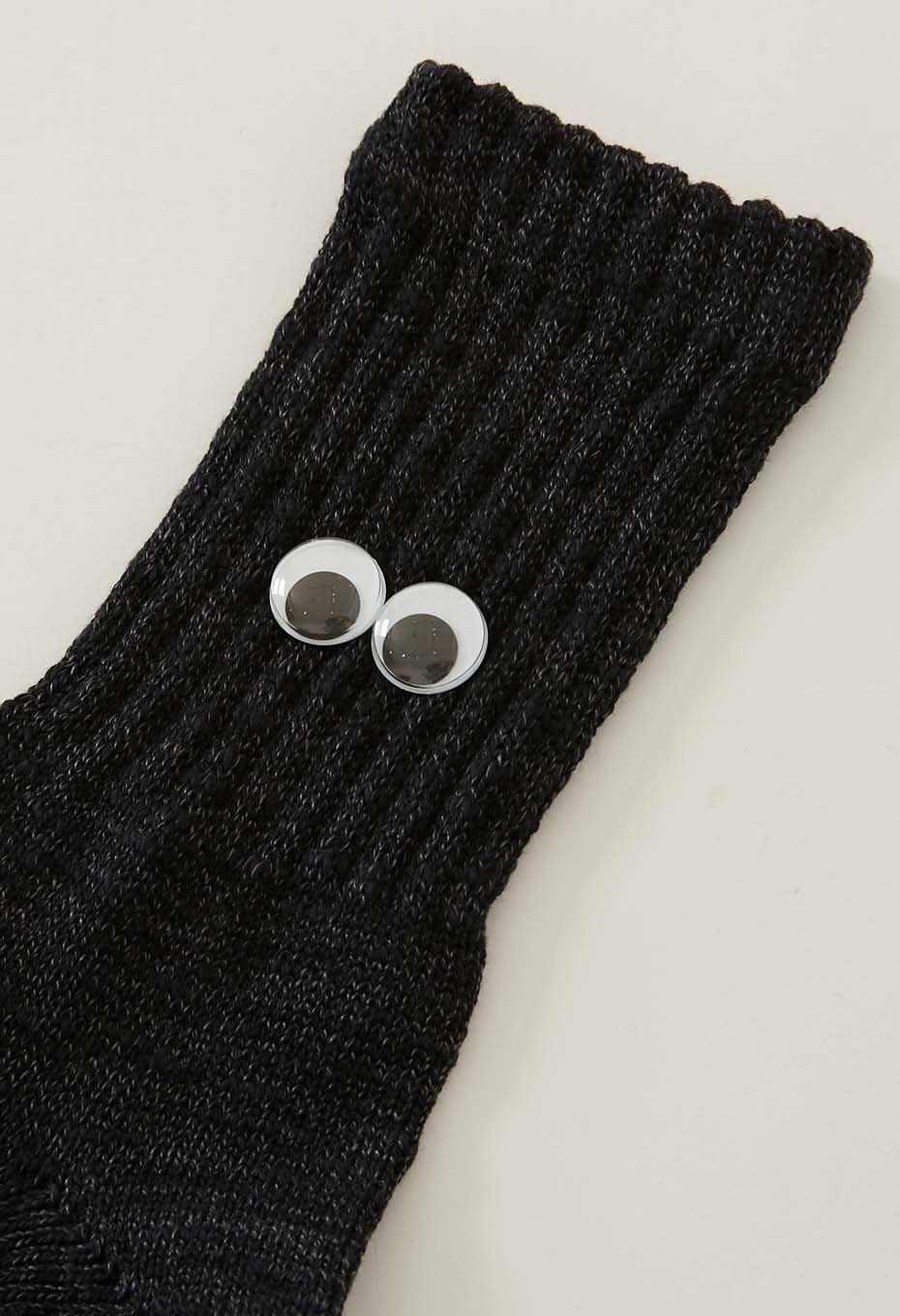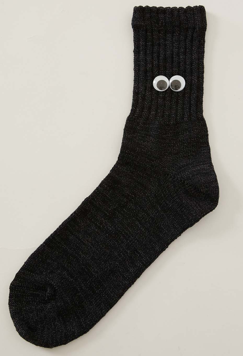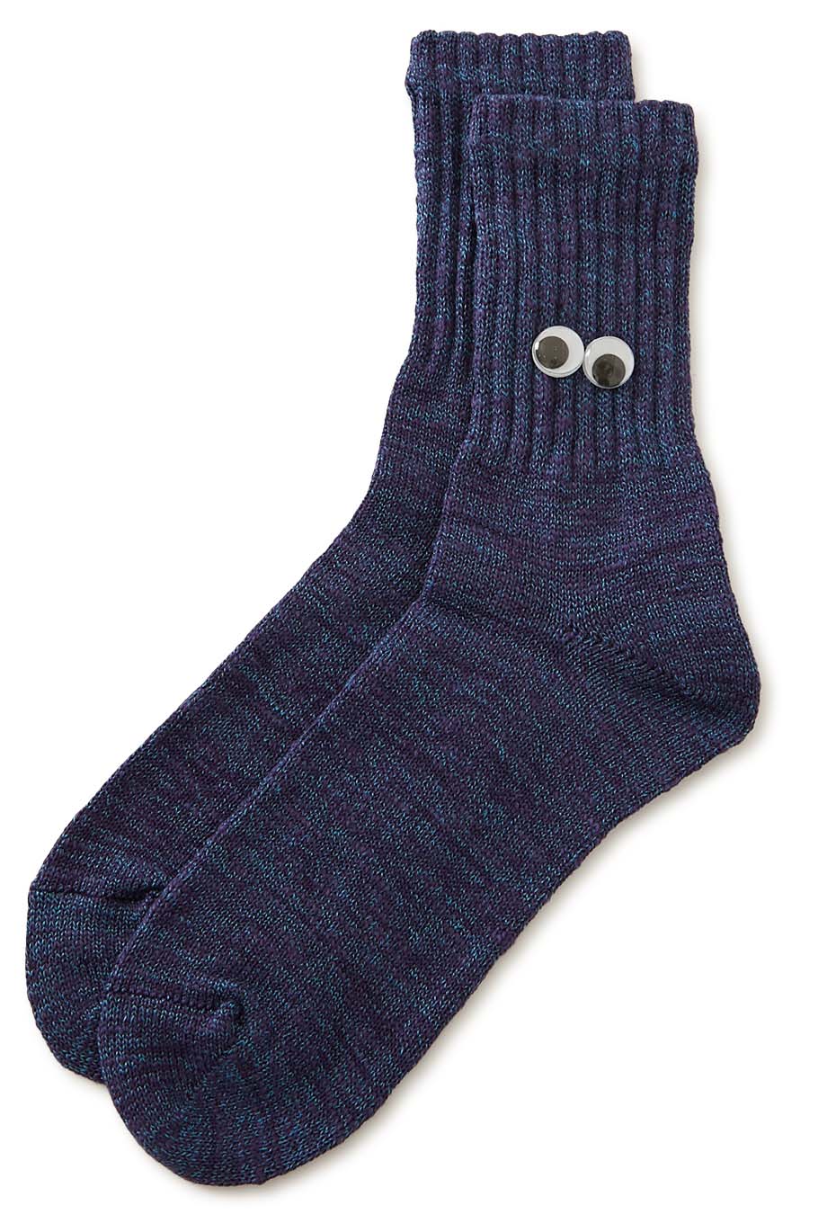 綿糸にスラブ糸を混ぜることで、柔らかく味わい深い風合いに仕上げました。遊び心のある動く目玉が足元から楽しい気分を演出します。