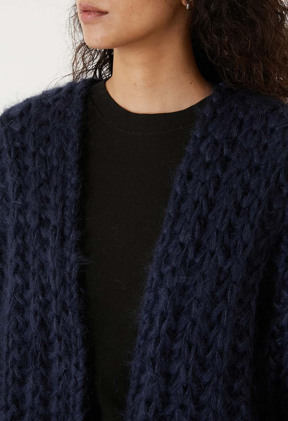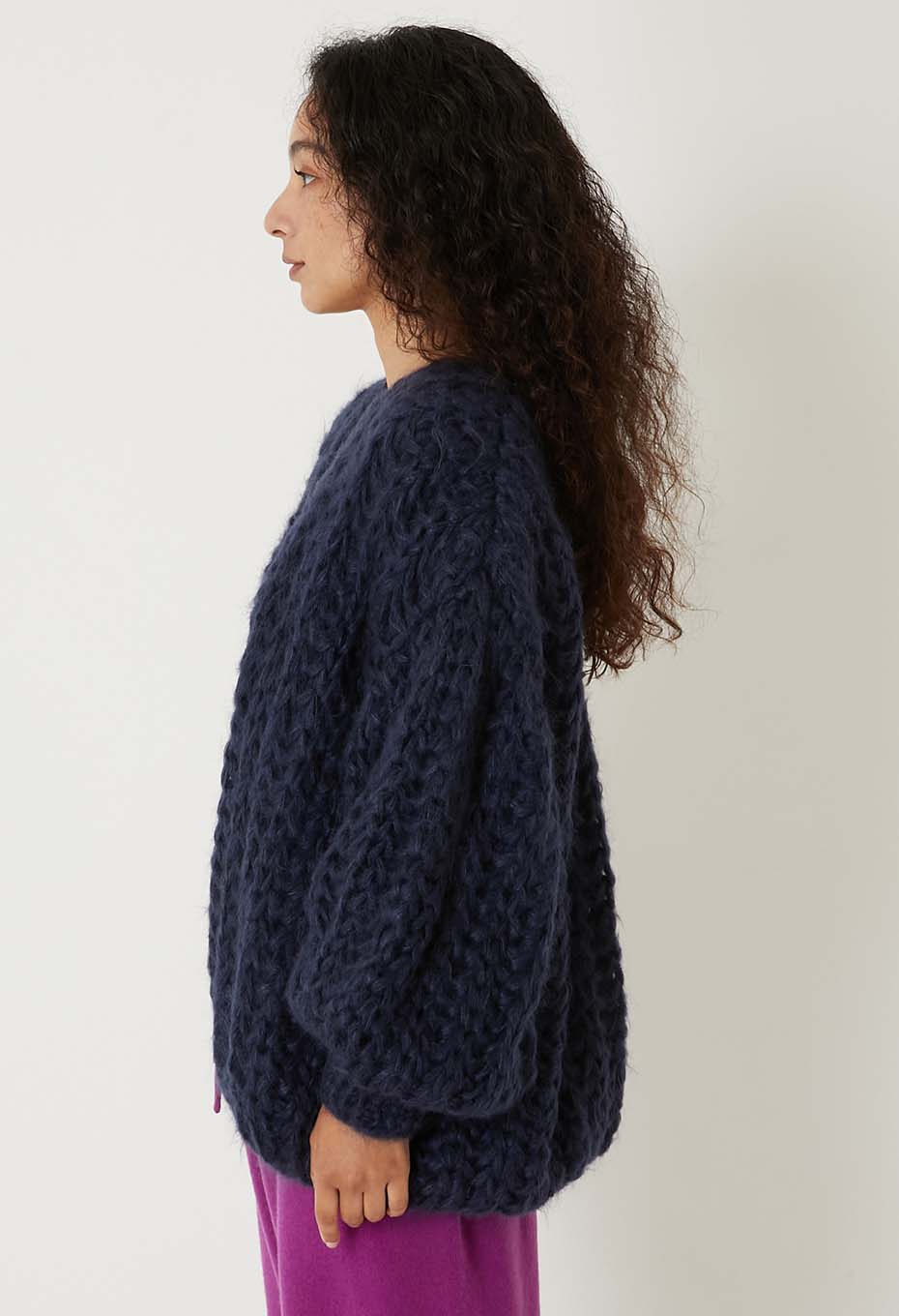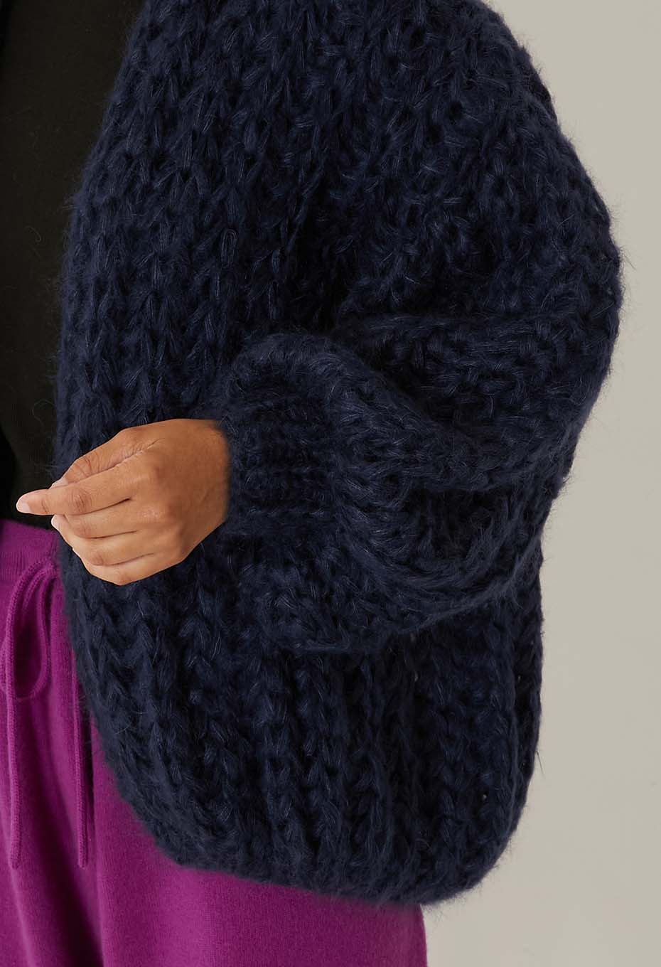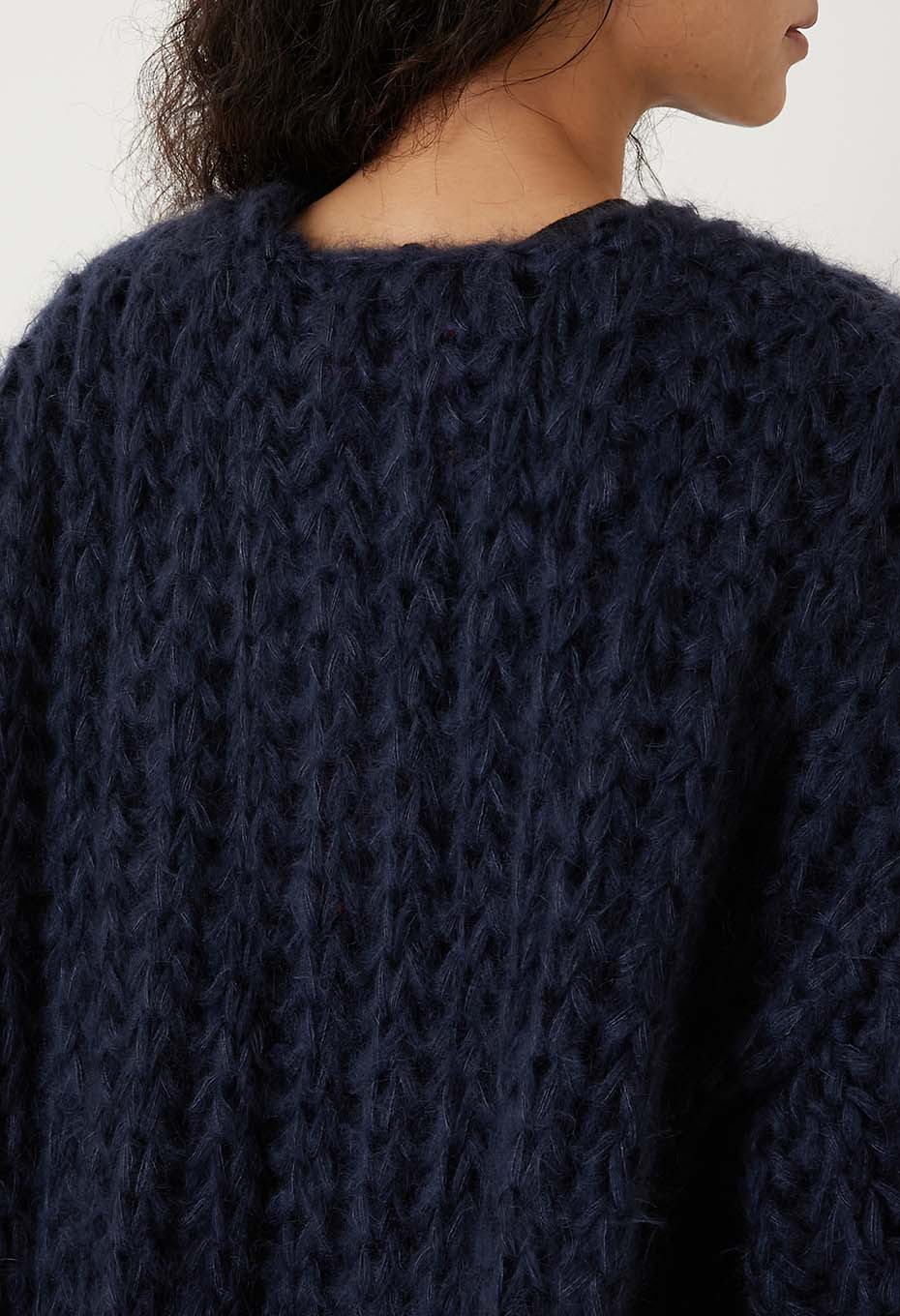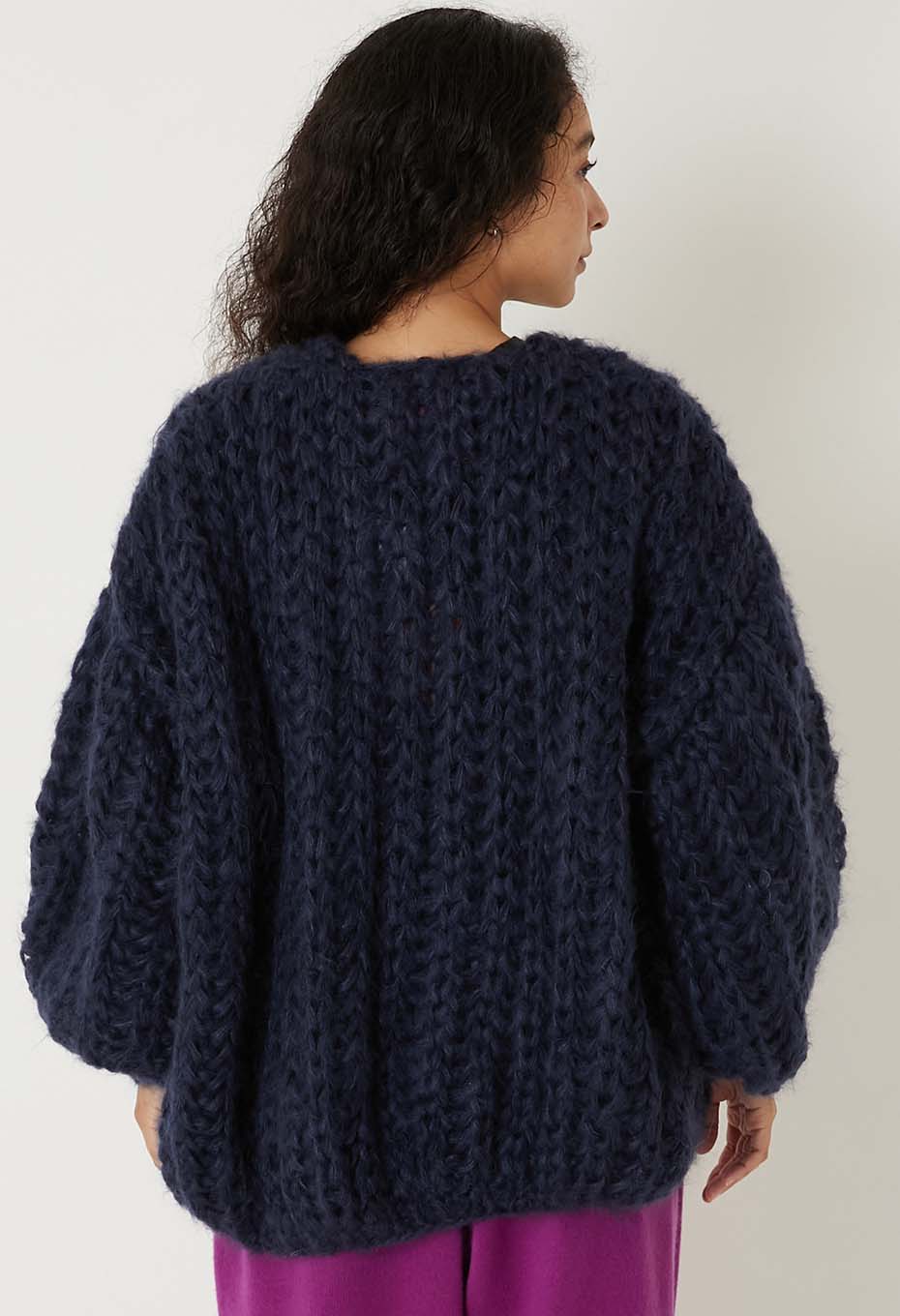 - 上質なスーパーキッドモヘアとシルクを使用し、一つ一つ手作業で丁寧に編み上げたリブカーディガンです。