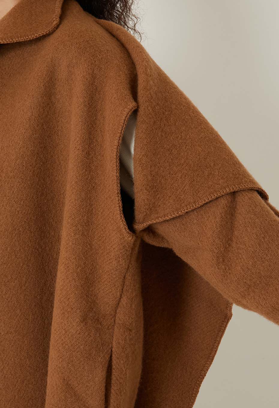 優れた保温性、美しい発色が特徴の上品なノルウェージャンウールを使用しています。たっぷりとした分量感のあるシルエットで、存在感のある一着です。