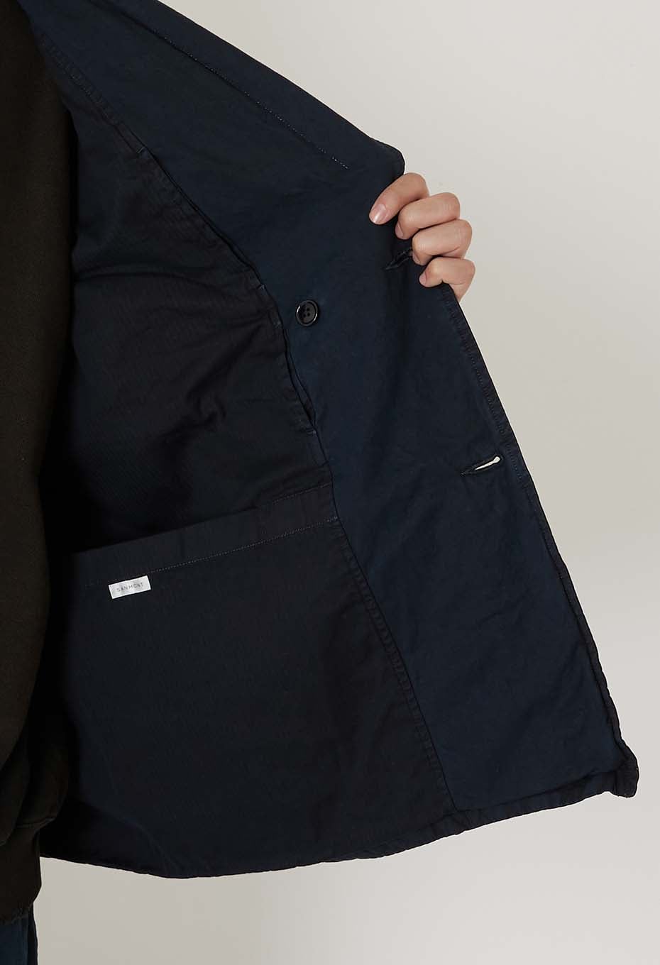 染めならではのナチュラルな皺感が味わい深い一着。全体的にソフトで丸みのある柔らかな印象です。