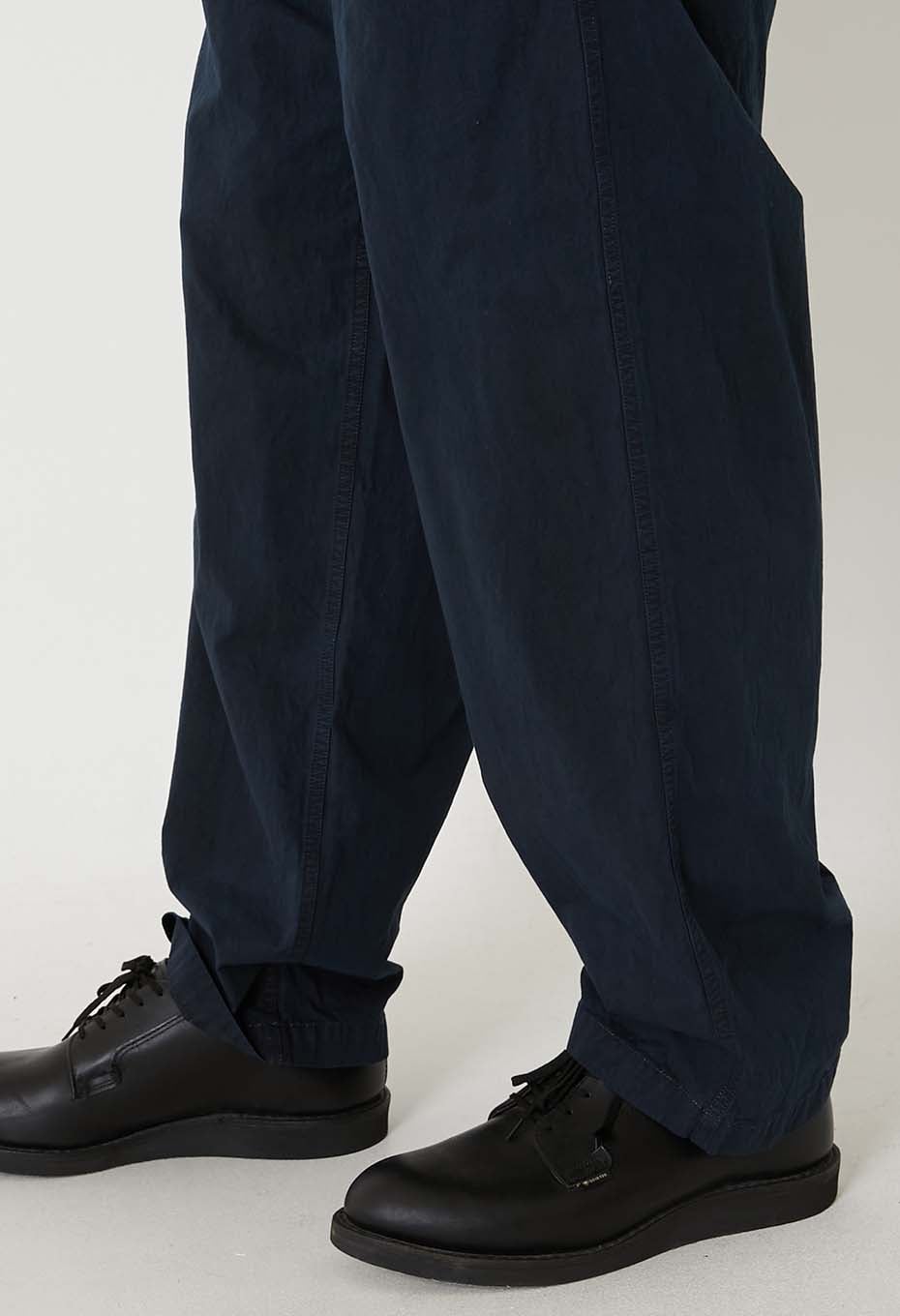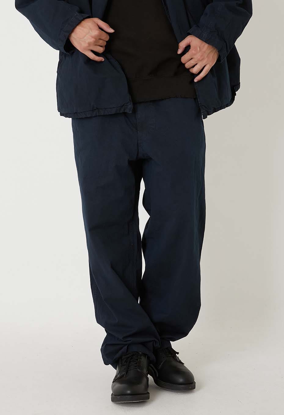染めならではのナチュラルな皺感が味わい深い一本。たっぷりとした緩やかなシルエットが印象的です。