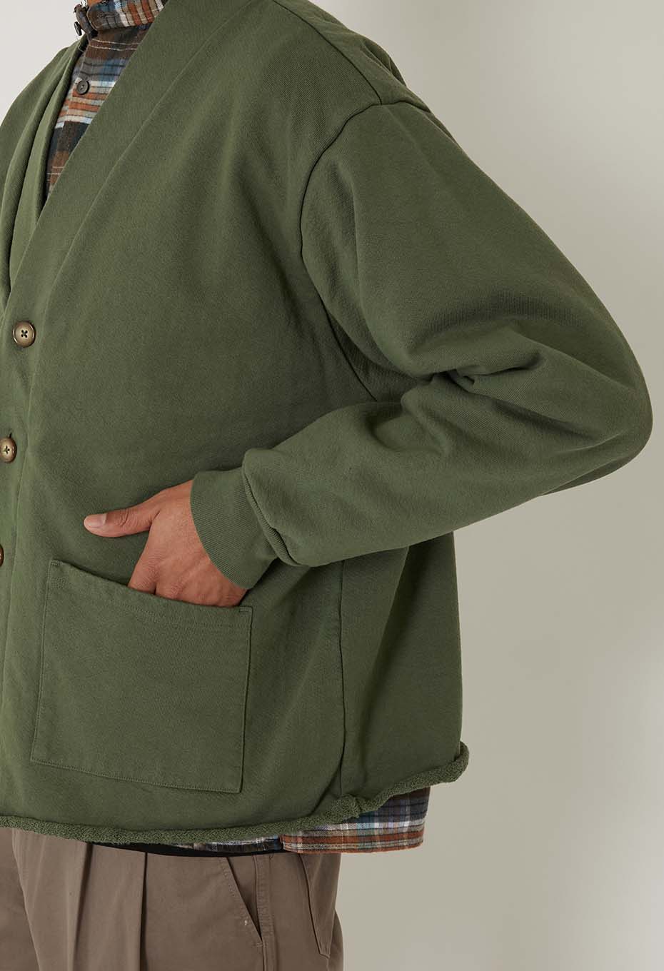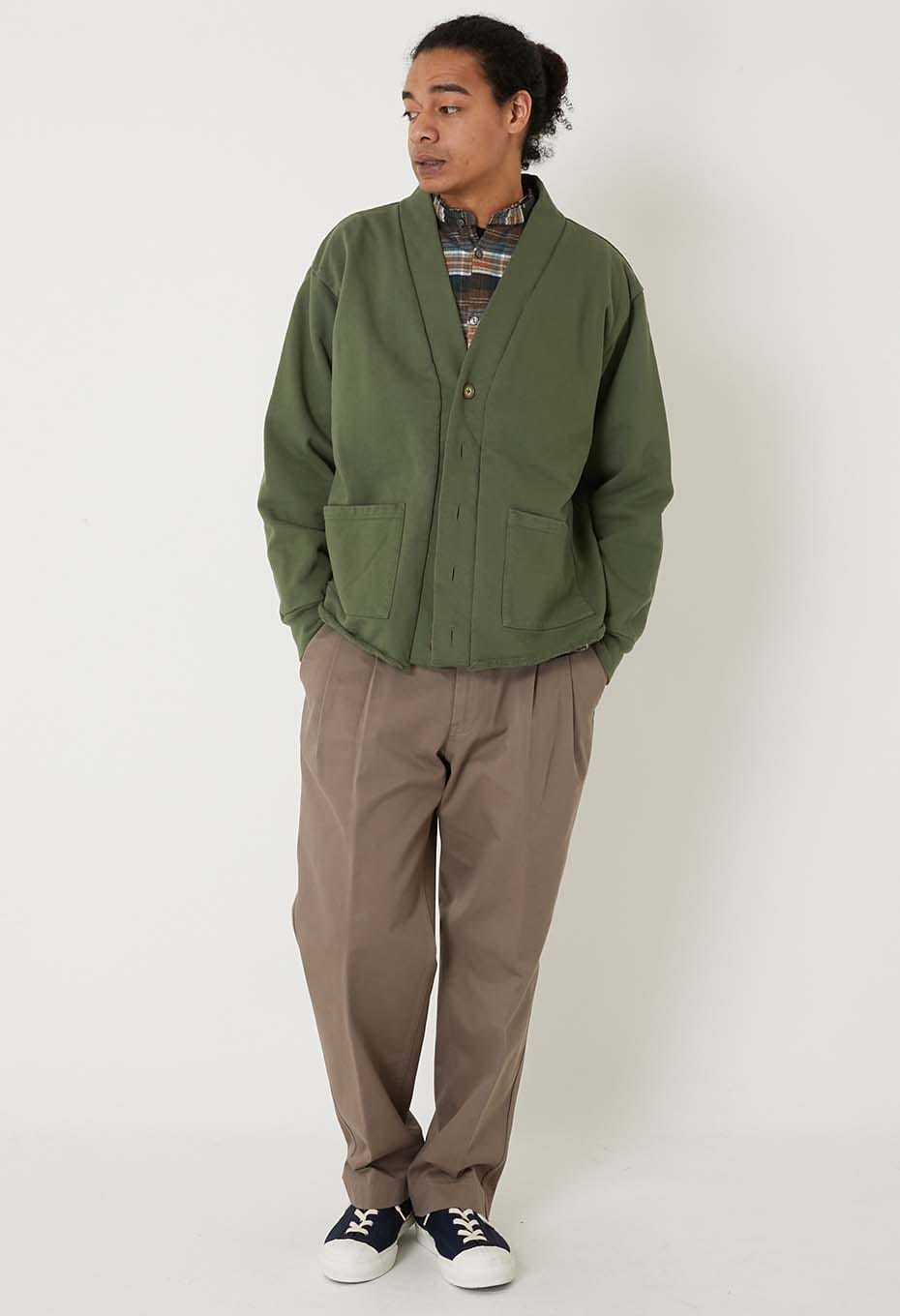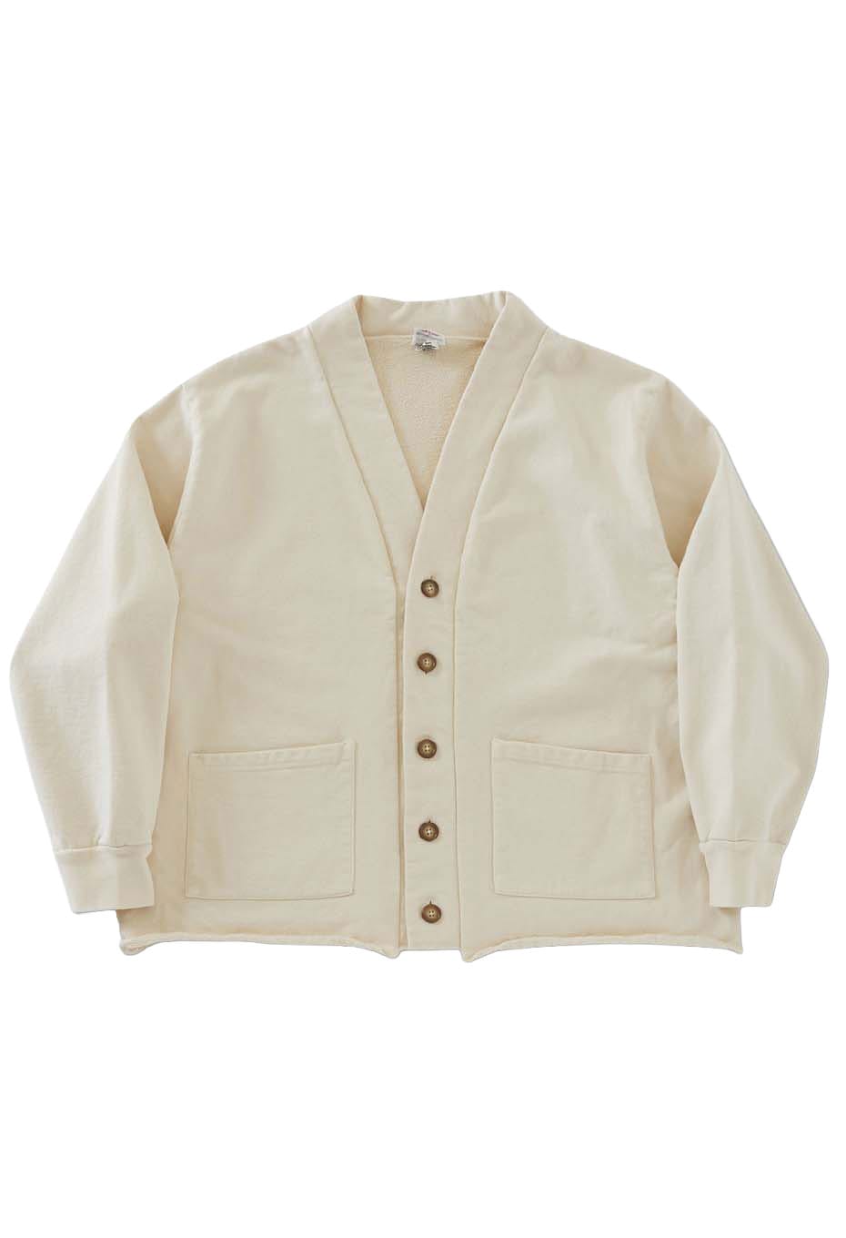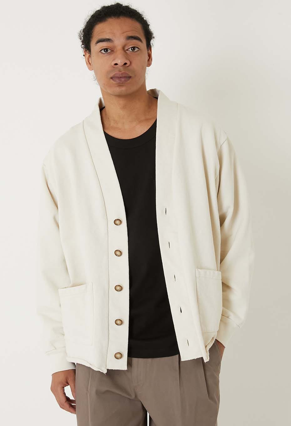 - アメリカ産13ozコットンのスウェット生地に後染めを施したカーディガンです。
