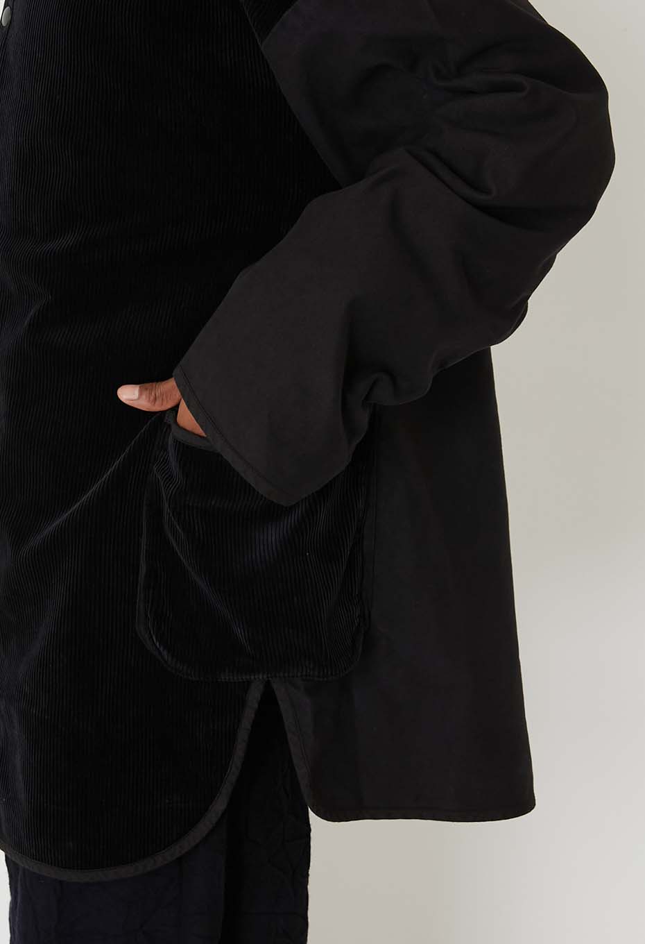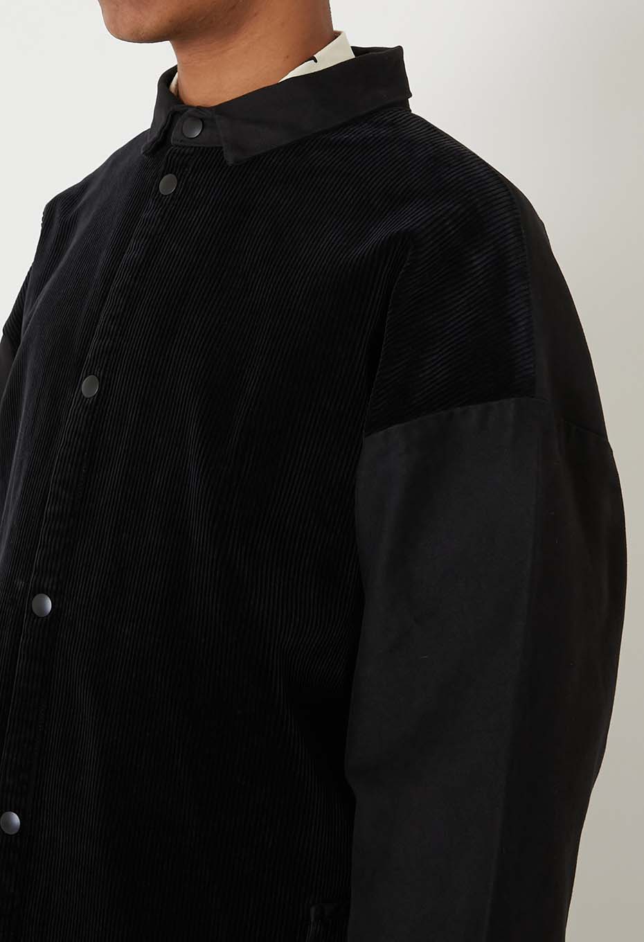 コーデュロイとモールスキン生地を使用し、着心地よく、デザイン性と汎用性を兼ね備えた一着となっています。