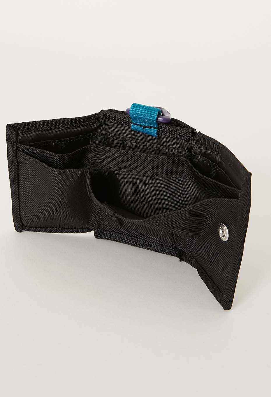 - コンパクトで使い勝手が良いサイズ感のマルチウォレットです。耐久性に優れたTPU加工素材と1680Dポリエステルを組み合わせた生地を使用しています。メインコンパートメント内部に2つの札入れと3つのポケット、背面にコインポケットが配されています。小さめなサイズながらも機能性抜群です。バックパックやベルトループに取付可能な三角カンが付いています。