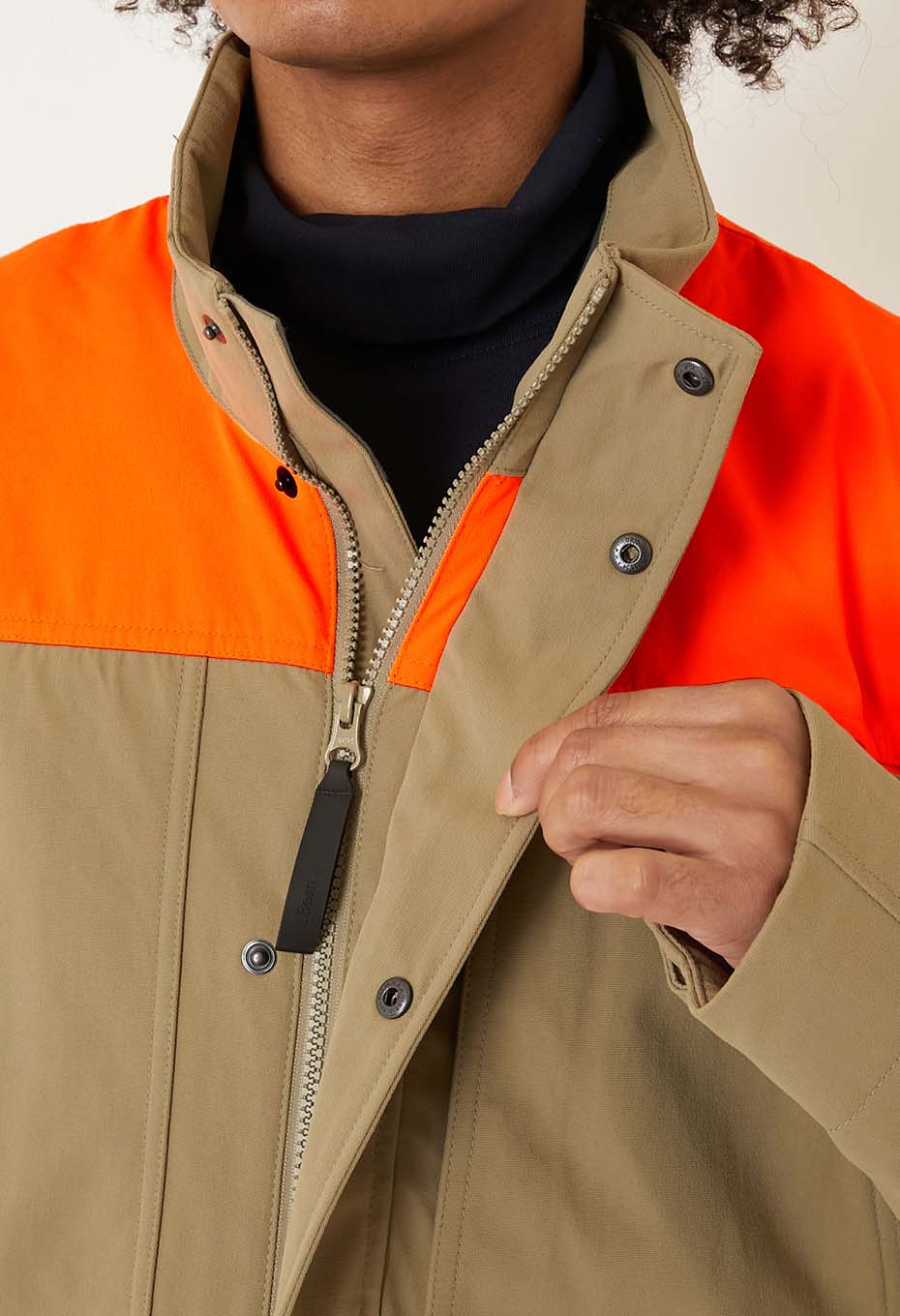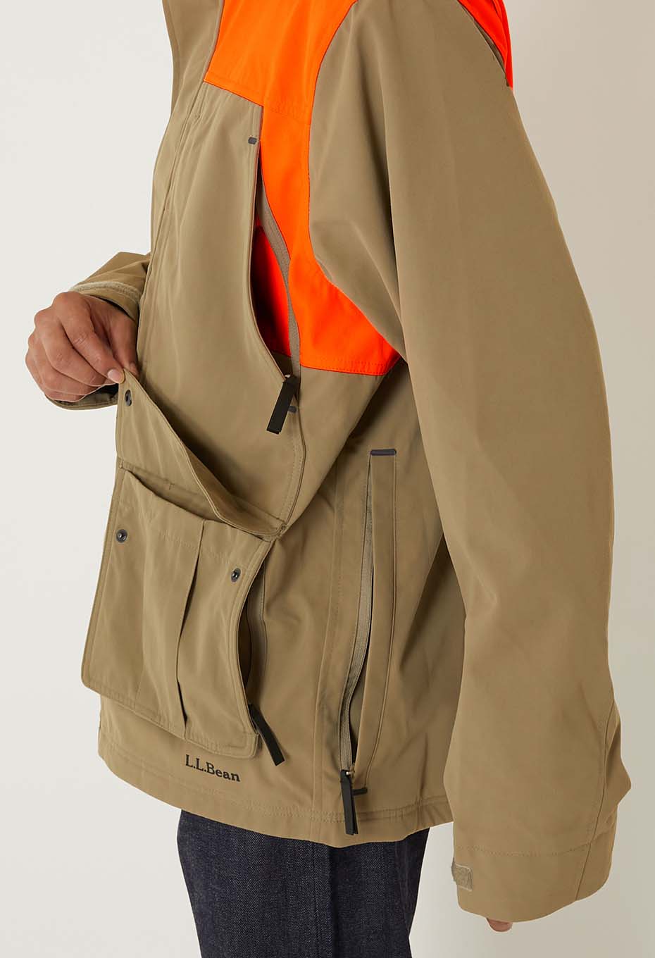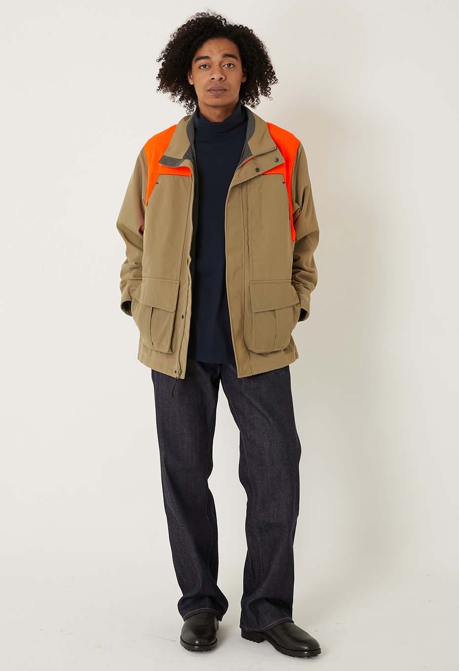 アップランドスタイルらしく、フロントポケット内にはジップ、背面にはジップ付きのゲームポケットを備えています。耐久性に優れたナイロン素材を使用しており、アウトドアウェアプロダクトを手掛けるブランドならではの一着です。