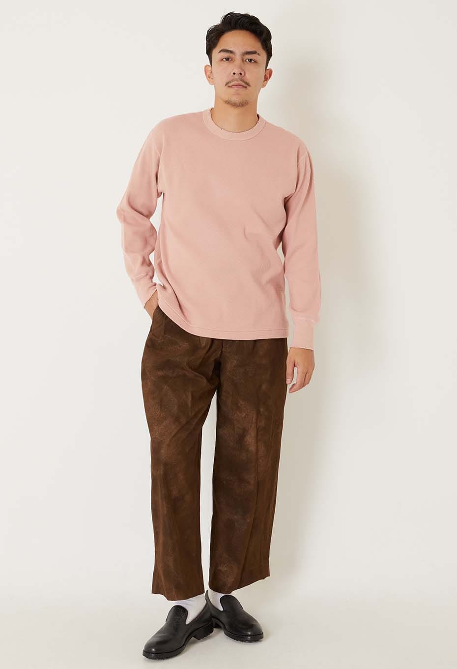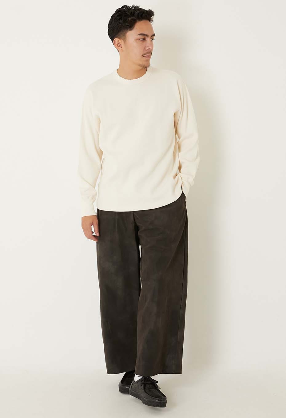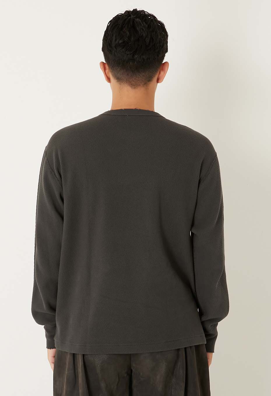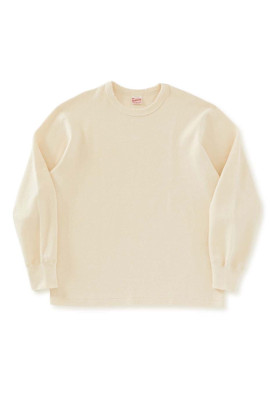 - 気温が氷点下になる北極での活動用にアメリカ海軍が開発した、3次元構造のハニカムサーマルです。立体的な編地により体温を逃がさず、高い吸水性により穏やかな天候でも屋内でも快適さを保ち続けることができます。今回はこのサーマルにダメージ加工を施し、一枚で着用しても様になるよう仕上げました。