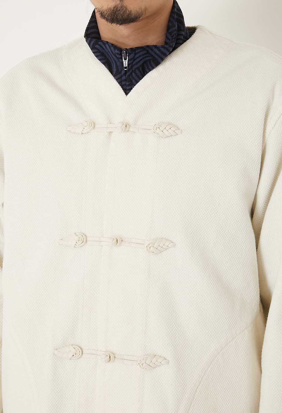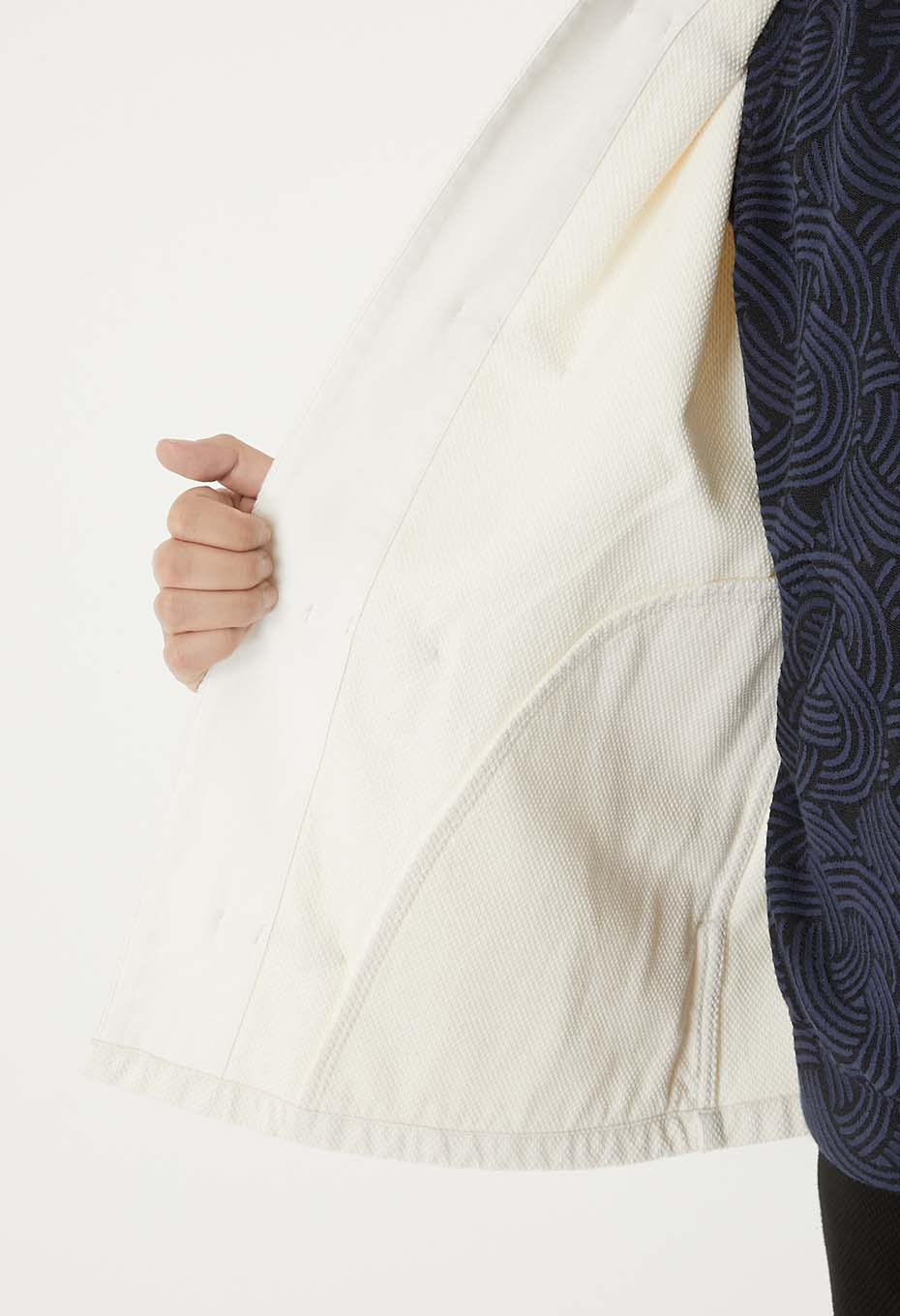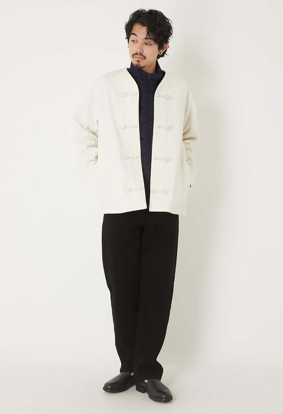 本来は道着のために作られた素材のため、頑丈で柔らかく、シルエットに丸みをもたらします。ブランドの数ある刺し子シリーズの中でも、最も代表的な刺し子素材です。