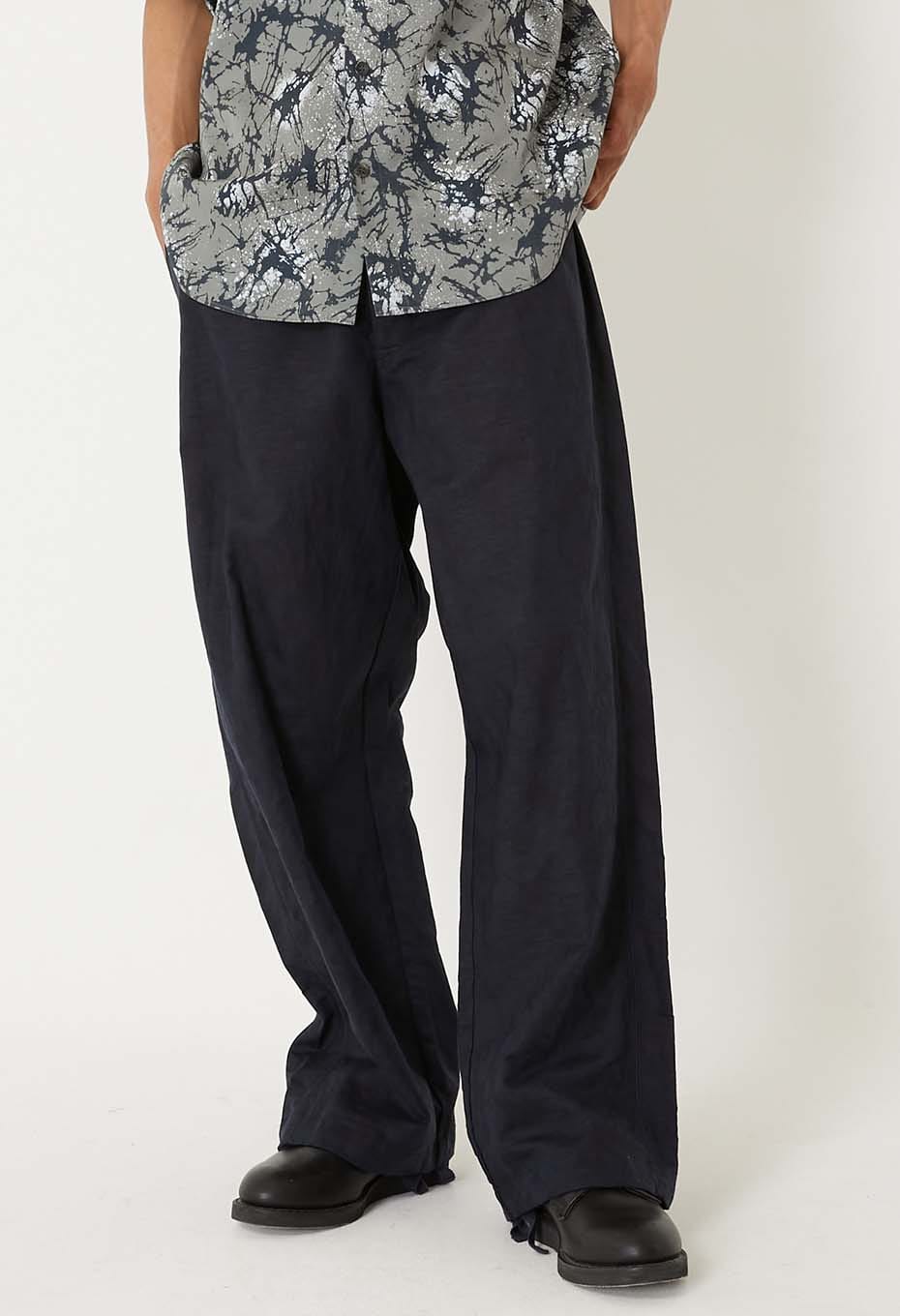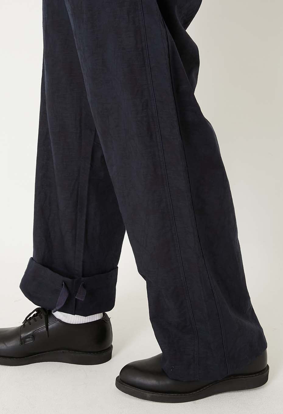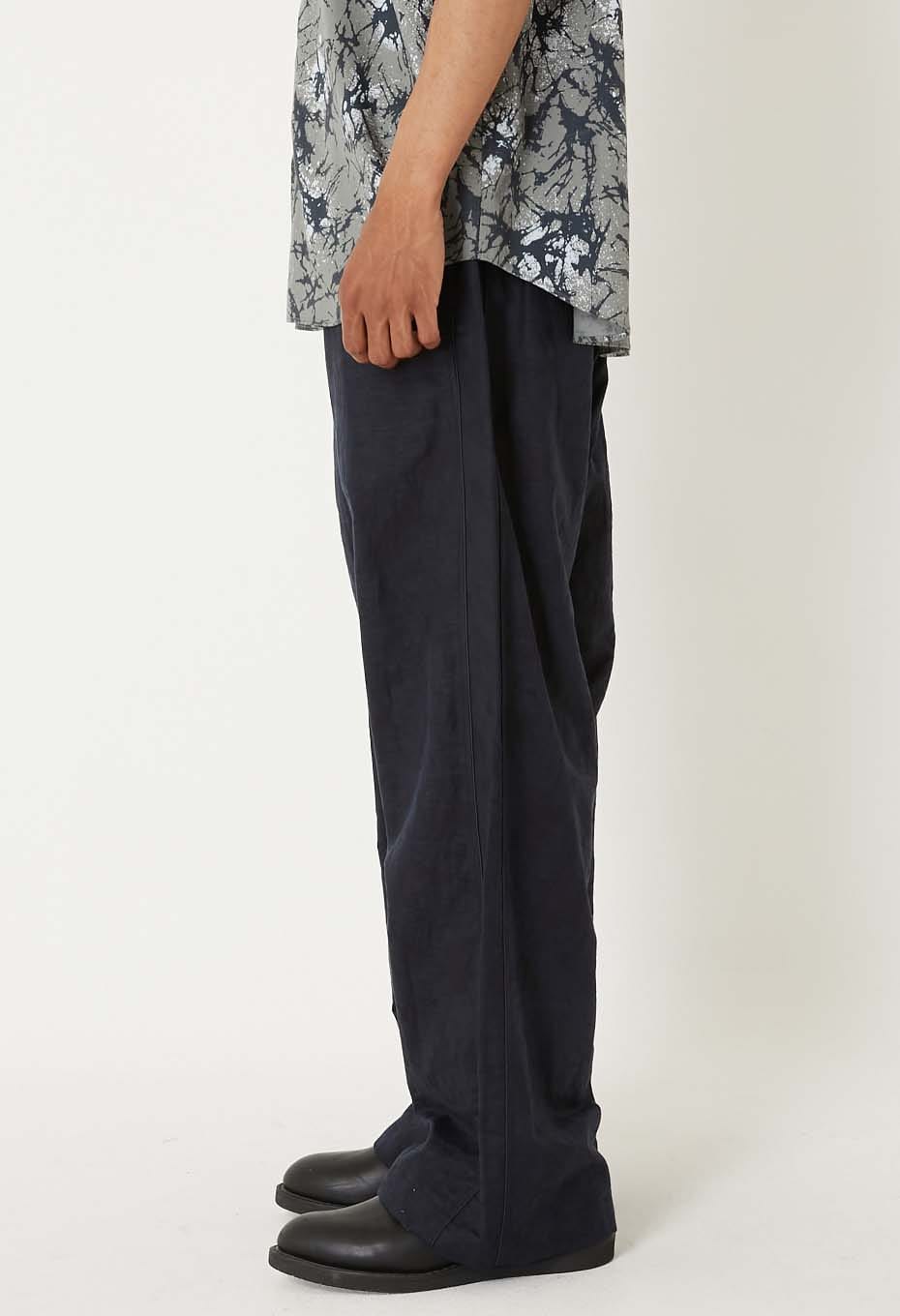 サイドラインに施したパイピングコードの、シックな表情をお楽しみいただけます。リラックス感あるスタイルですので、同素材のプルオーバーシャツとセットアップでのご着用もお勧めです。