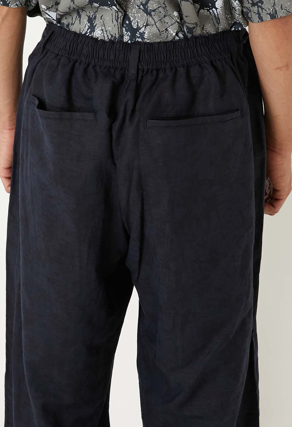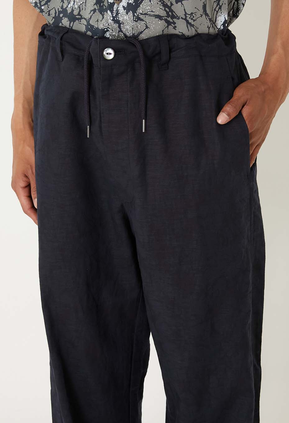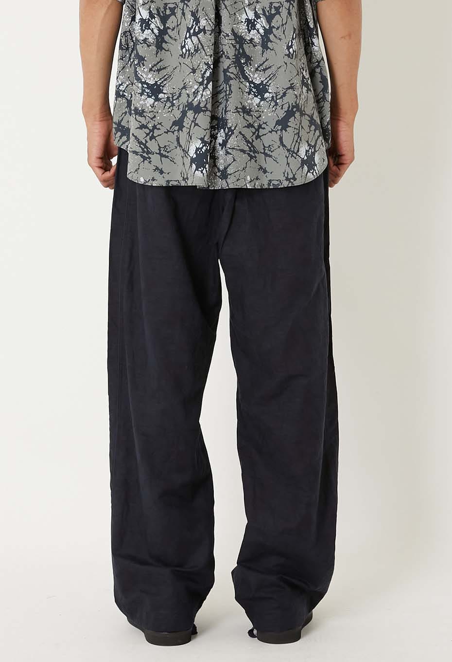 サイドラインに施したパイピングコードの、シックな表情をお楽しみいただけます。リラックス感あるスタイルですので、同素材のプルオーバーシャツとセットアップでのご着用もお勧めです。