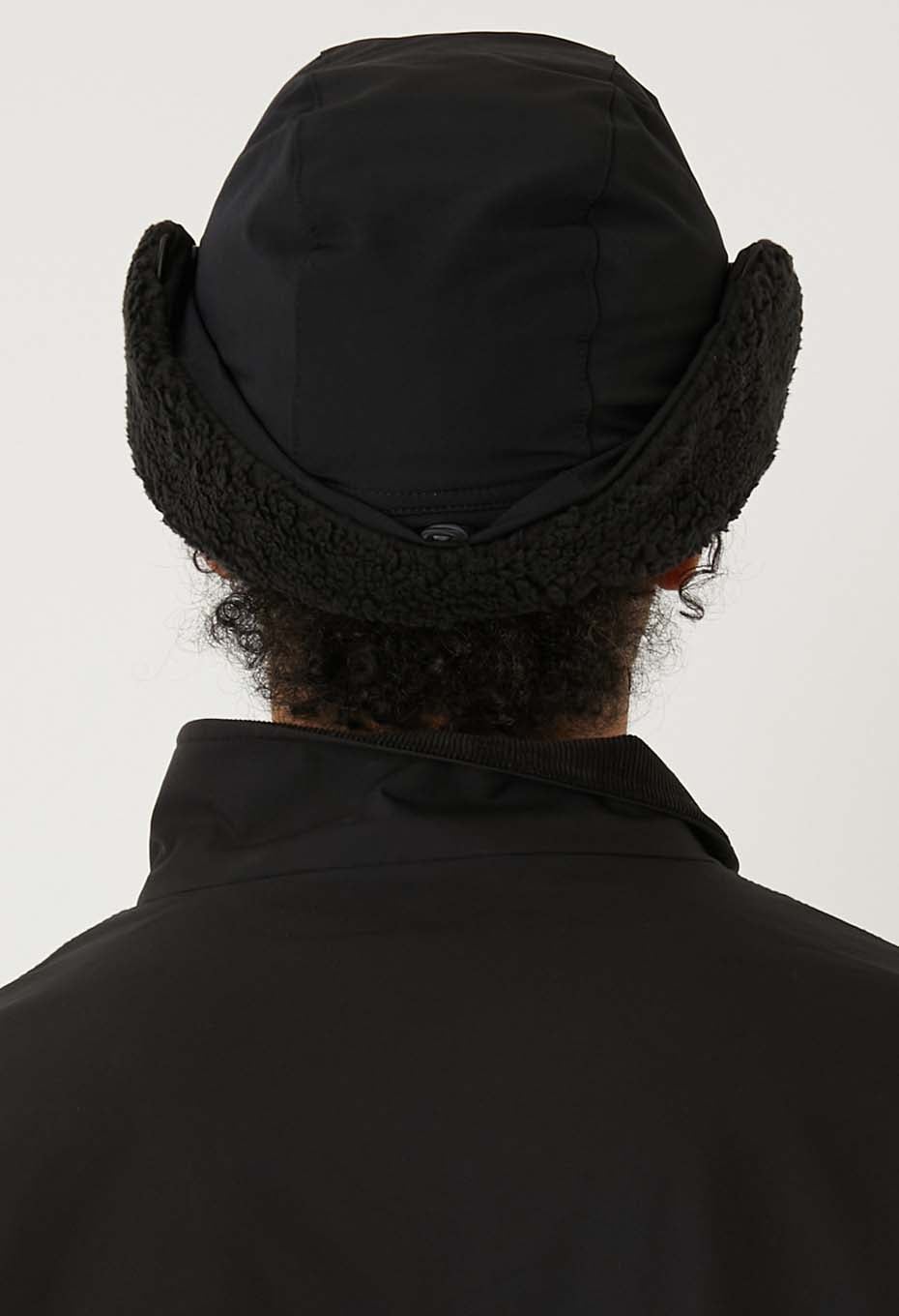 GORE-TEX(R)を搭載したキャップの内側にはシェルパフリースがライニングされており、保温性に優れています。イヤーフラップはスナップボタンで開閉可能です。