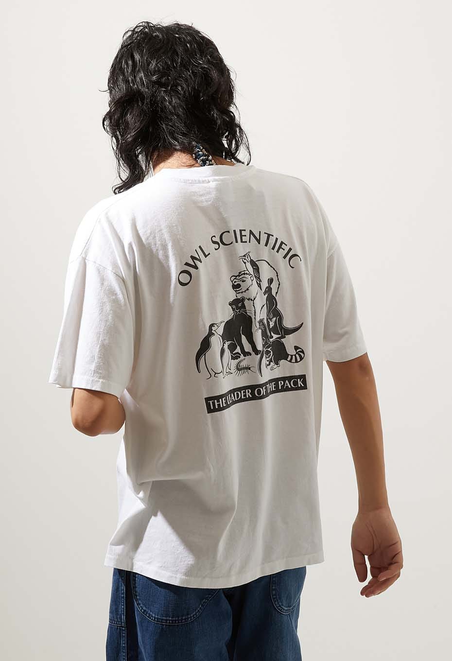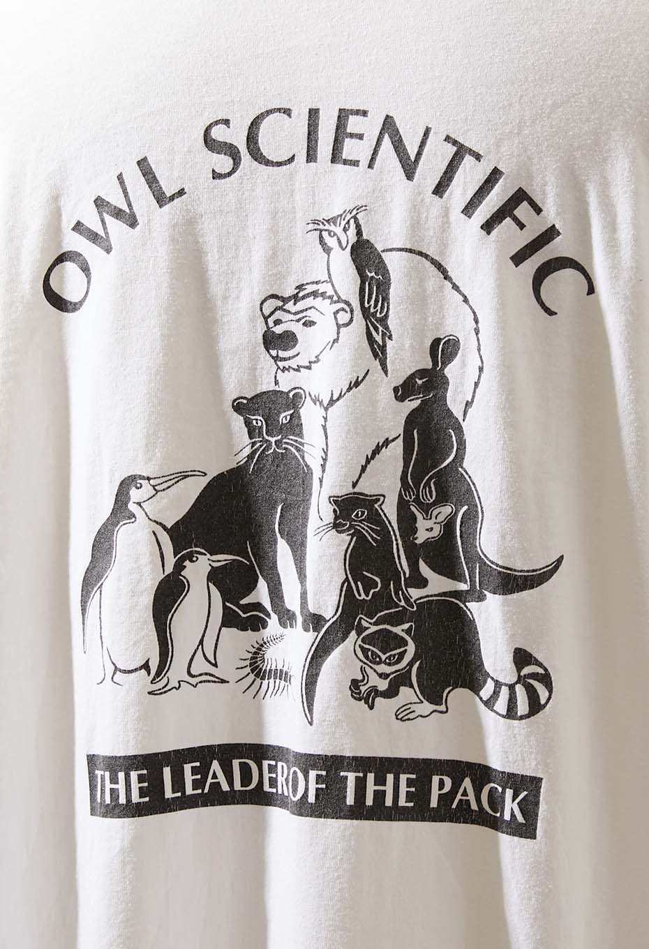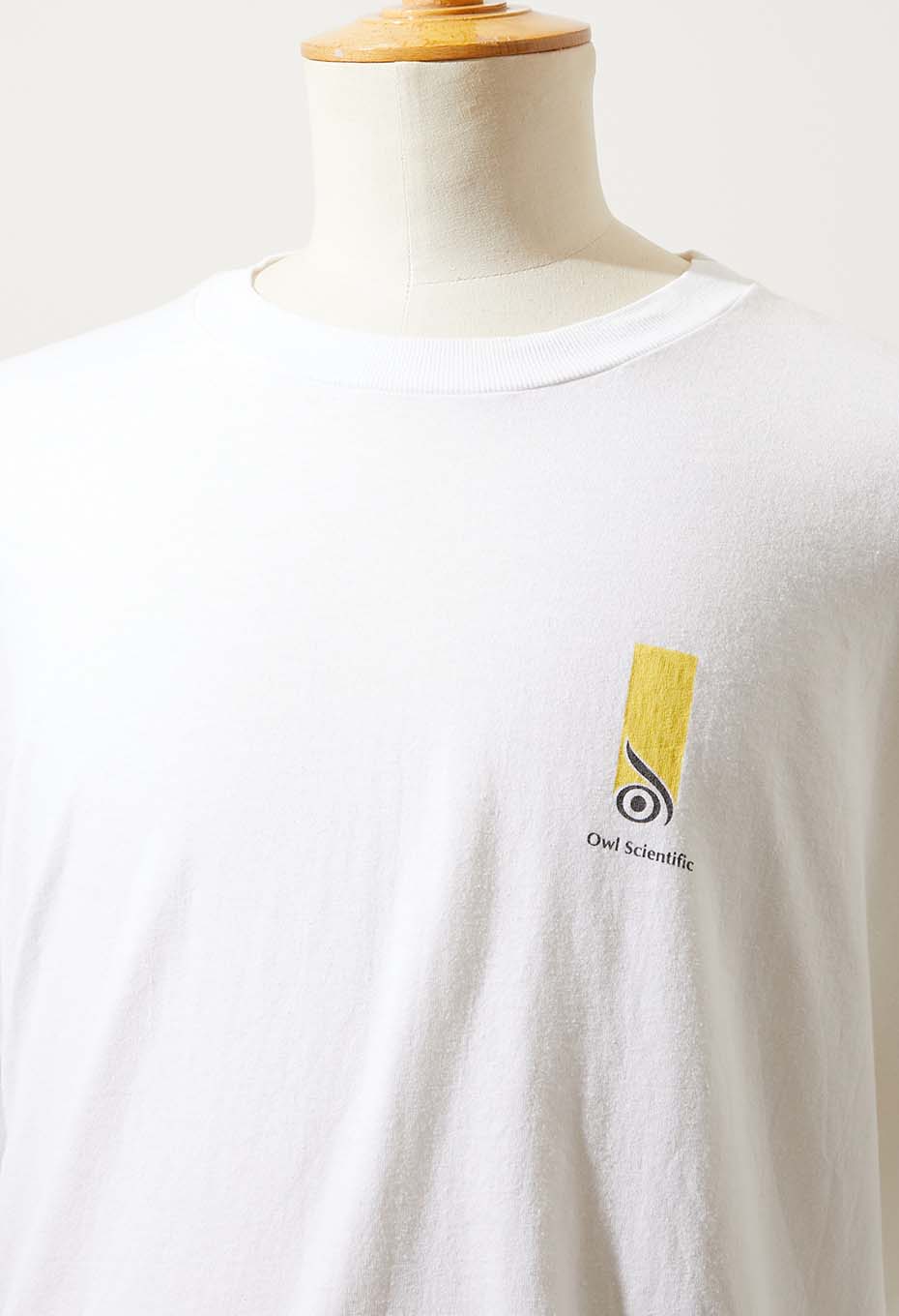 - OWL SCIENTIFICのプリントTシャツです。ケンブリッジ大学で開発されたコンピューター用ソフトウェアシステムチームのラボTシャツと思われる一着。名前の通りフクロウの目をイメージした胸元のデザインに、背面はフクロウ含めた動物が描かれています。