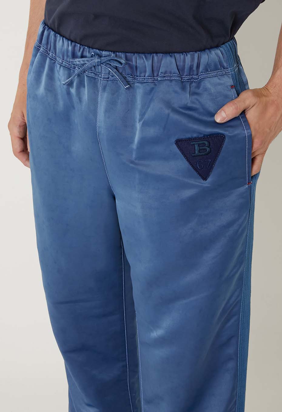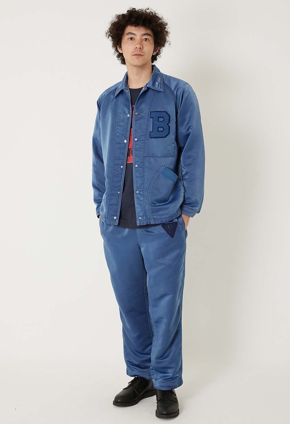 ナイロン地にインディゴ染めを施した、独特な表情のトラックパンツです。