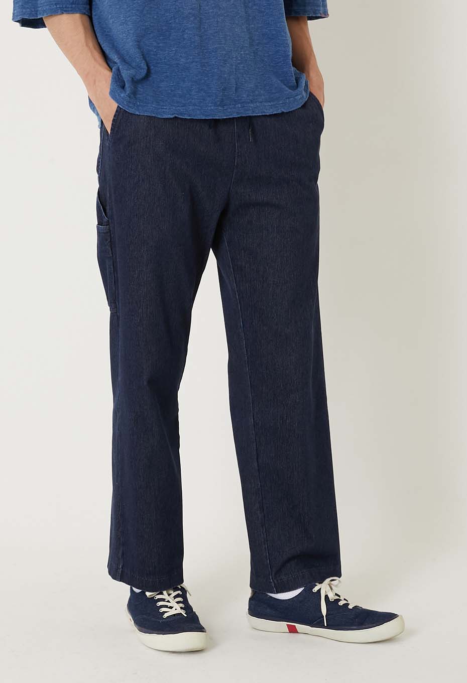 デニムライクなカットソー生地で仕立てた、ベーシックなペインターパンツです。