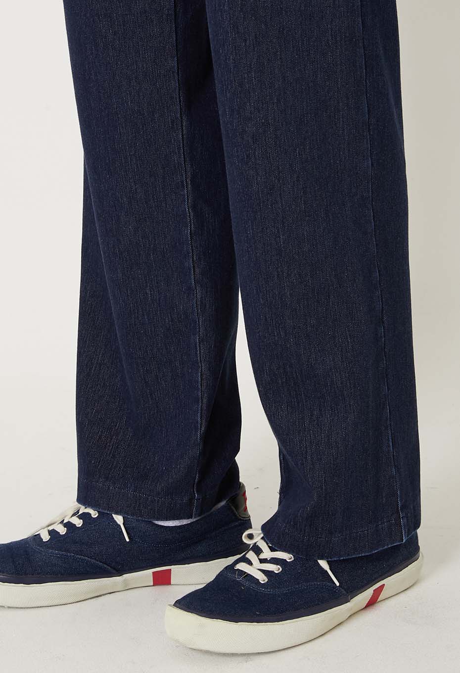 インド産のロープ染色を施したインディゴ糸を使用した、布帛のような4WAYストレッチのデニムニット素材を採用しています。ロープ染色のため、本物のデニムのような美しい経年変化をお楽しみいただけます。