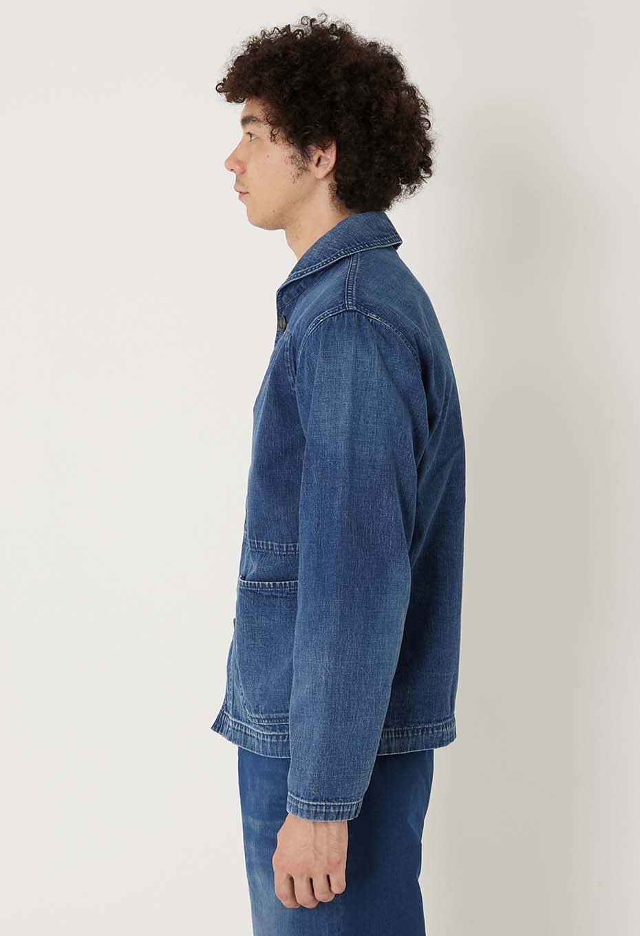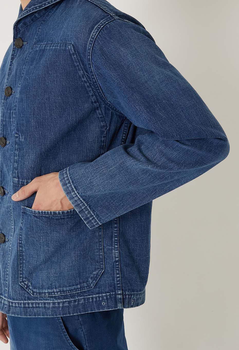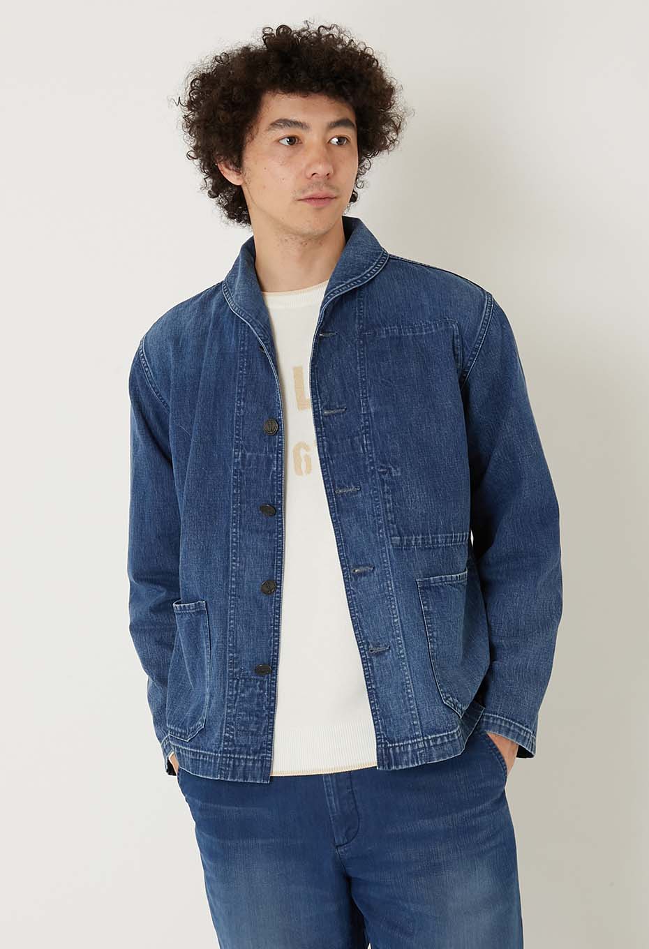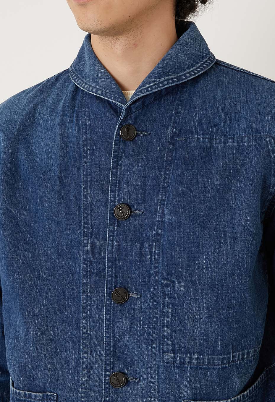 セルビッジライトデニム ヴィンテージウォッシュ USN ショールカラーカバーオール
