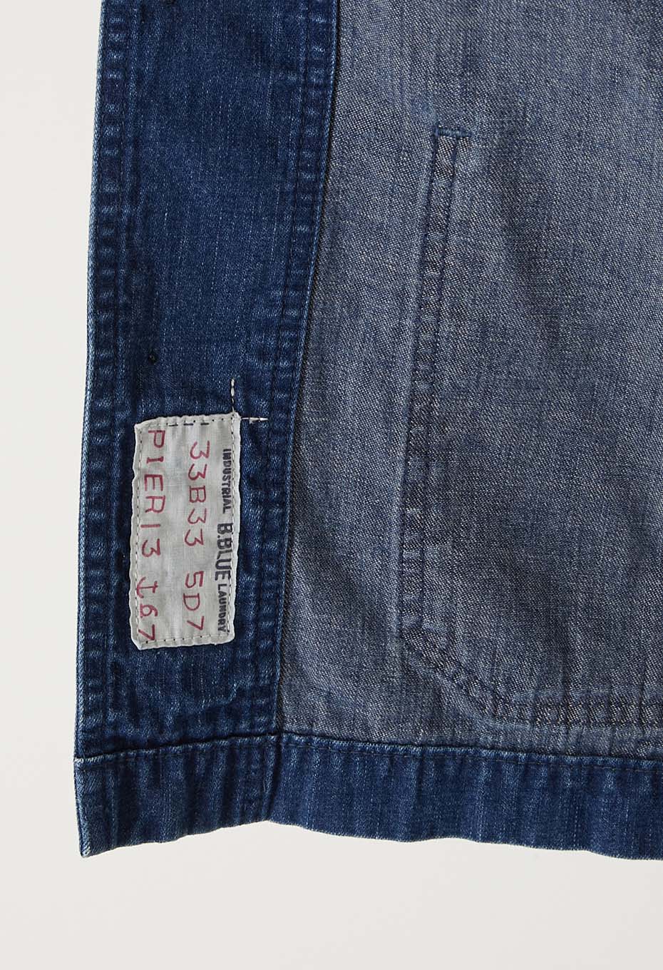 9ozのBLUE BLUEオリジナルデニムを使用しています。第二次世界大戦以前より稼働している紡績工場で作られた原綿の素材感と、当時の紡績機械の癖を活かしたヴィンテージライクな質感の別注糸をタテ糸に使用しています。ヨコ糸には、原料にUSコットンを用いたナチュラルなムラ糸を採用。ヴィンテージの原綿の色を再現するため、スレン染料で極淡色のベージュに染め上げています。着込んだ際の味わい深い色落ちや経年変化をお楽しみいただけます。