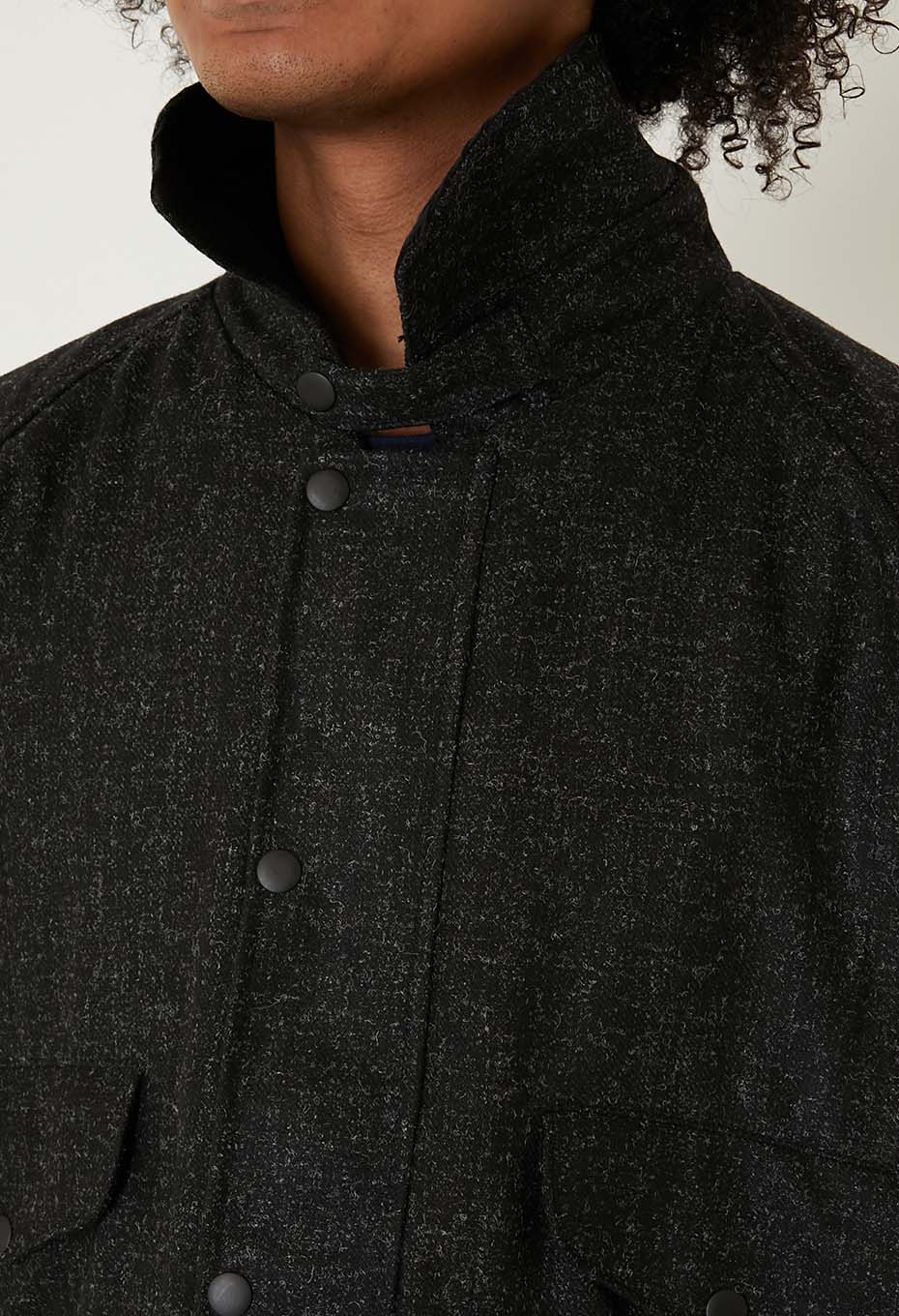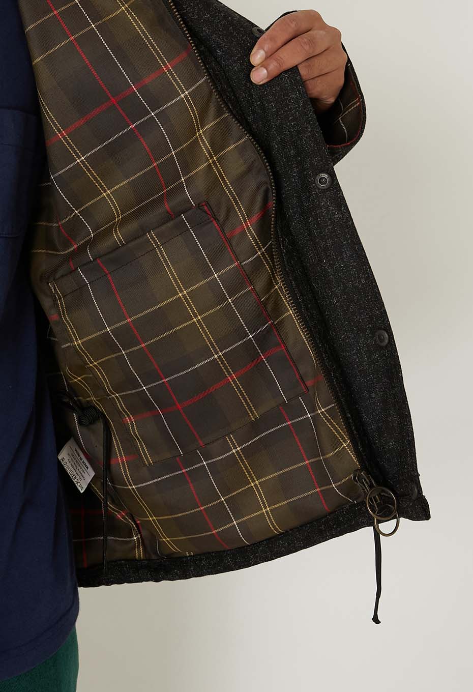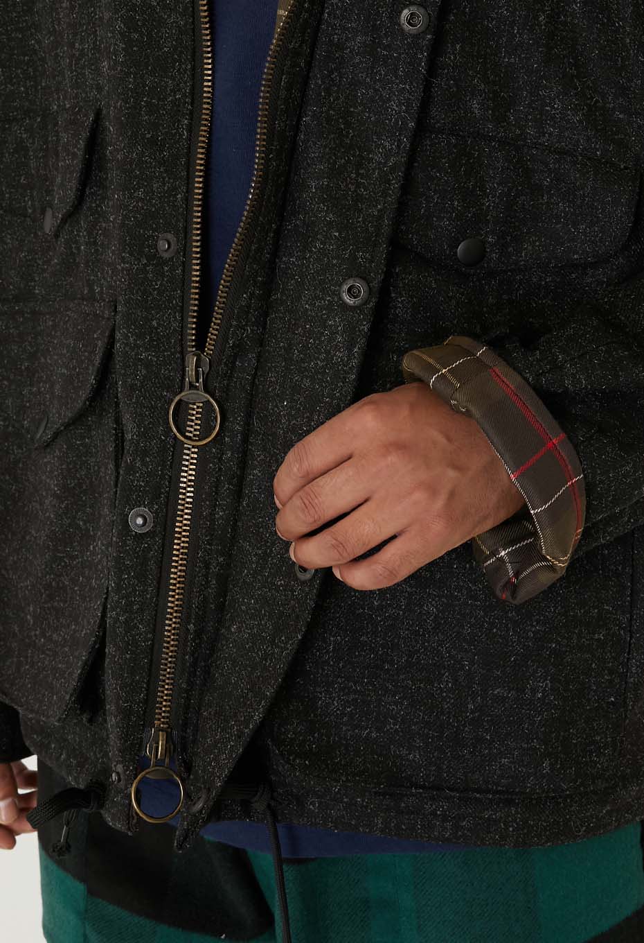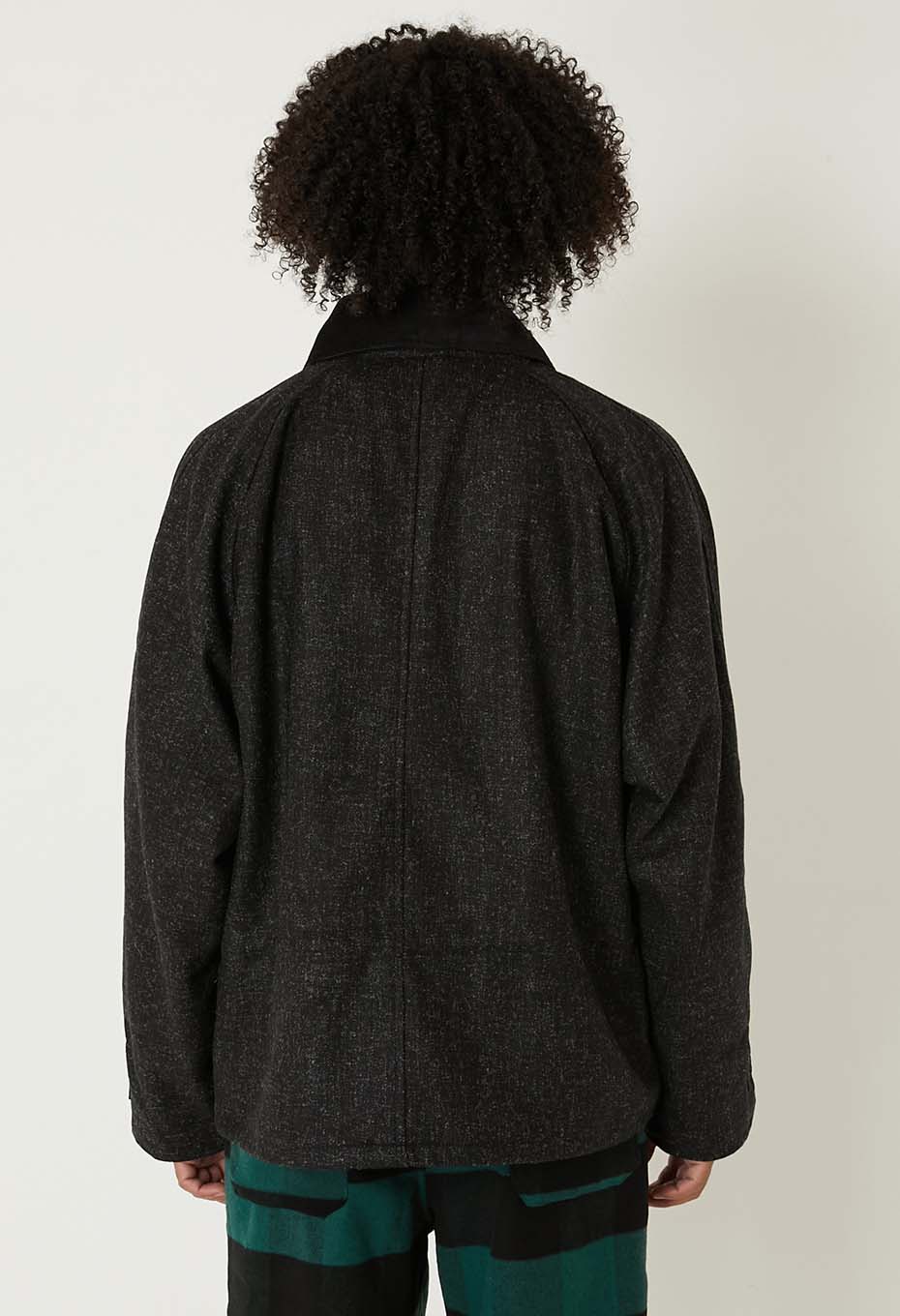 - クラシックな佇まいが魅力のフィールドジャケットです。ポリエステルとウールを混合した杢感のあるツイード素材を使用し、襟は秋冬のスタイリングにぴったりなコーデュロイ素材をあしらいました。身幅と袖はゆったりとしたシルエットで、着丈は短めに設計されています。裾のドローコードでシルエットや着丈の調整ができ、背面のドローコードで身幅の調整も可能です。シャーリングによってシルエットの変化を楽しめます。裏地のタータンチェック柄がマニッシュな印象を演出します。