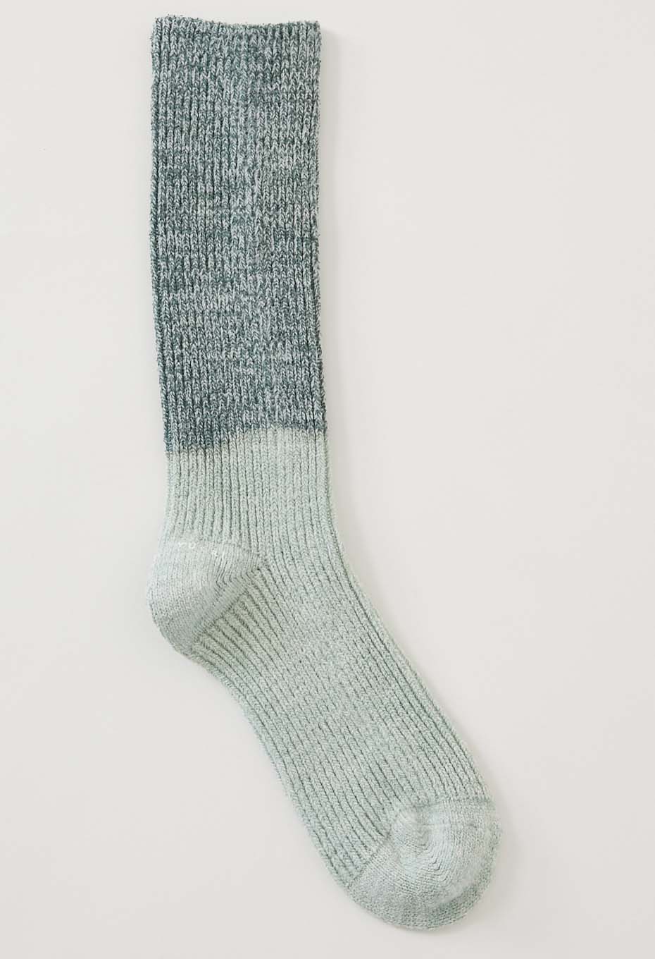綿糸のみを染めることで、リラクシーで品の良い仕上がりにまとまっています。特殊なリブを使用しており、ワンサイズで24.0~29.0cmの足サイズに対応可能です。