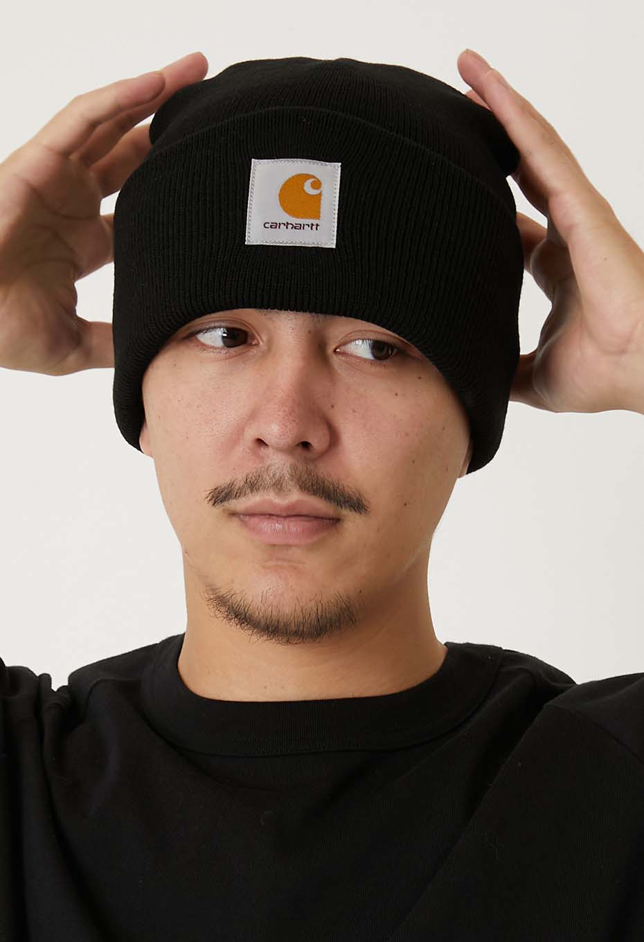 - ブランドの定番アイテムとして外せないアクリルウォッチキャップです。フロントには、象徴的な「Carhartt」のネームタグがあしらわれています。カジュアルなワークスタイルはもちろん、上品なドレスアップスタイルの“外し”アイテムとしても活躍する、汎用性の高い一点です。