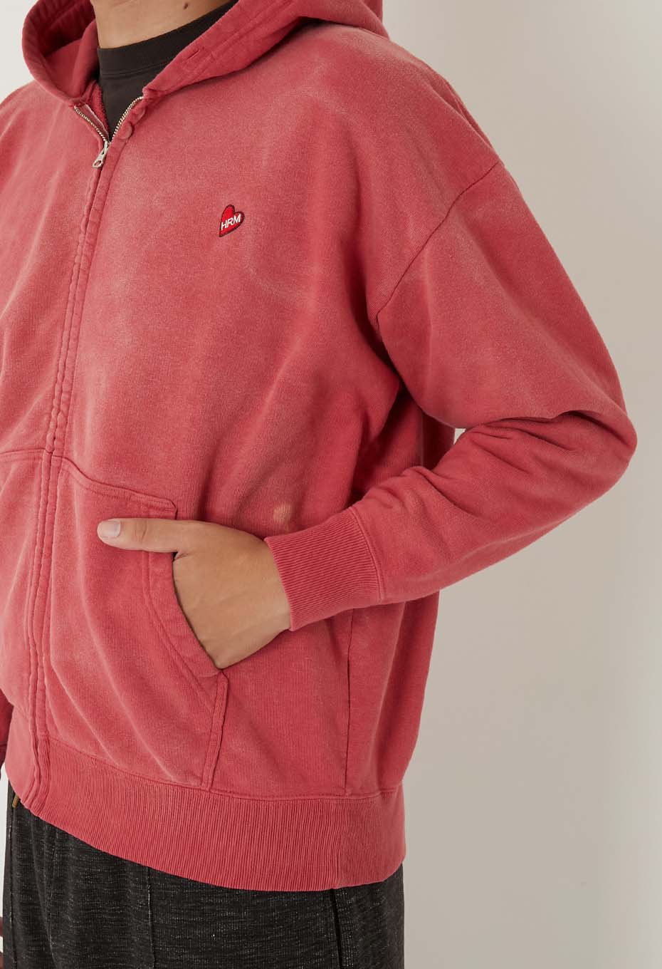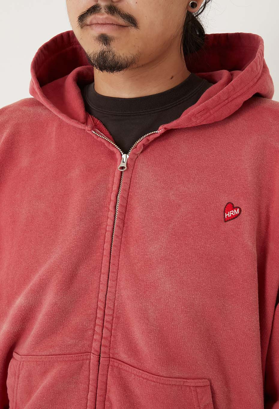 ハートインワッペン ヴィンテージウォッシュジップパーカ