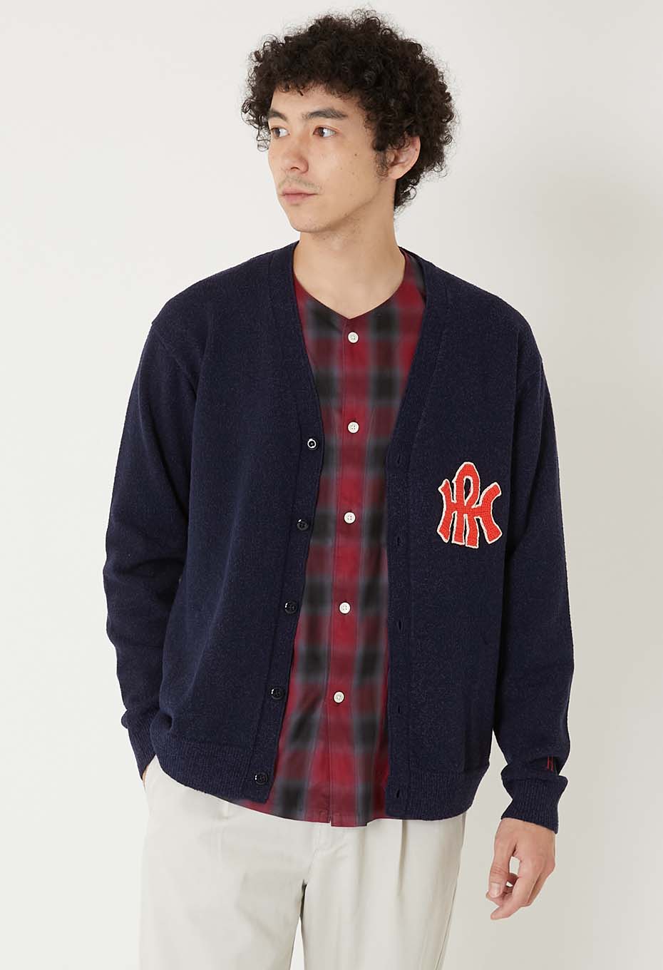 ループヤーンスプリングニットLOGOカーディガン