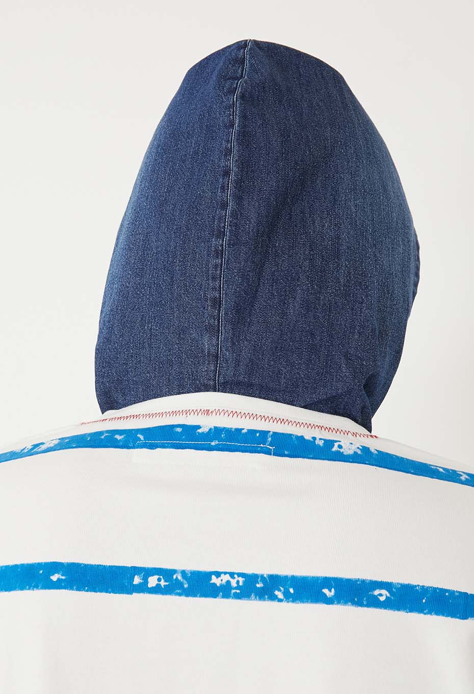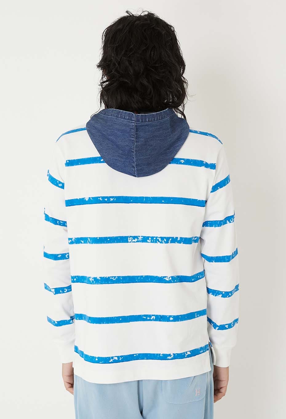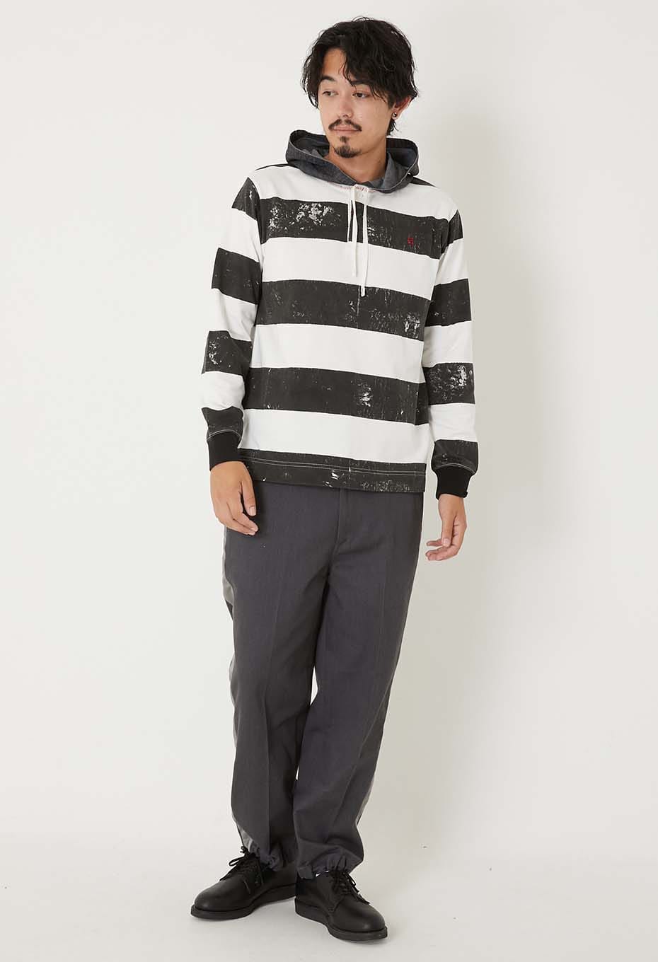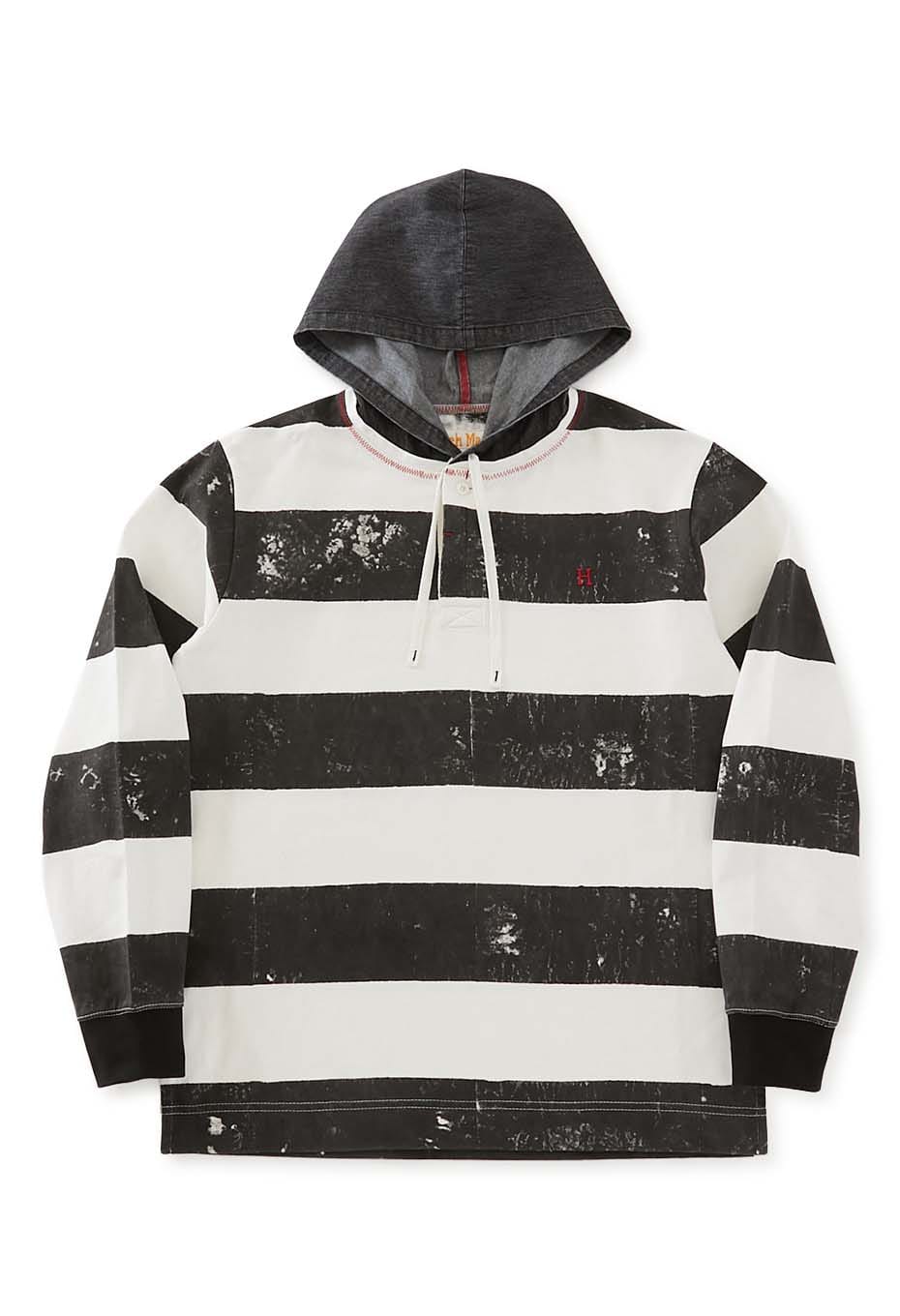 レイヤードしたようなデニムのフードと胸に施したH刺しゅうがポイントで、ゆとりある着こなしをお楽しみいただけます。