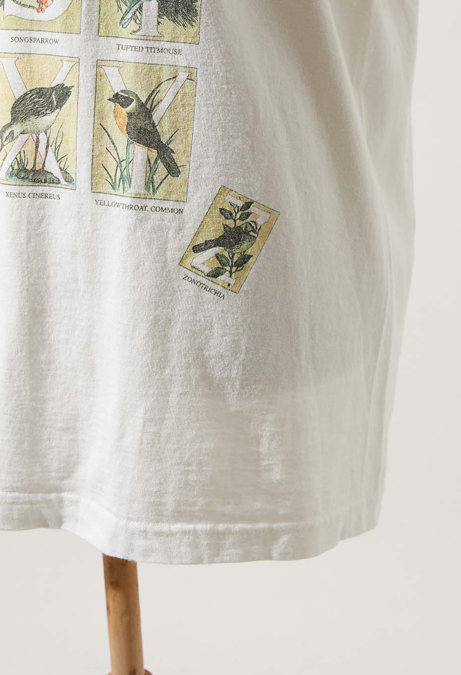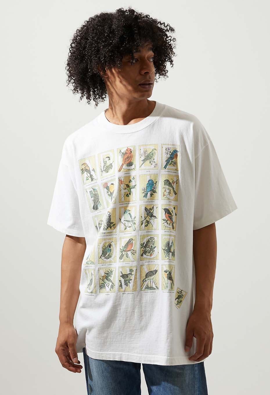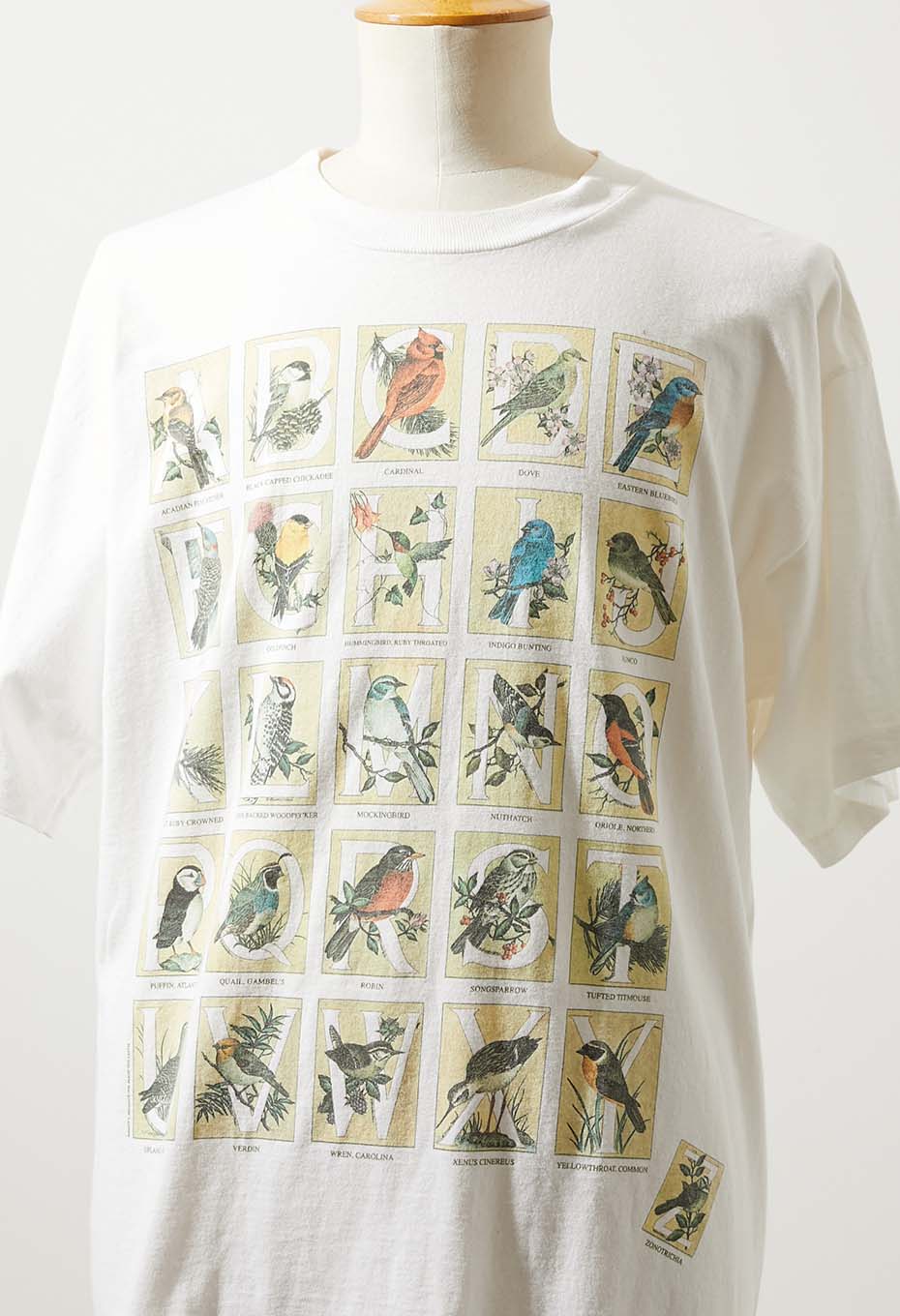 - 前面に大きく施されたプリントが魅力のTシャツ。各アルファベットが頭文字の鳥の名前をプリントしたアイテムです。縦横5×5ラインで最後の「Z」のみ外れた、ユーモアのあるデザインです。鳥好きの方はもちろん、思わず笑ってしまう面白いデザインがお好きな方にもおすすめのスペシャルな一枚です。
