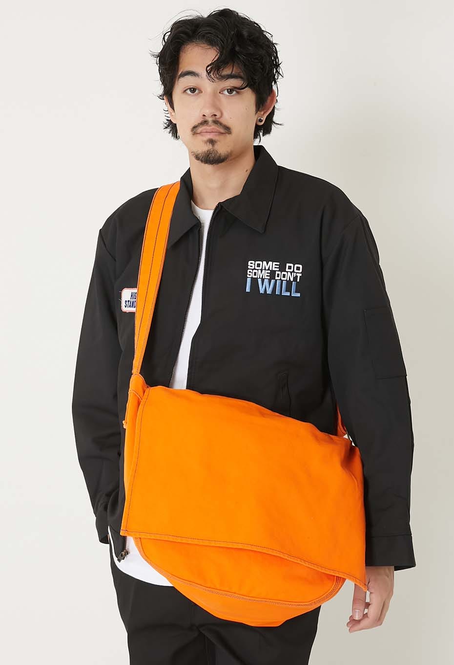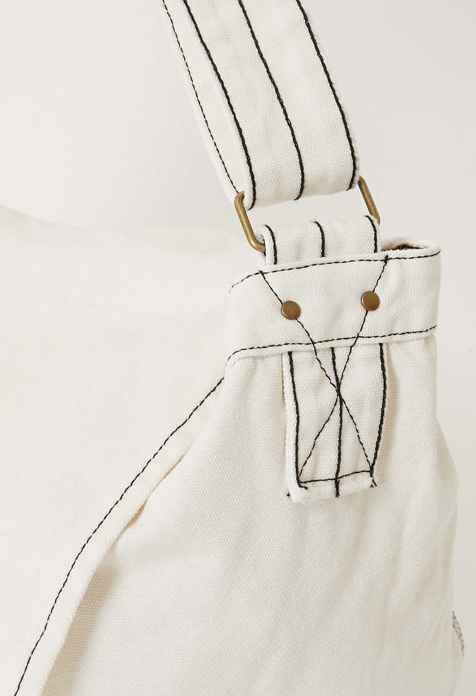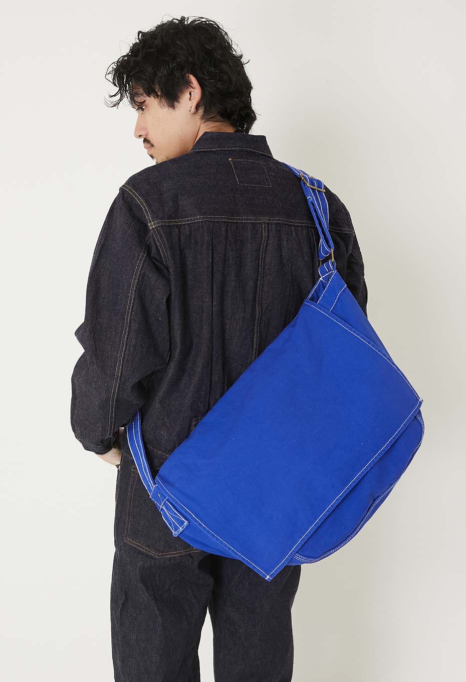 ボディとステッチの配色やチェーンステッチなど、細部のディテールが特徴のニュースペーパーバッグです。