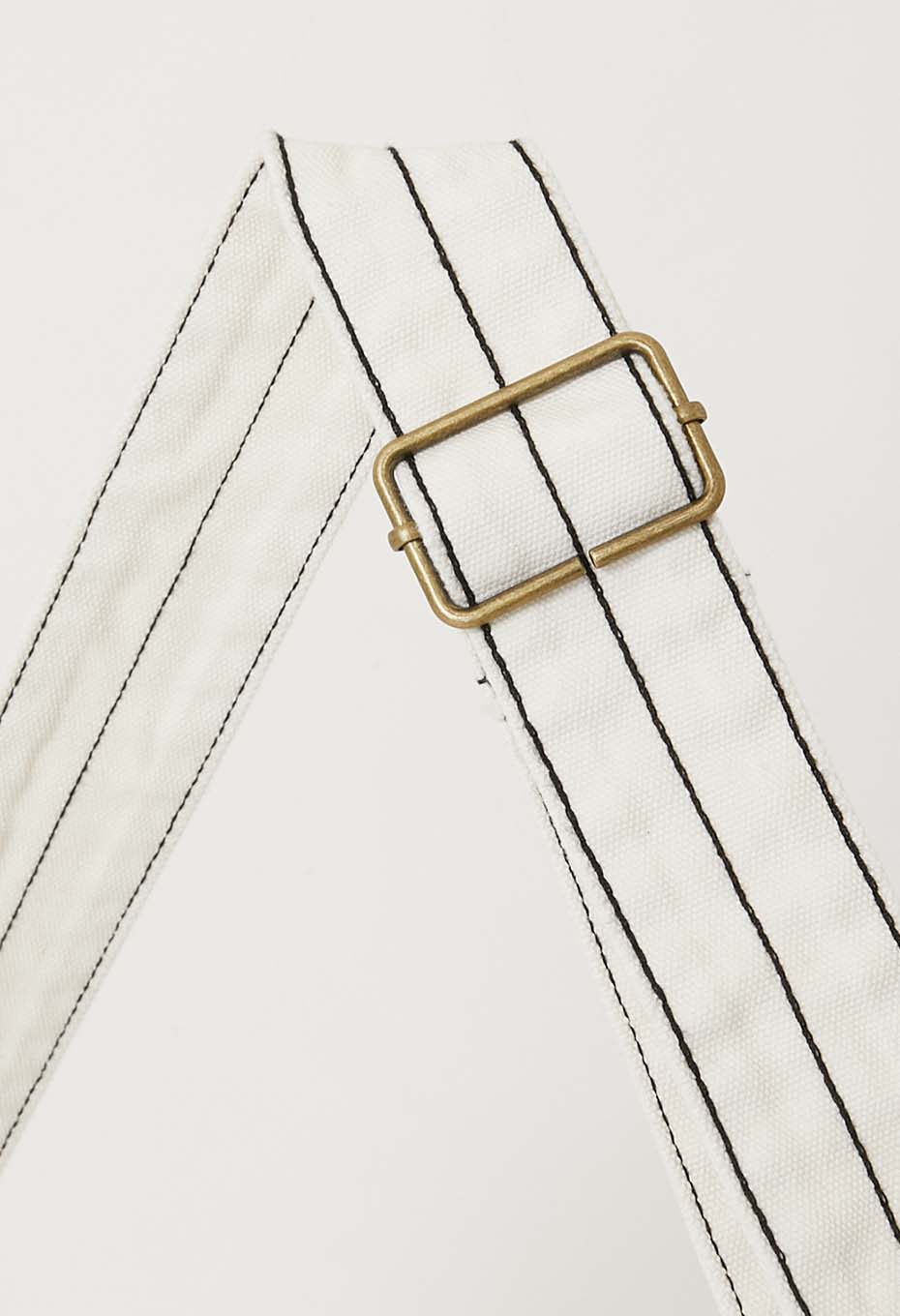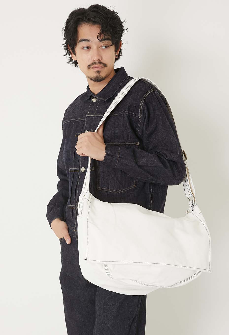 通常のニュースペーパーバッグは横幅広めのサイズが一般的ですが、使いやすい寸法で仕上げています。ショルダーストラップの長さは調整可能です。