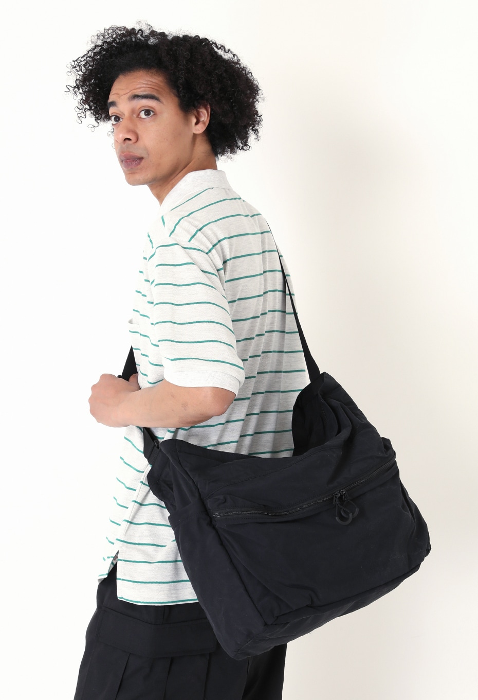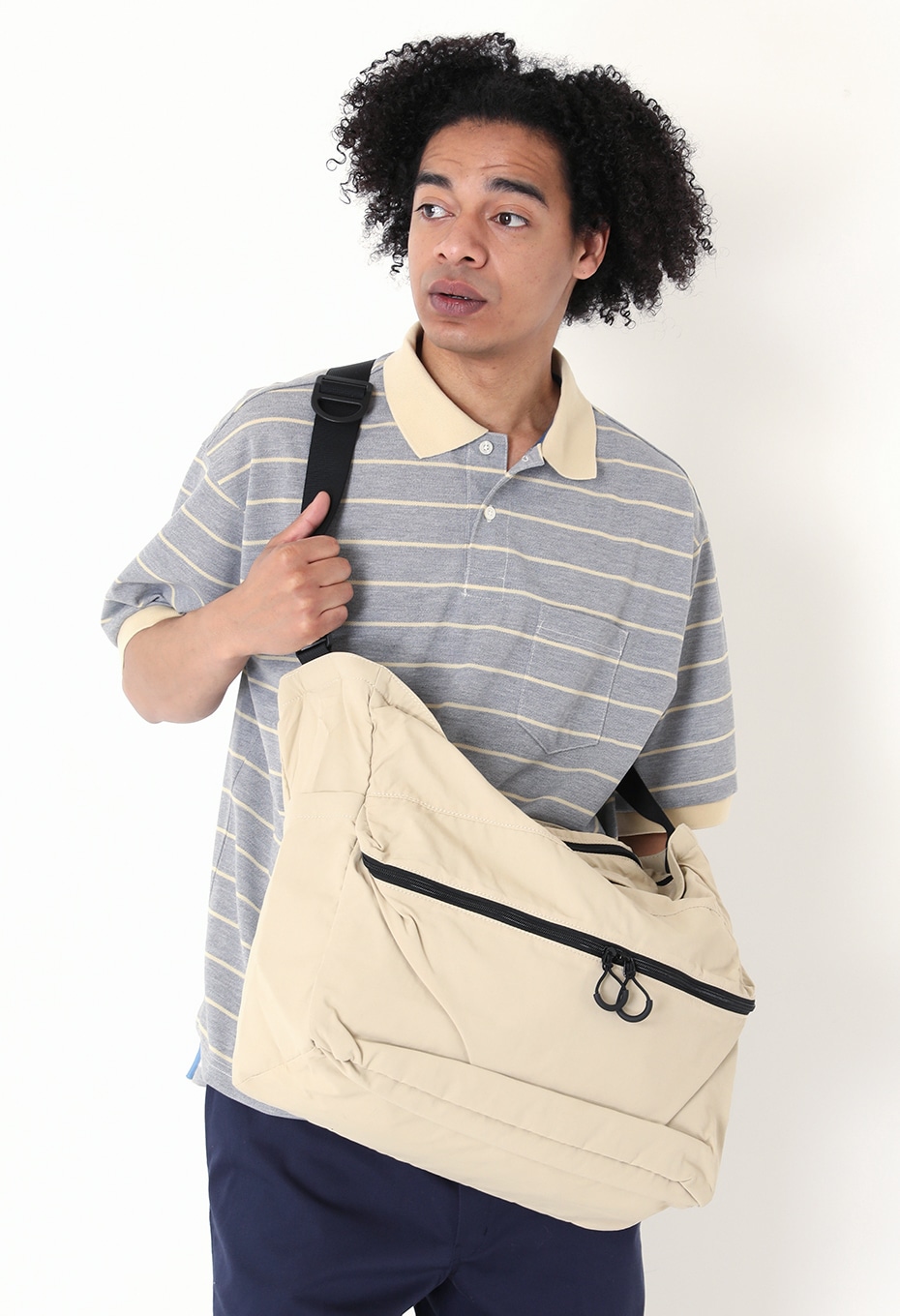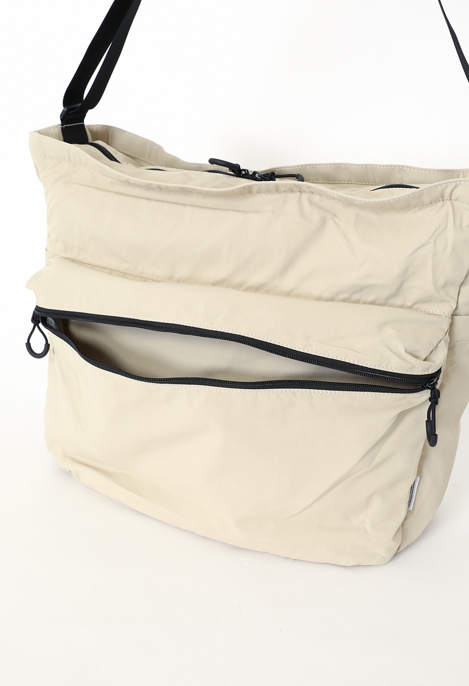 車のエアバッグと同じ素材を採用しているため、抜群の耐久性を誇ります。容量はたっぷり大きめで、外側には広めのマチ付きジップポケットも備えているため、荷物が多い方や収納を分けたい方にお勧めです。柔らかな風合いは体になじみやすく、ナイロンとは異なるマットな質感もお楽しみいただけます。