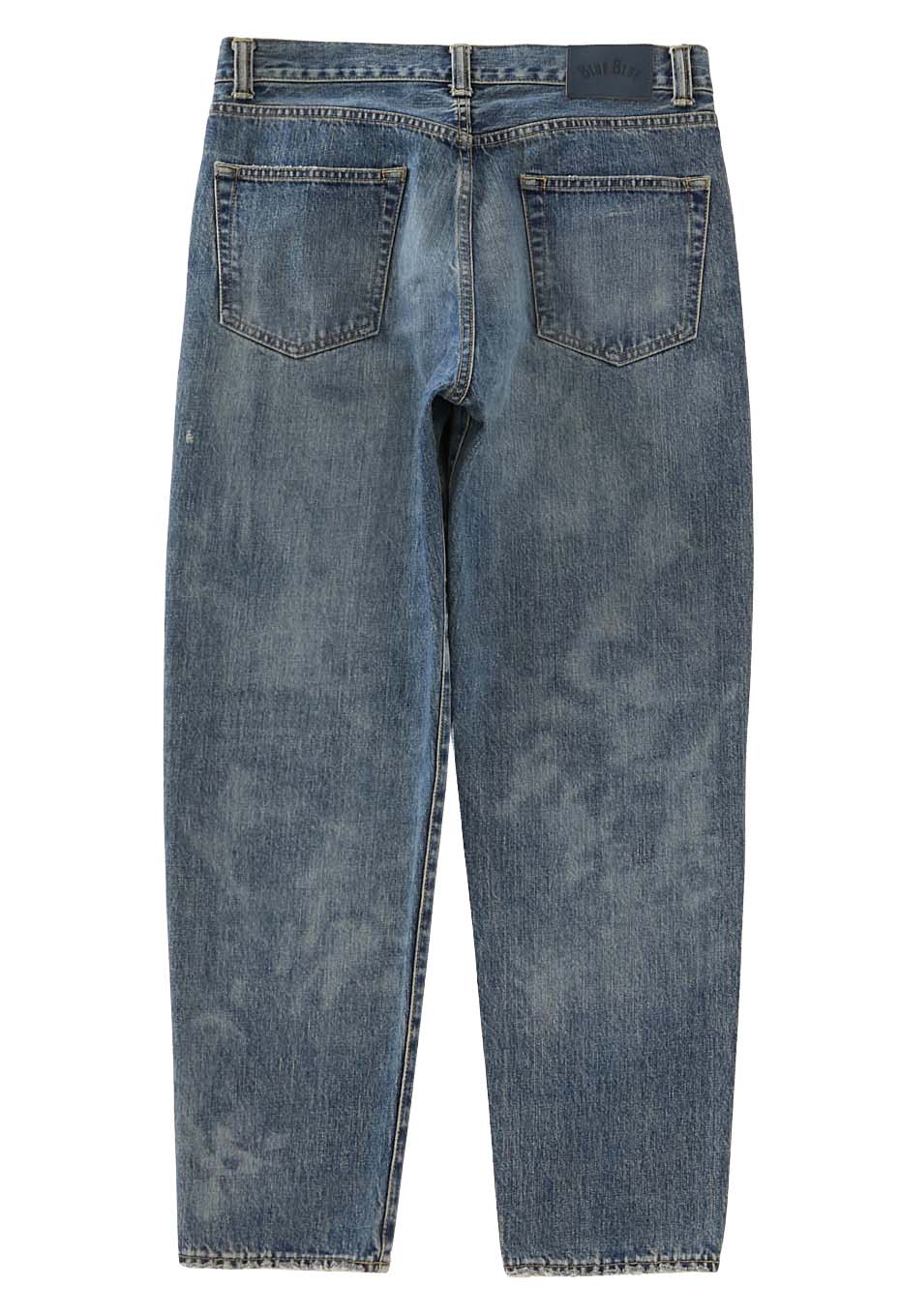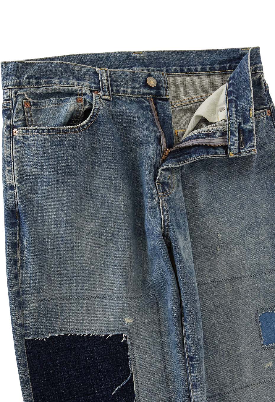 ワタリに十分なゆとりを持たせることでテーパードを引き立てています。スリムフィットジーンズが苦手な方でも、抵抗なくご着用いただけるよう、適度なゆとりを持たせています。スニーカーやドレスシューズとの相性も抜群です。オリジナルのフロージャカードデニム生地をメインに当布リメイク後、色の濃淡が際立つUSED加工を施しました。ヴィンテージと見紛うような仕上がりです。