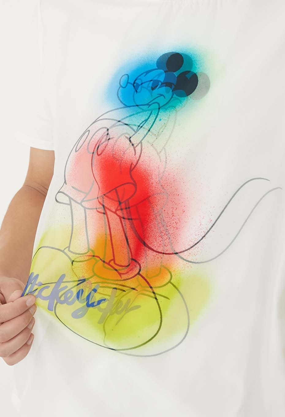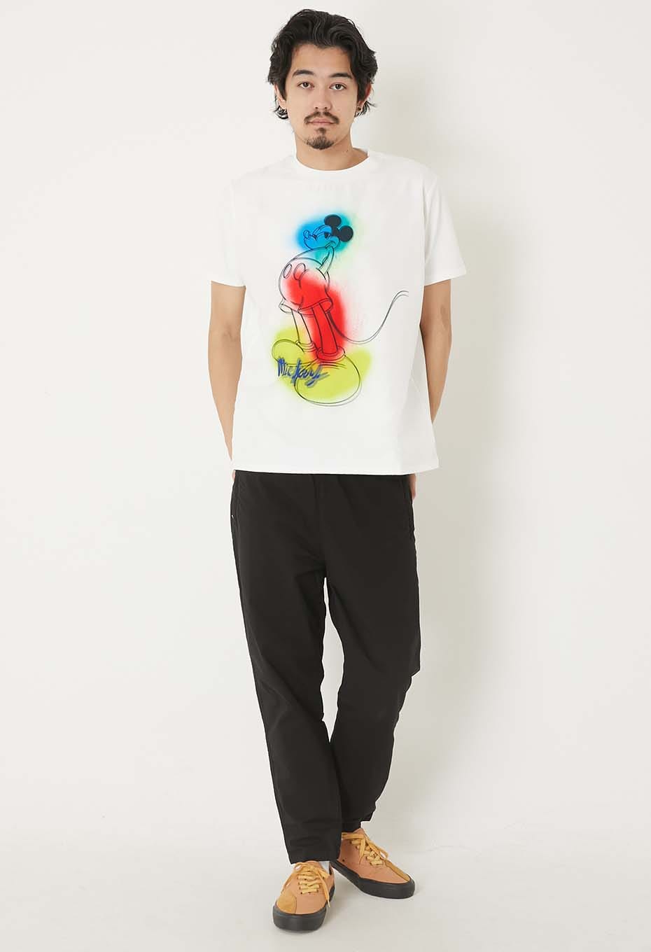 - 大胆にデフォルメされたポーズにスプレーアートを取り入れた、ストリート感溢れるミッキーのTシャツです。オリジナルアートを3Dで表現する特殊な技法で仕上げています。素材は着心地が良くシワになりにくいオリジナル生地を使用しています。前身頃がオーガンジーとの二重構造で立体的にグラフィックを表現しています。ボディ前面は透明な生地と二重になっており、視覚的に揺らぎと立体感を与えます。