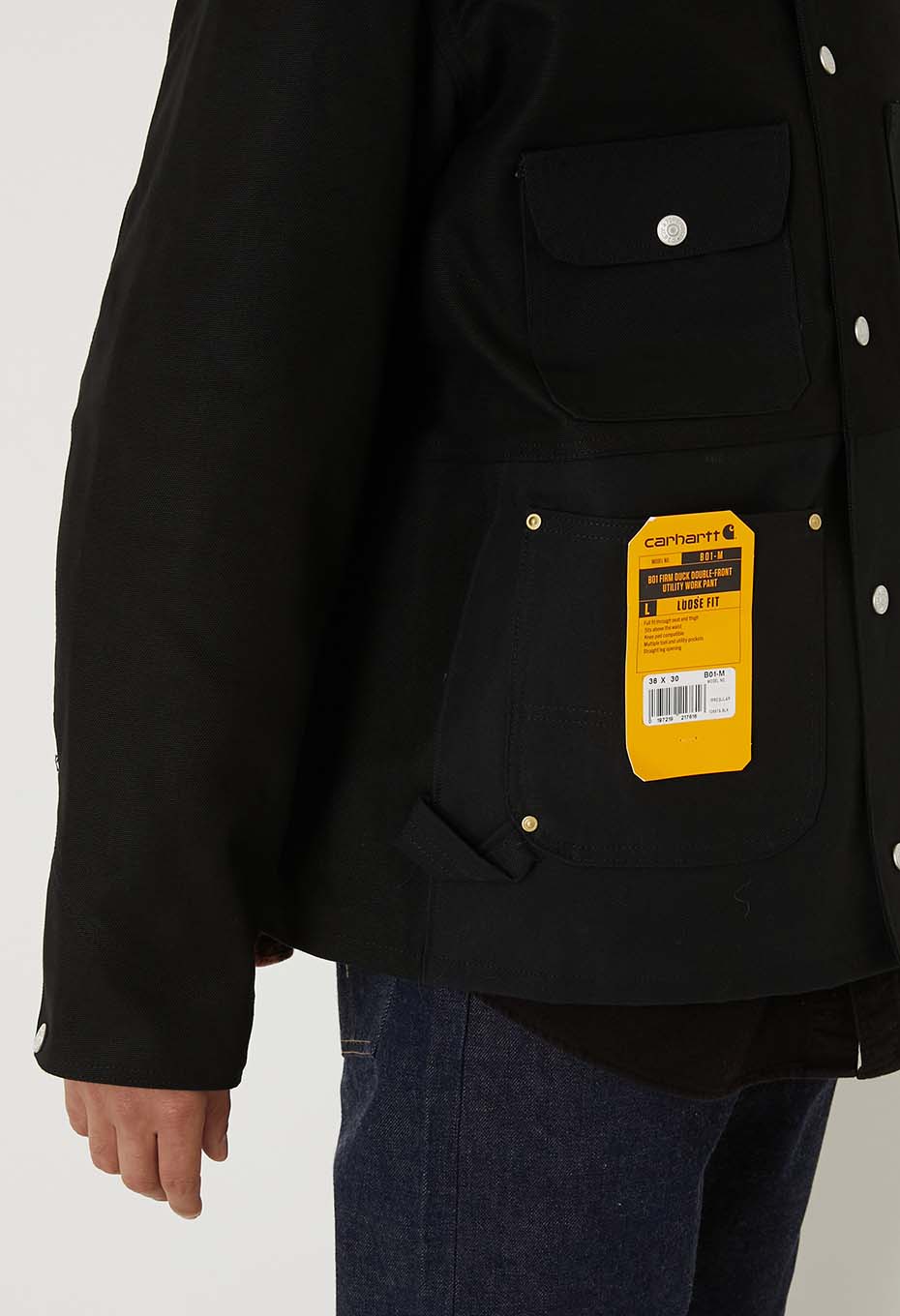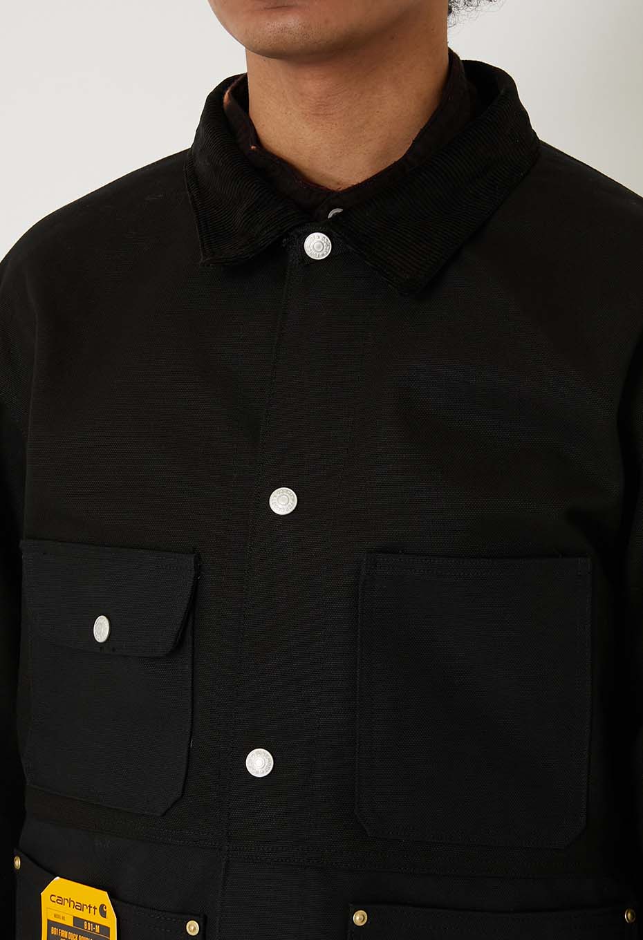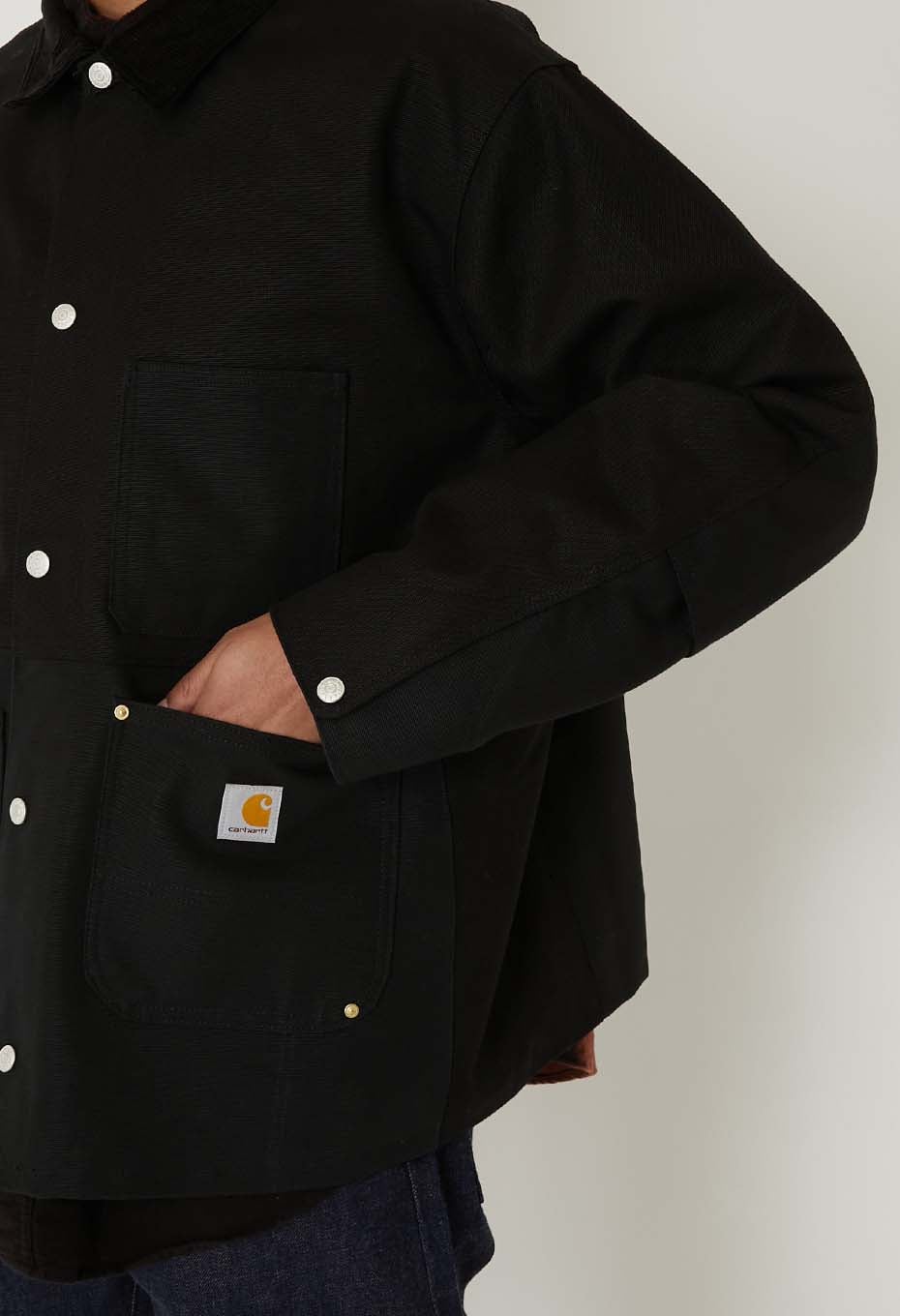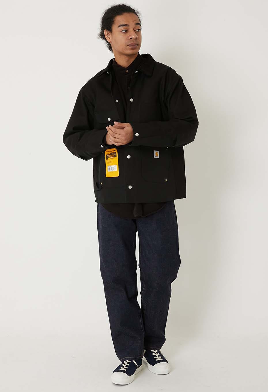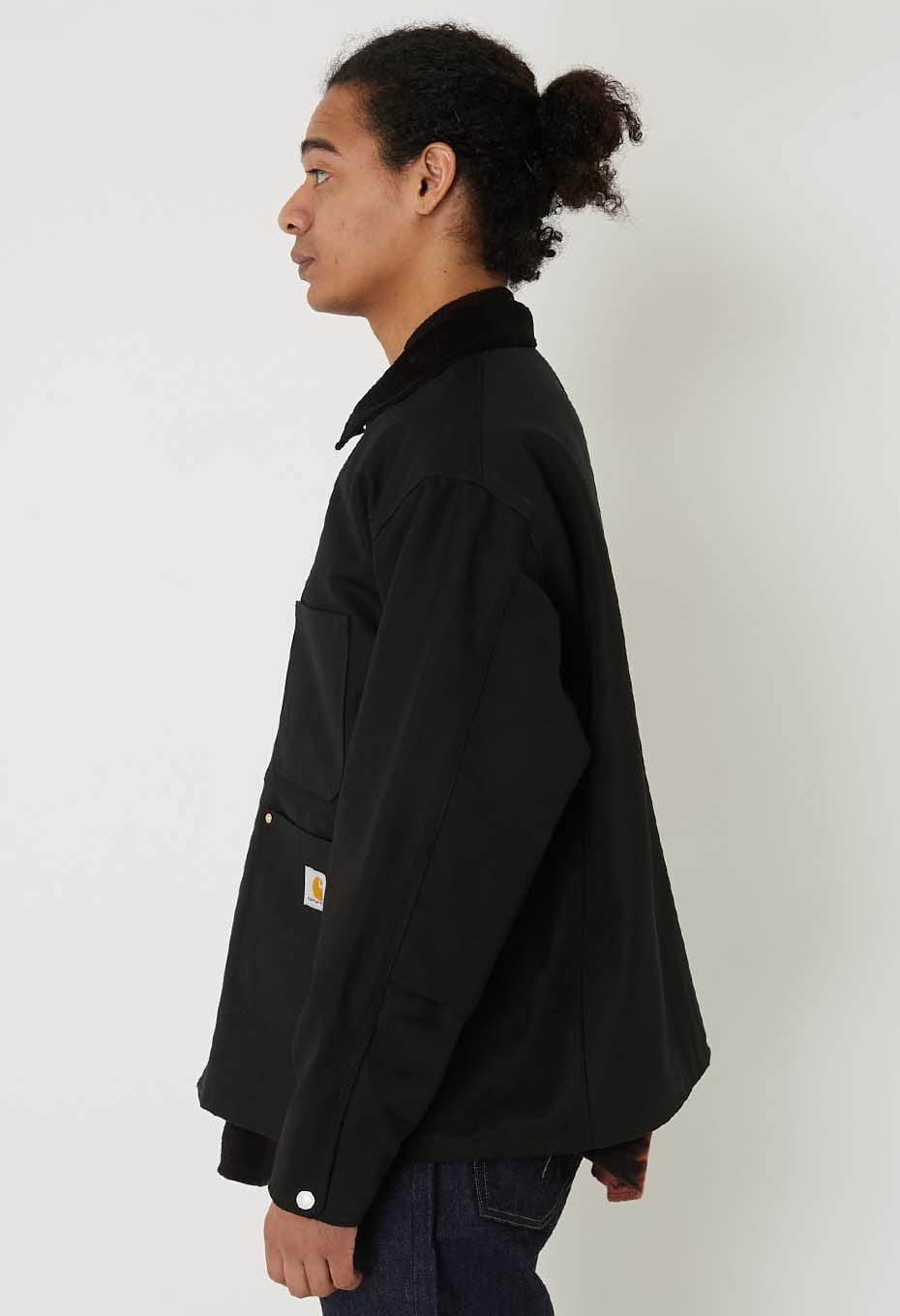 本来のカバーオールのスタイルを再解釈し、リメイクならではの切り返しやポケットデザインを施しています。ショート丈でありながら、Carharttらしさも残したユニークな一着です。