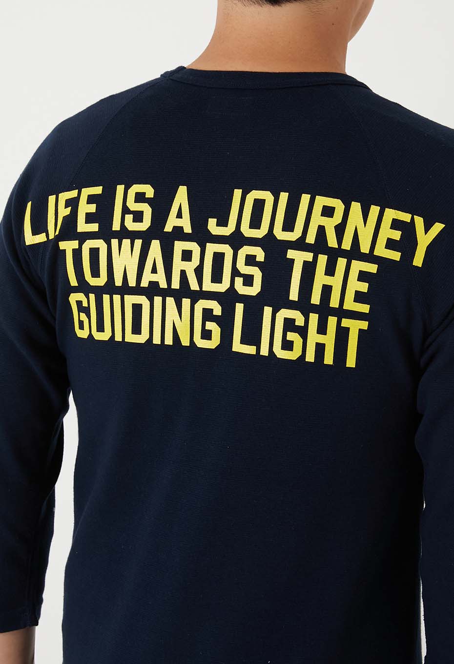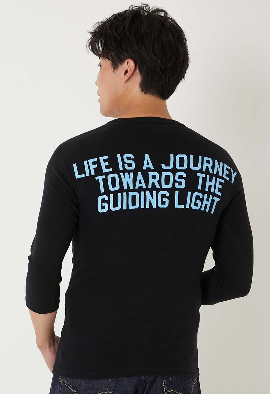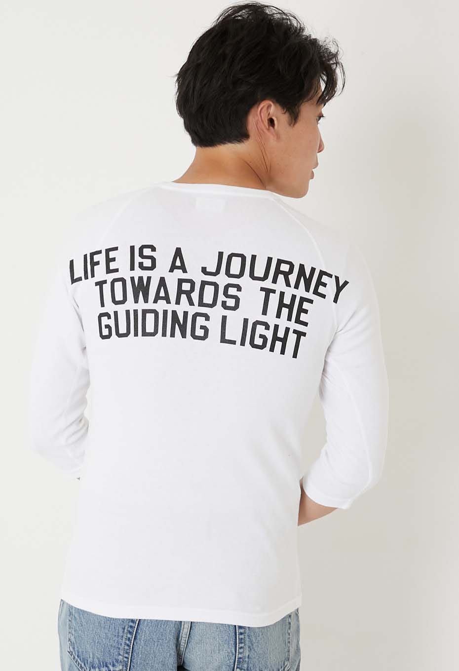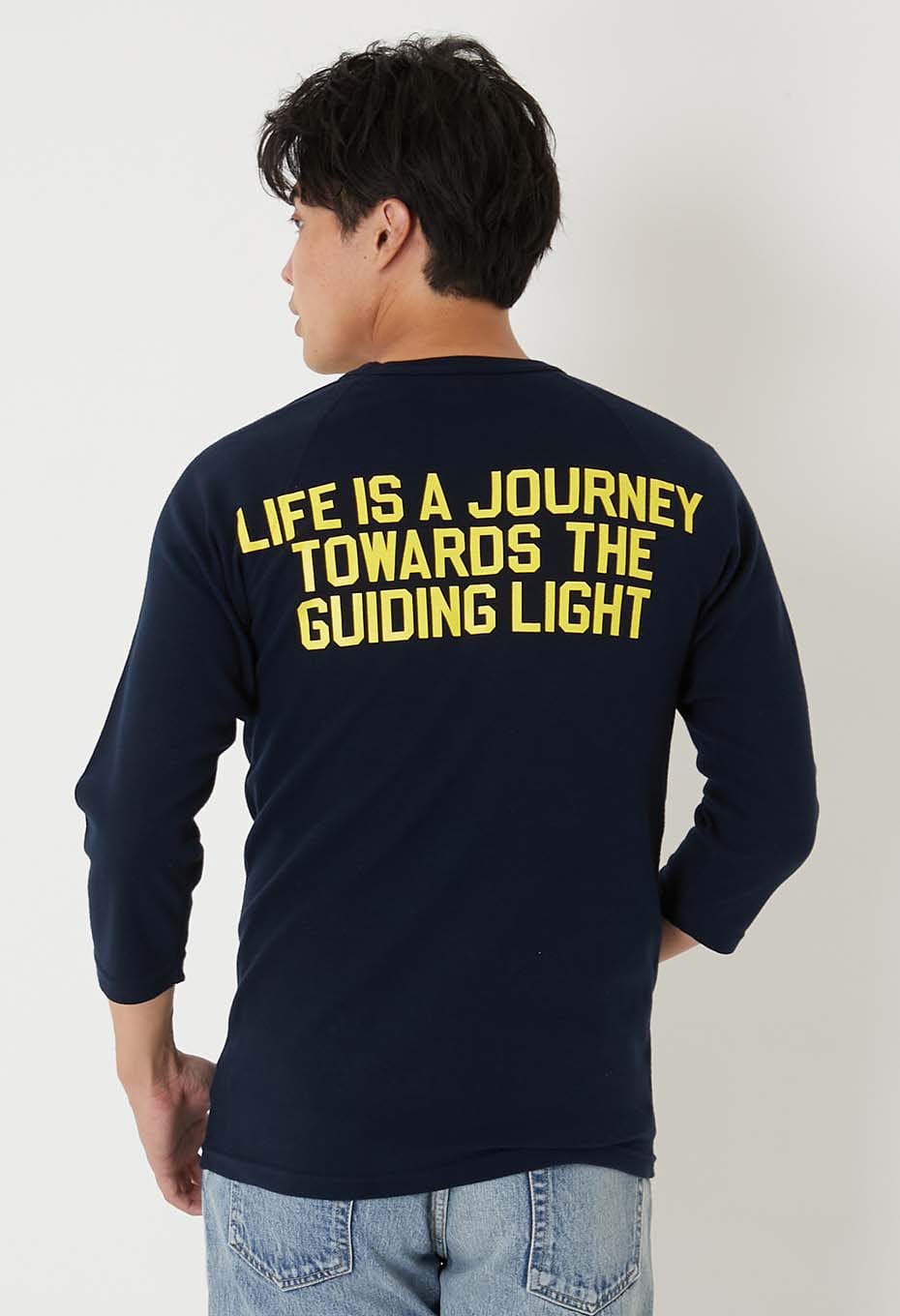 袖丈は1年を通して着こなしやすいハーフスリーブです。気候の安定しない季節の端境期はもちろん、1年中レイヤードもしやすく使い勝手の良いアイテムです。プリントはしっかりと力強いアメリカンラバープリントです。洗い込むほどに馴染み、味わいが増していきます。