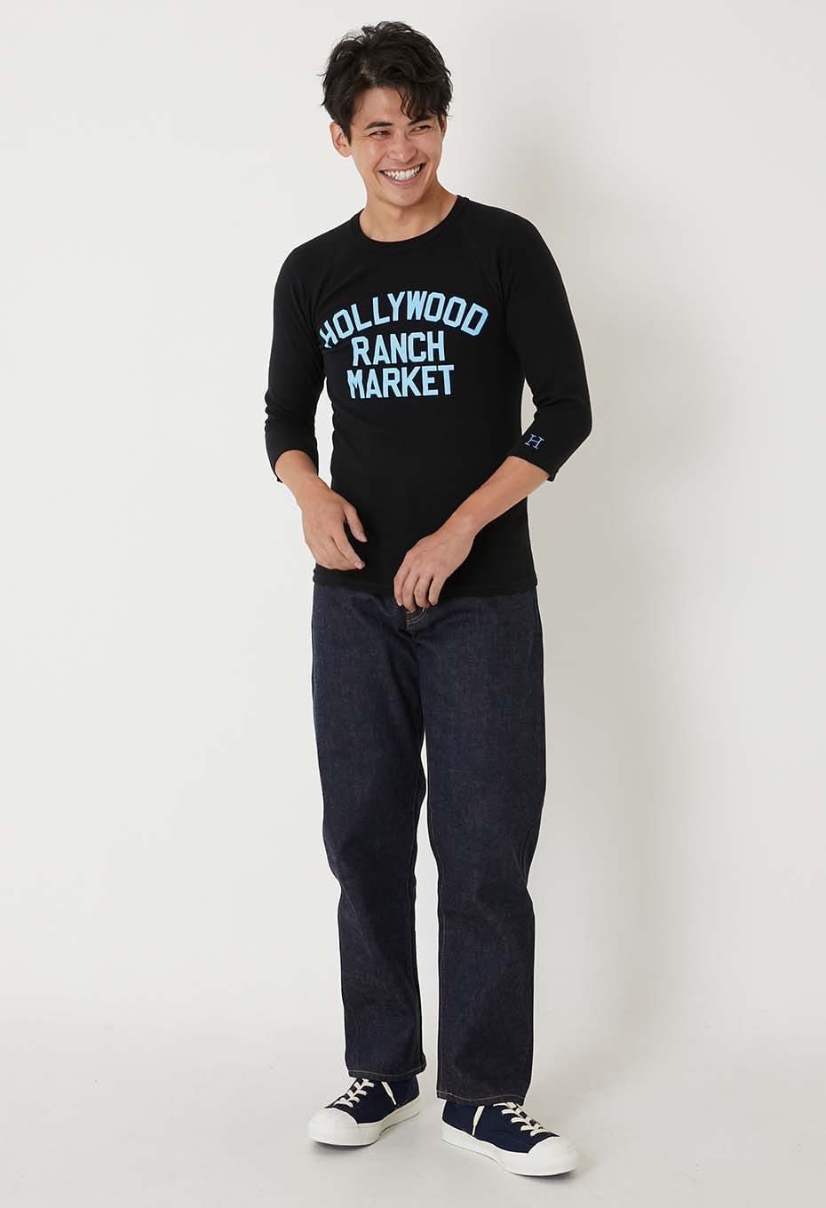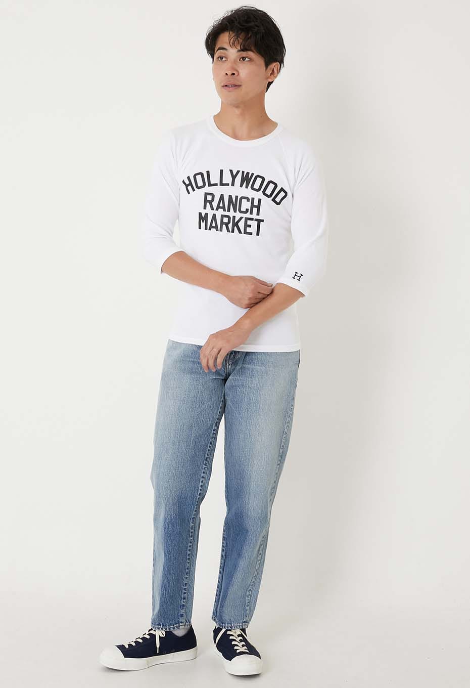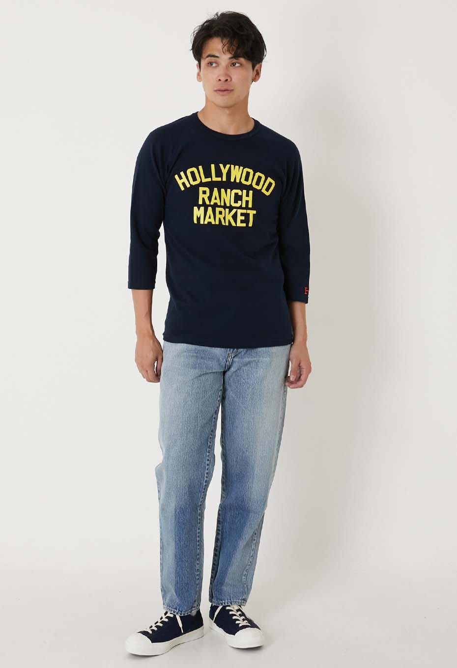 1995年の発売以来、長らくご好評いただいていてる聖林公司のロングセラーアイテム「ストレッチフライス」に、HOLLYWOOD RANCH MARKETのアイコニックなデザインをプリントしたTシャツです。