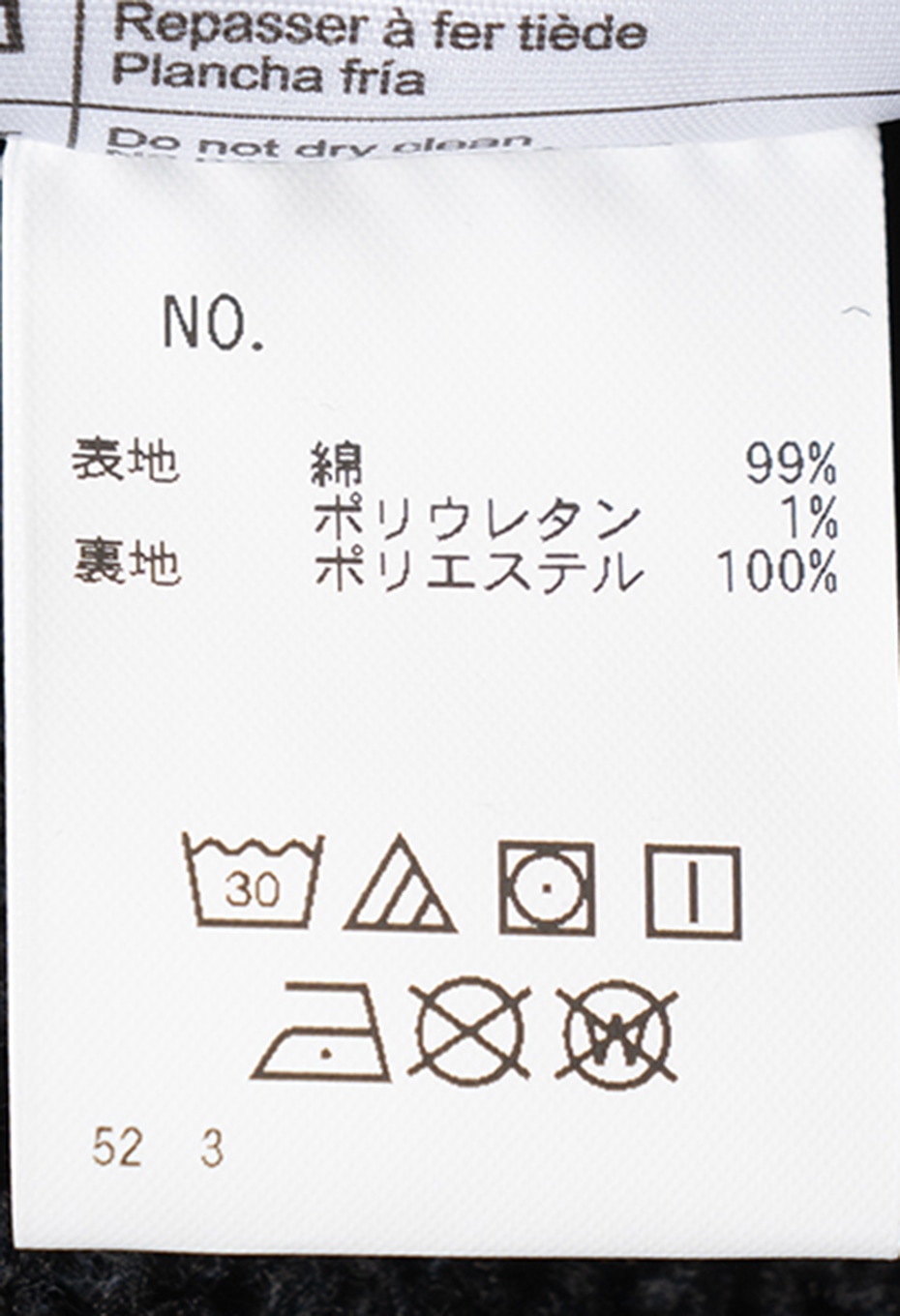 表地:綿99% ポリウレタン1%