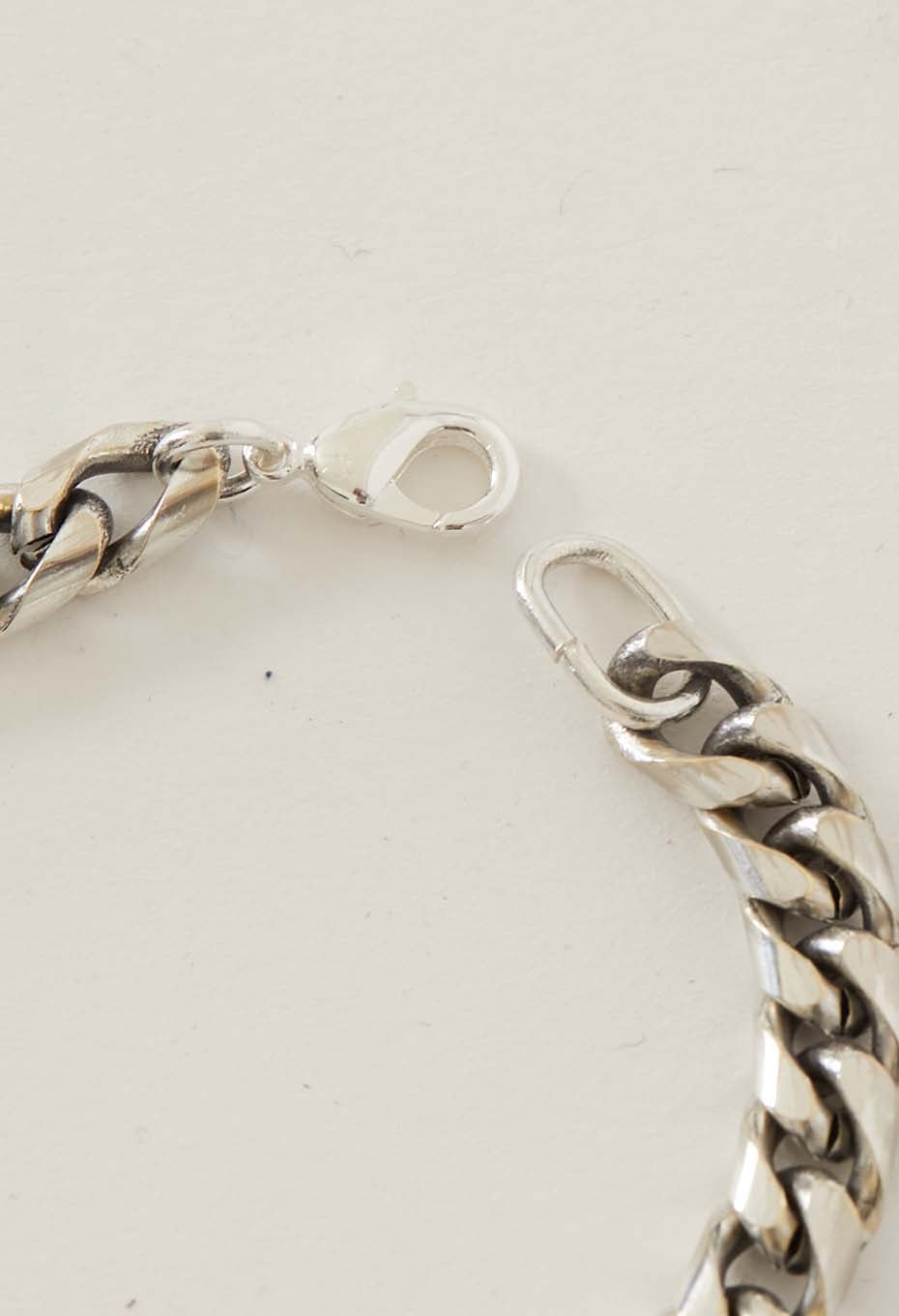 真鍮にシルバーメッキを施し、使用を重ねていくとメッキがはがれていきますが、その経年変化も楽しめるブレスレットです。