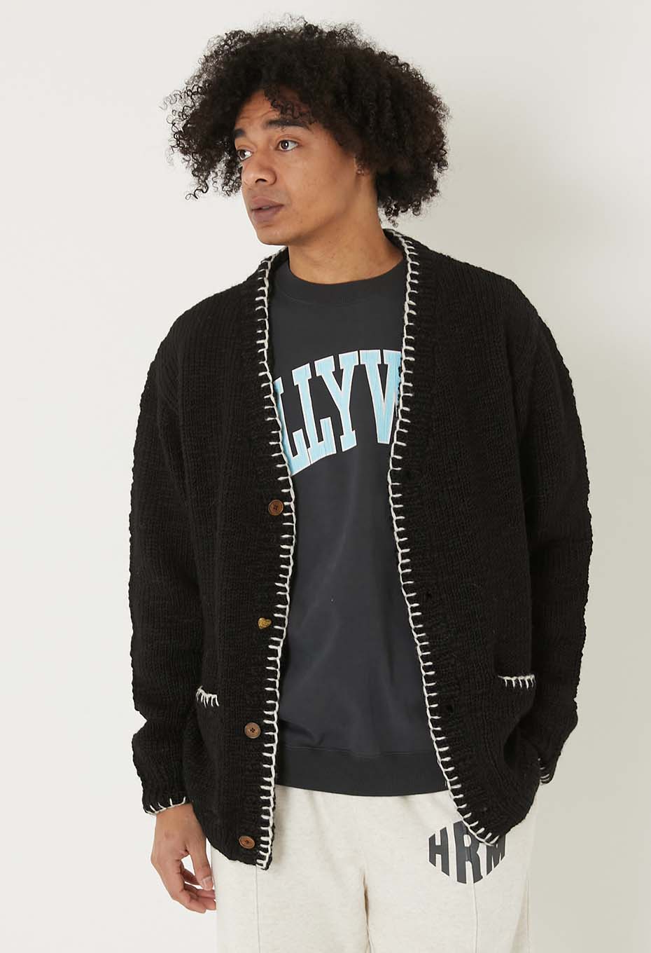 スラブヤーン ハンドステッチカーディガン